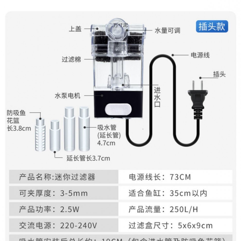 미니 수조 필터 3-in-1 USB 필터 벽걸이 형 폭포 산소화 소형 워터 펌프 수조 청소