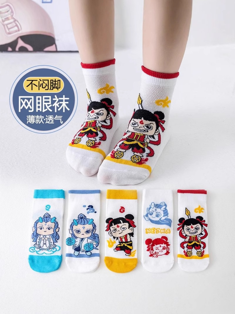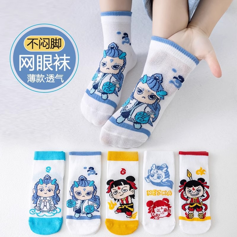 Net red Nezha 만화 여름 메쉬 양말 얇은 국가 조수 양말을 가진 남성과 여성을위한 튜브에 새로운 어린이 양말스토어 가기