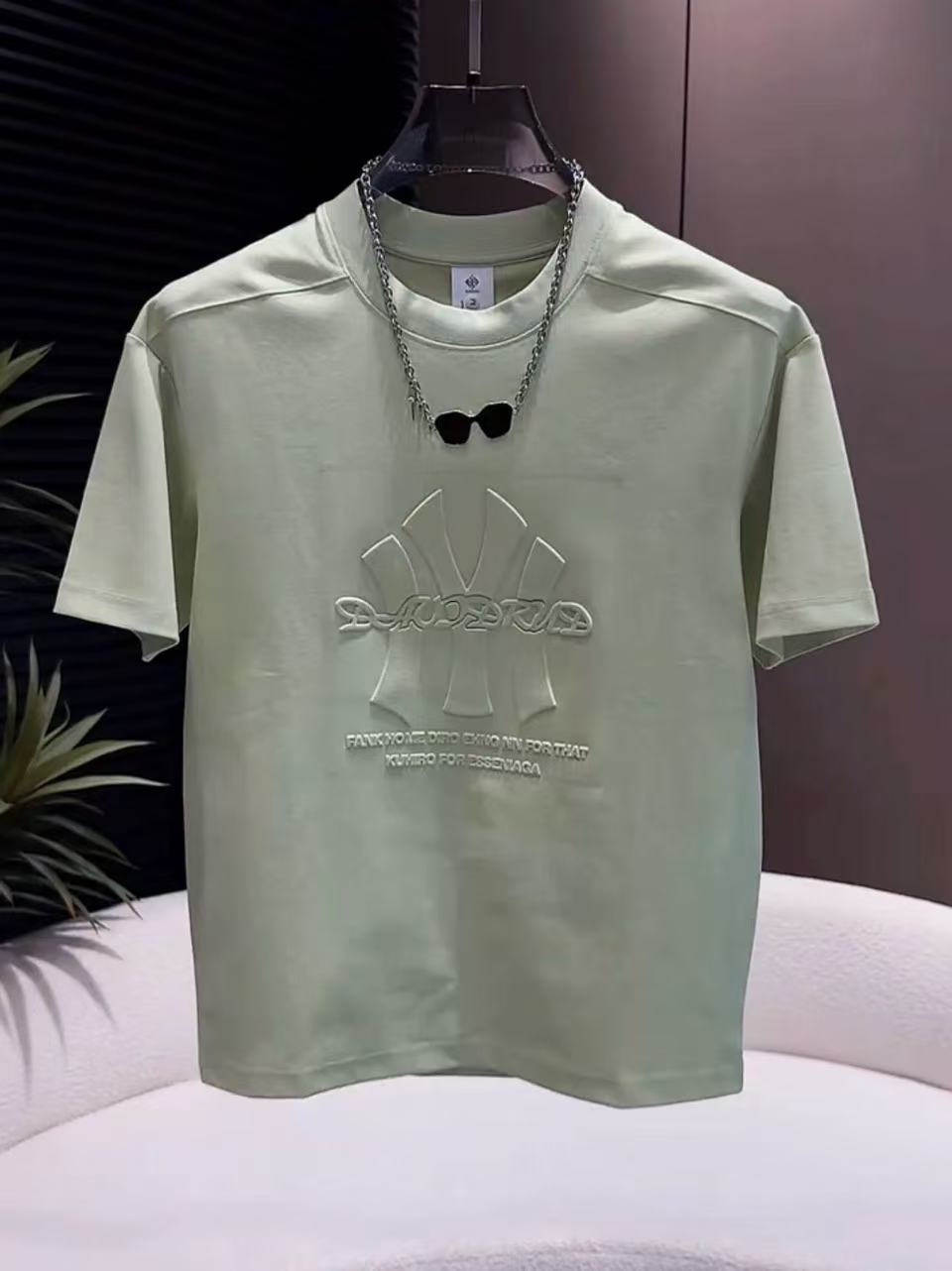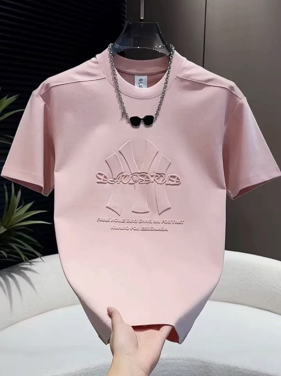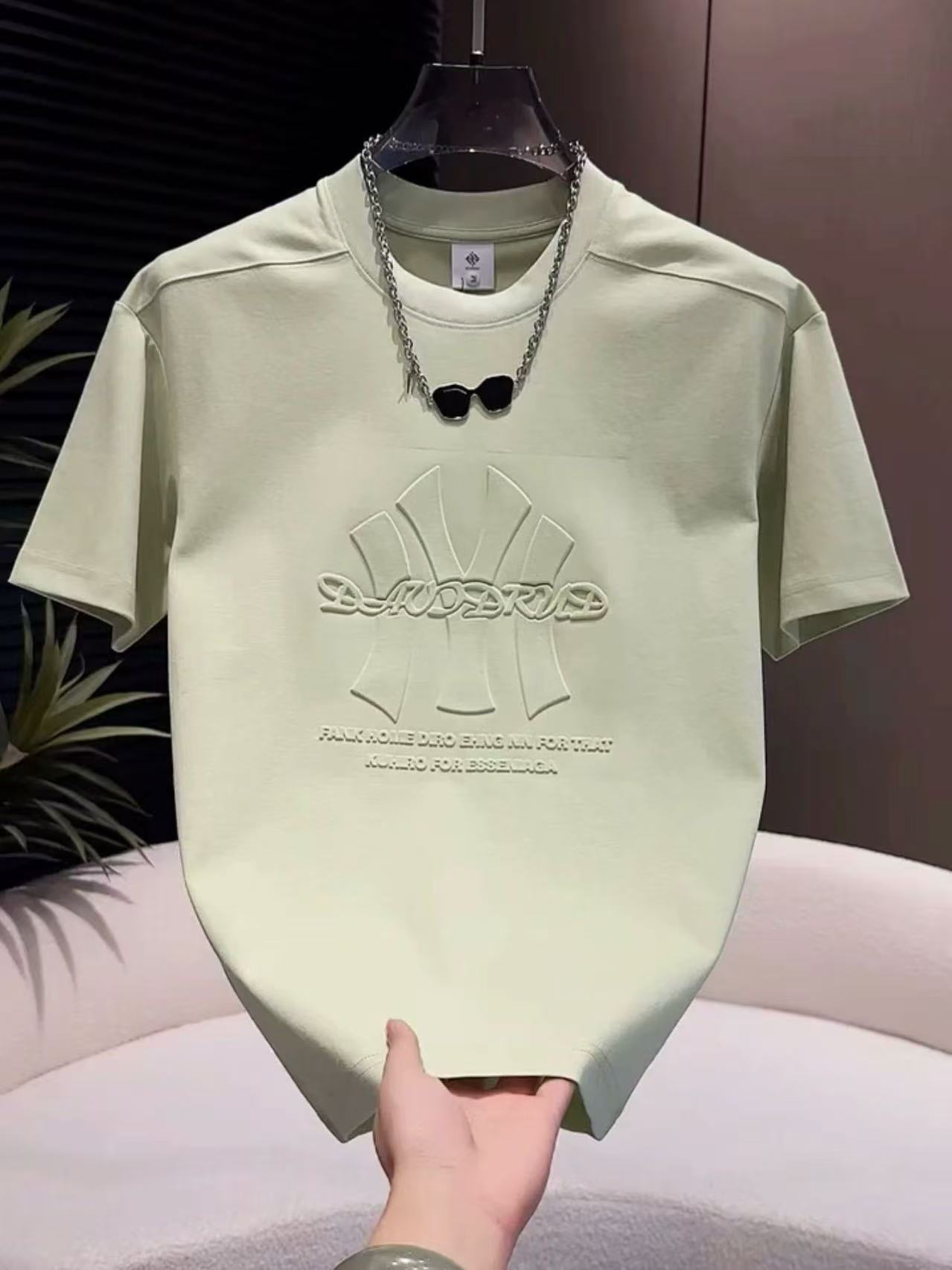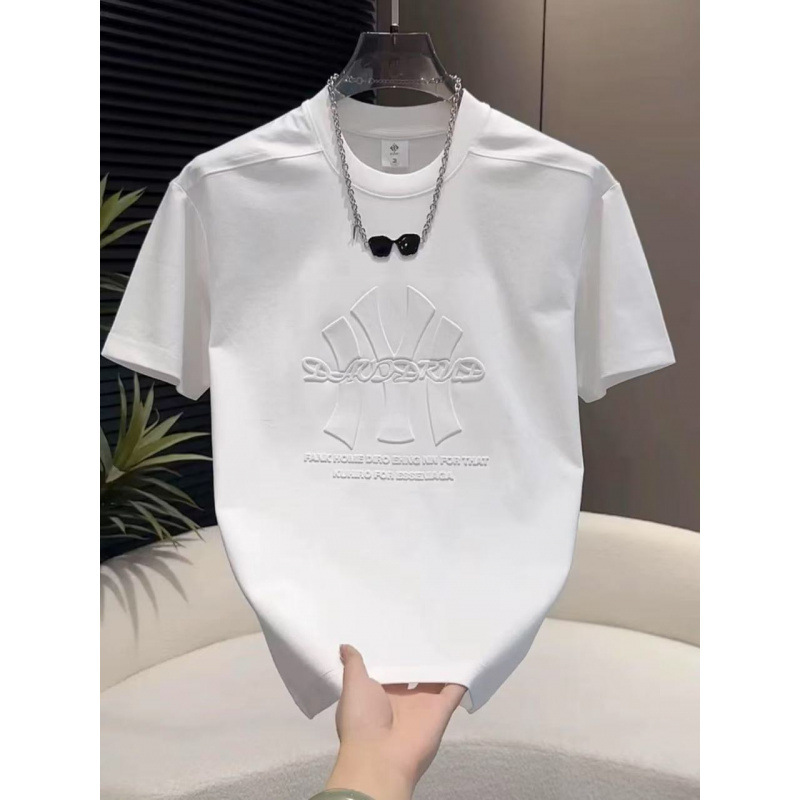 2025 패션 남성 라이트 럭셔리 트렌디 개성 스틸 스탬프 라운드 넥 반팔 레터 엠보싱 하이 엔드 티셔츠 반팔 셔츠