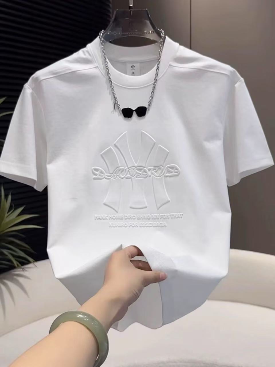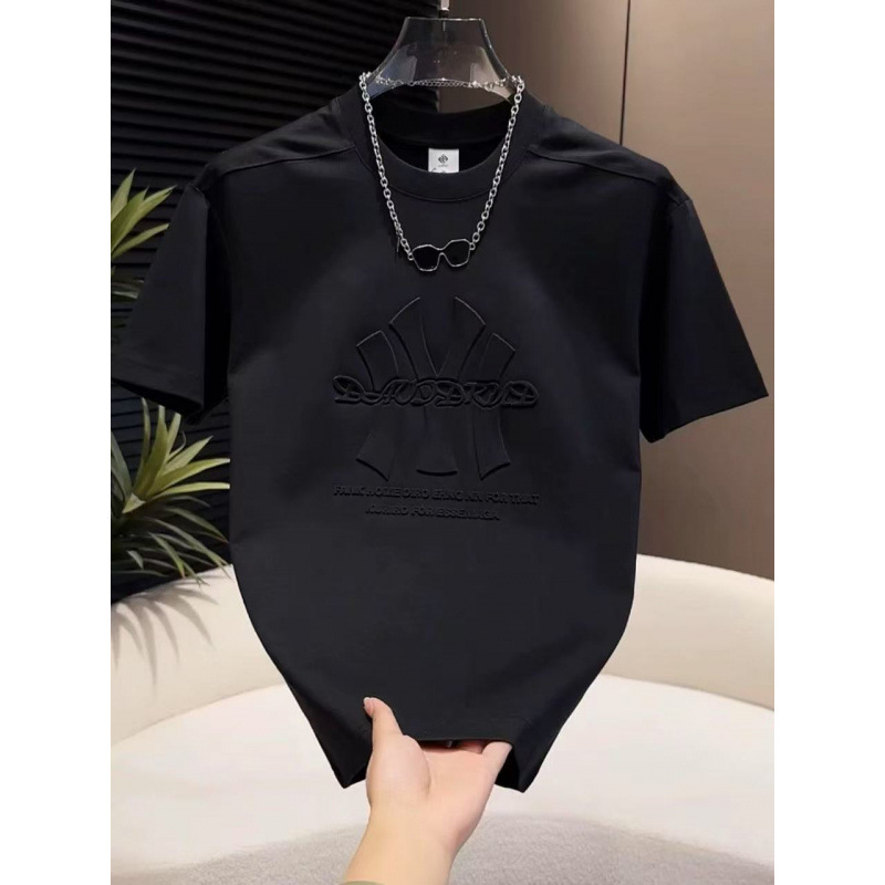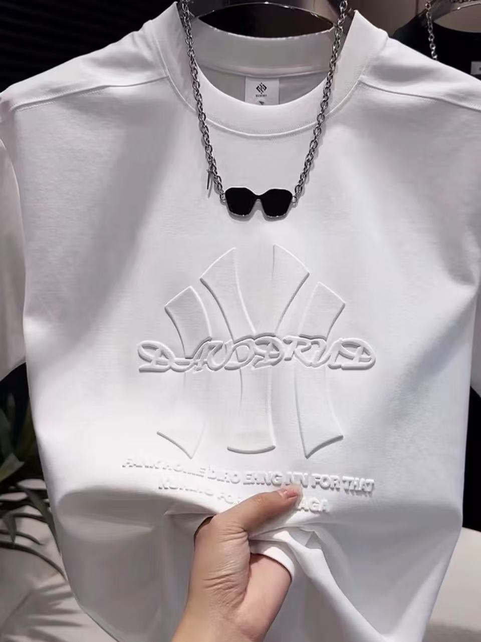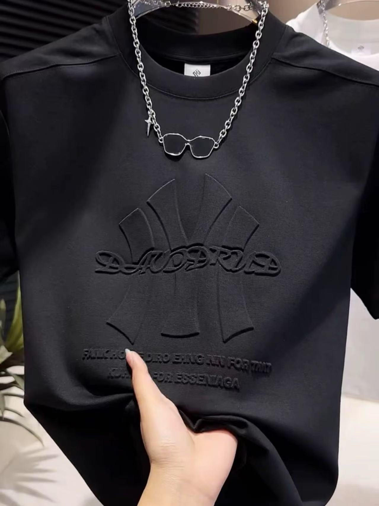 2025 패션 남성 라이트 럭셔리 트렌디 개성 스틸 스탬프 라운드 넥 반팔 레터 엠보싱 하이 엔드 티셔츠 반팔 셔츠스토어 가기