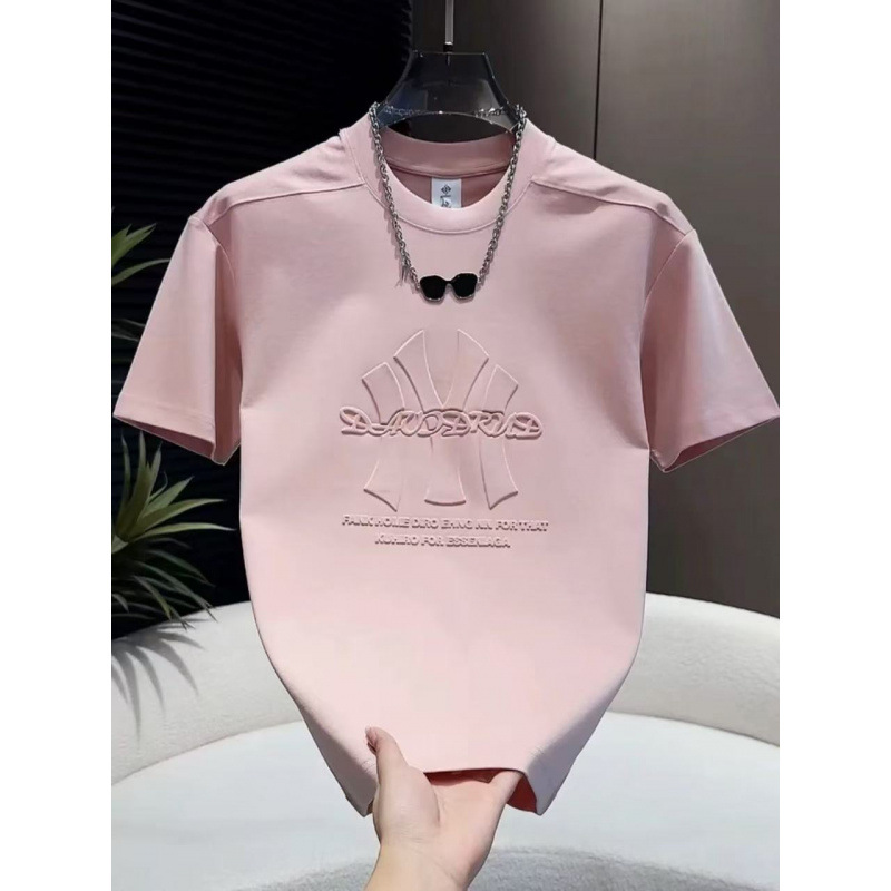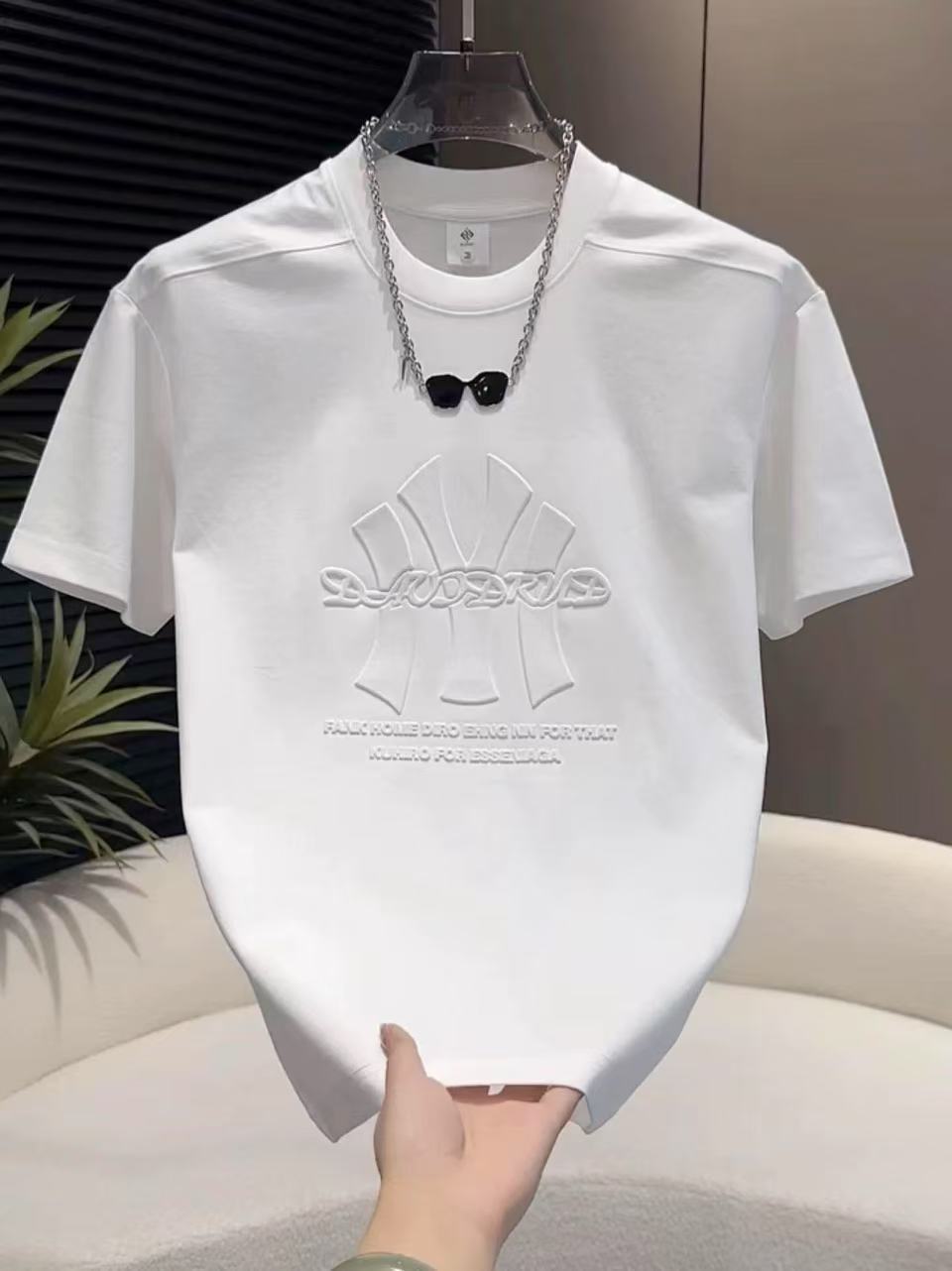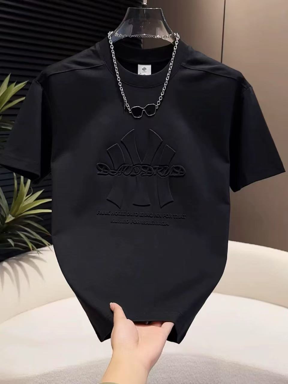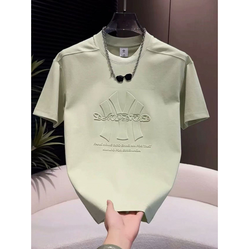 2025 패션 남성 라이트 럭셔리 트렌디 개성 스틸 스탬프 라운드 넥 반팔 레터 엠보싱 하이 엔드 티셔츠 반팔 셔츠스토어 가기