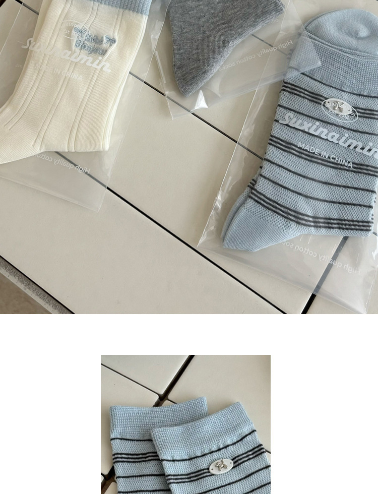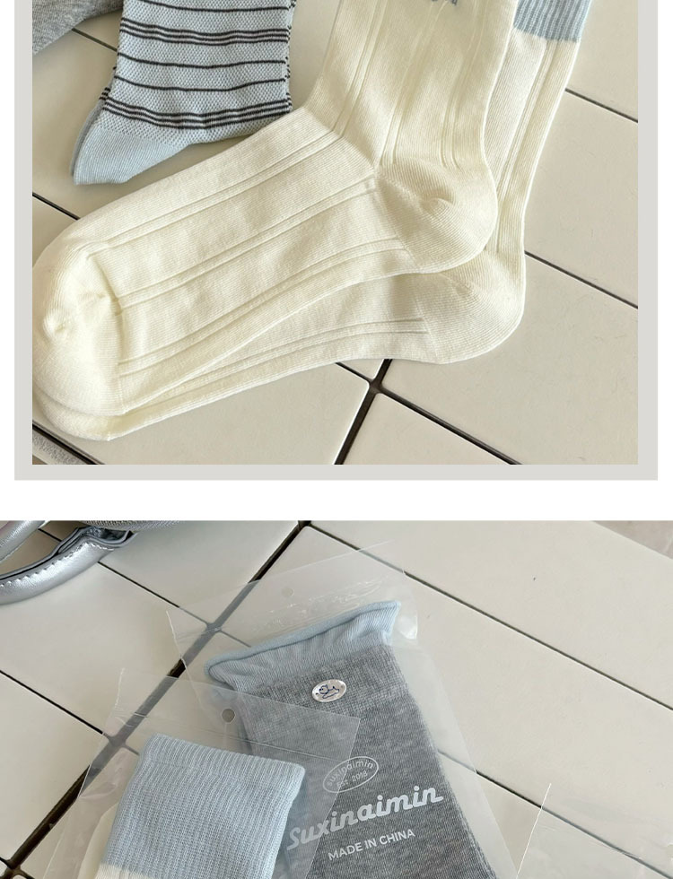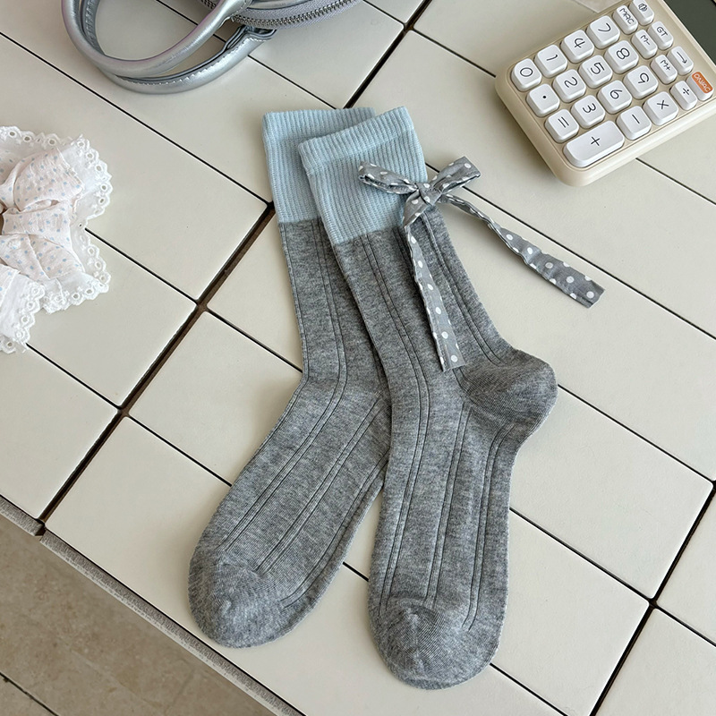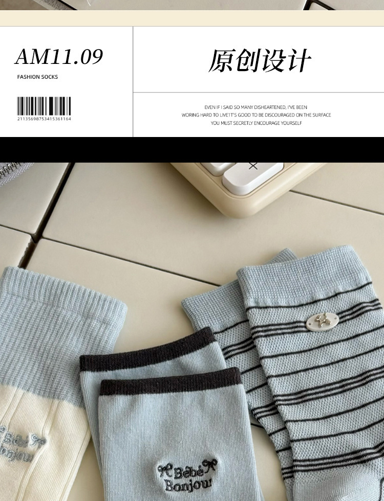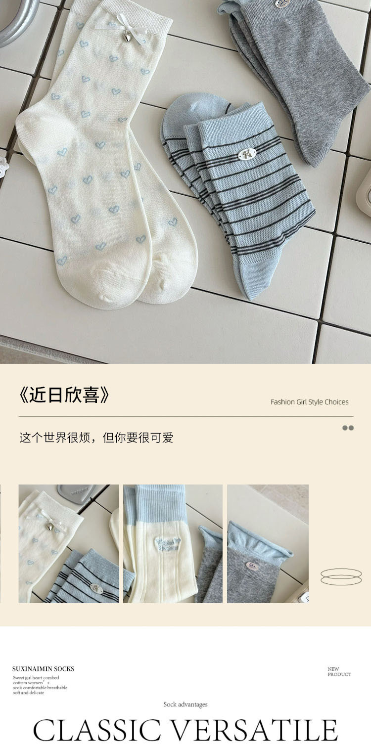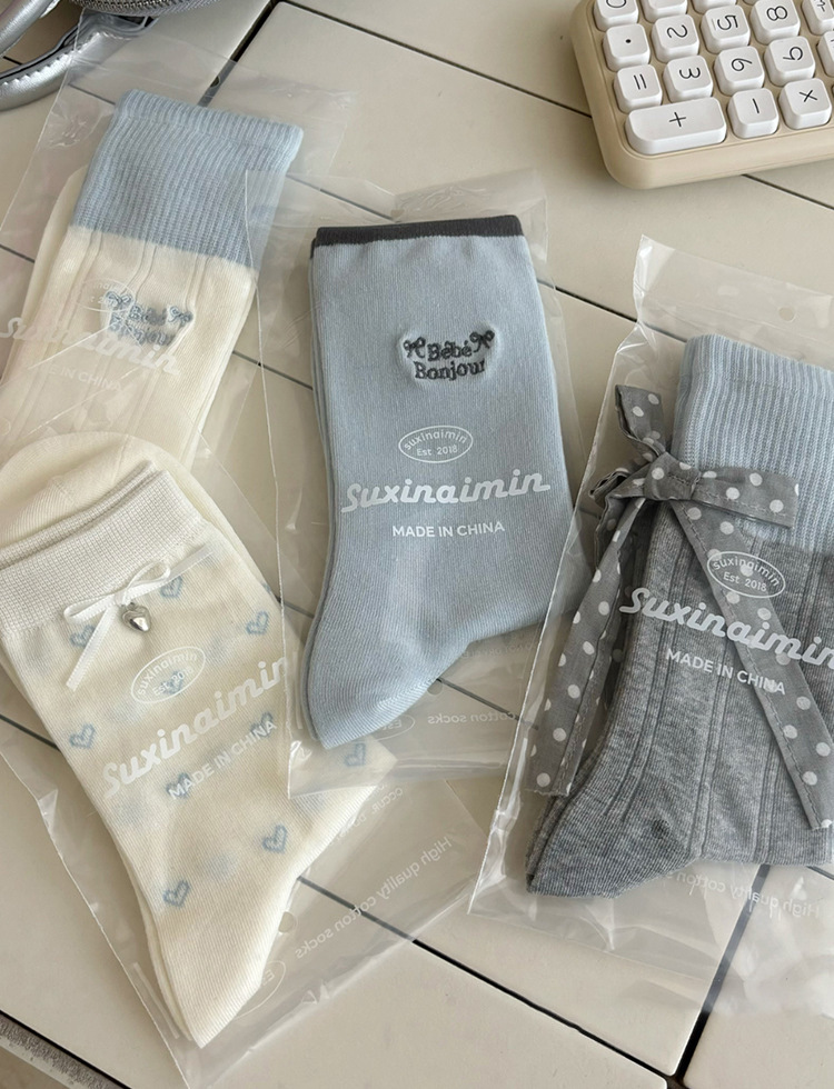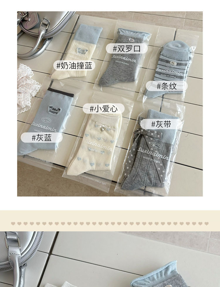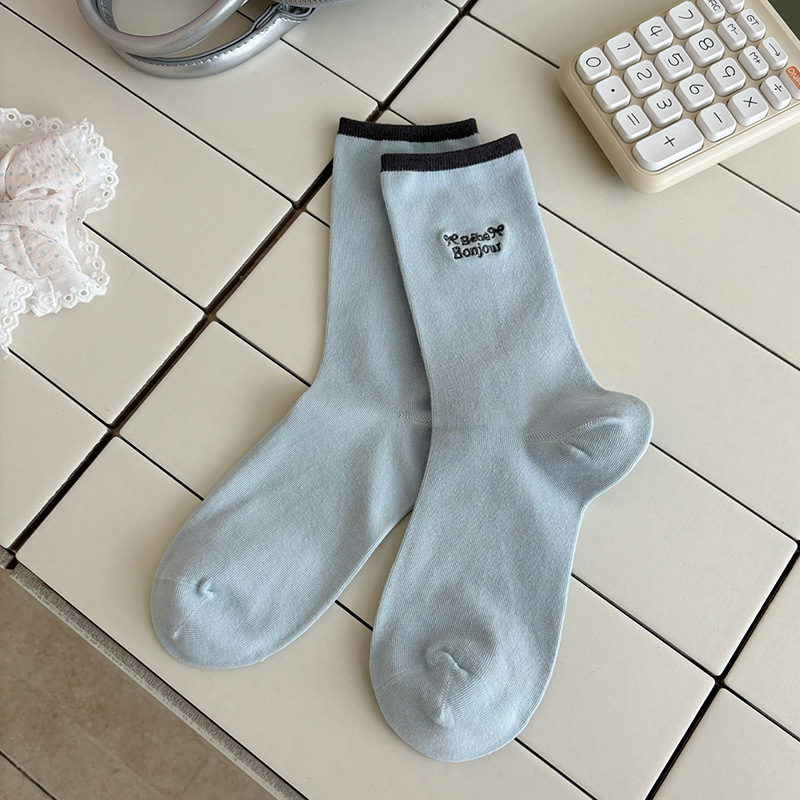 달콤한 콘트라스트 크림 블루 ~ 한국 소녀 사랑 자수 편지 더미 양말 강아지 천 라벨 양말 여성의 얇은