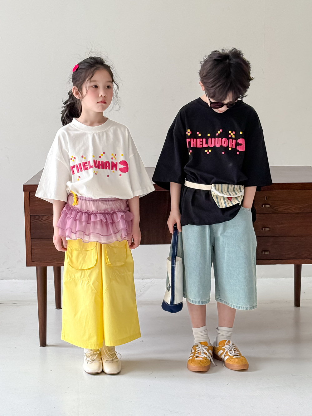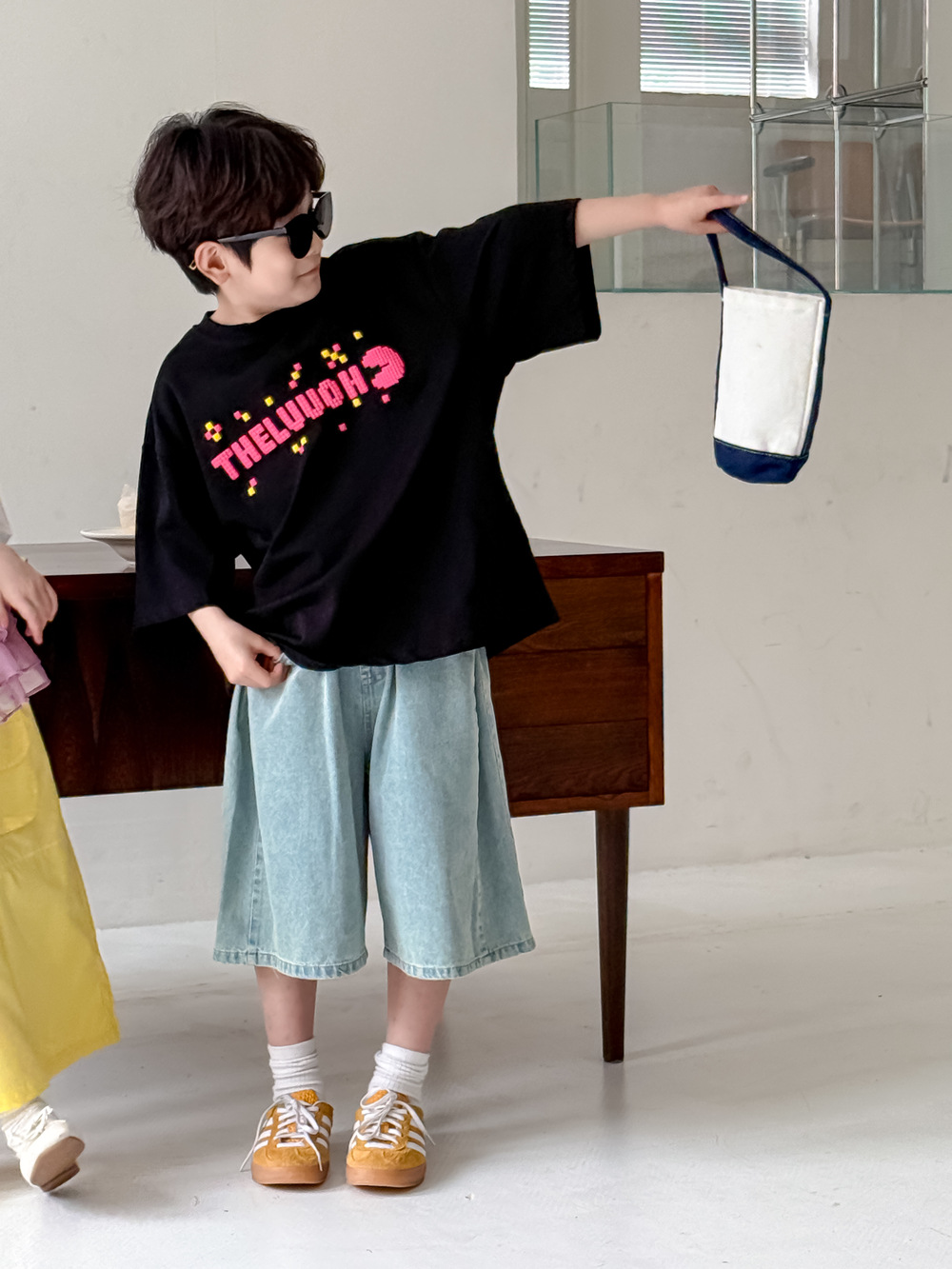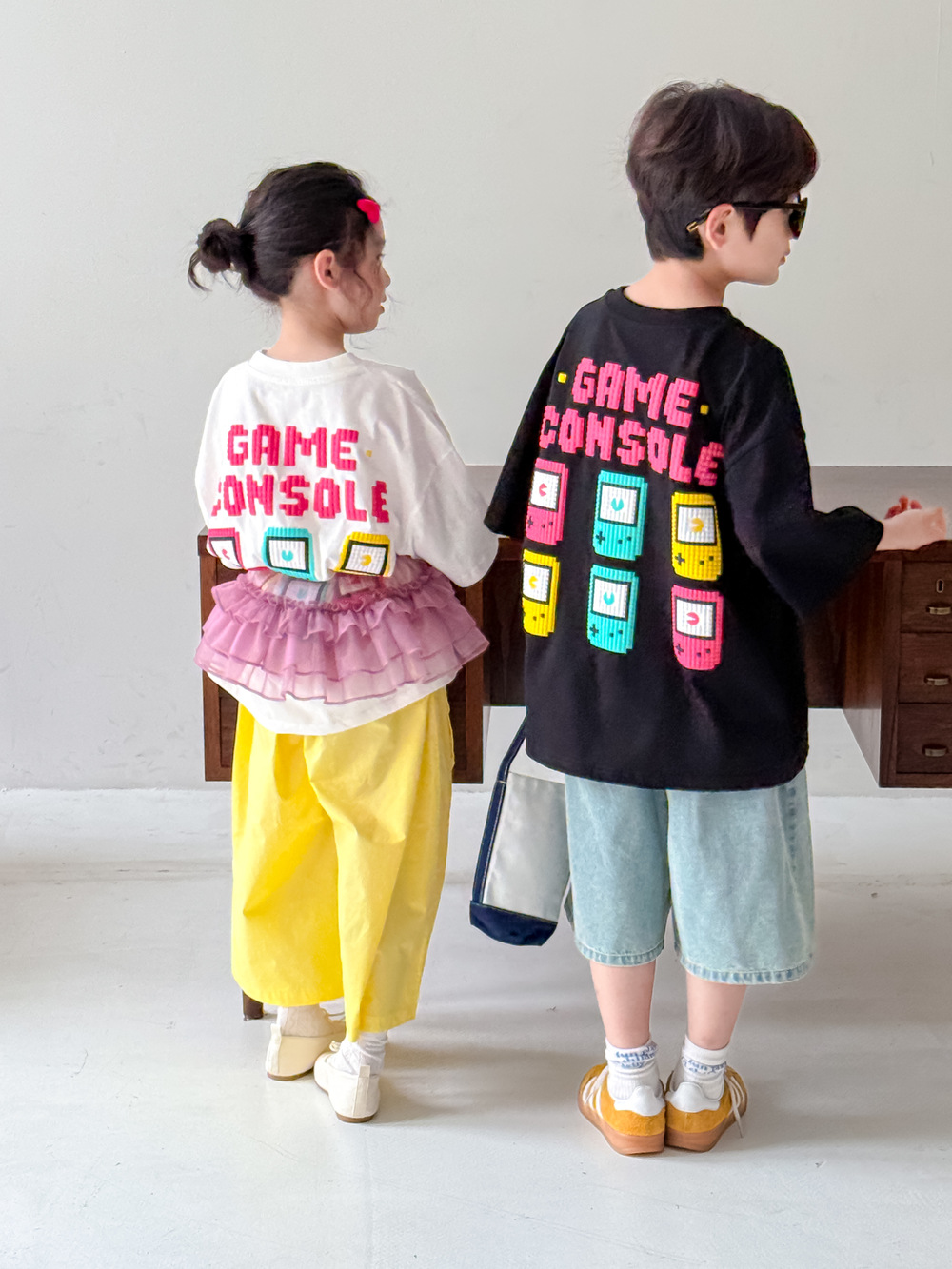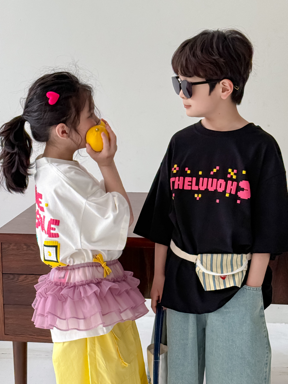 어린이 티셔츠 2025 여름 소년 소녀 한국식 편지 캐주얼 탑 어린이 라운드 넥 올 매치 탑