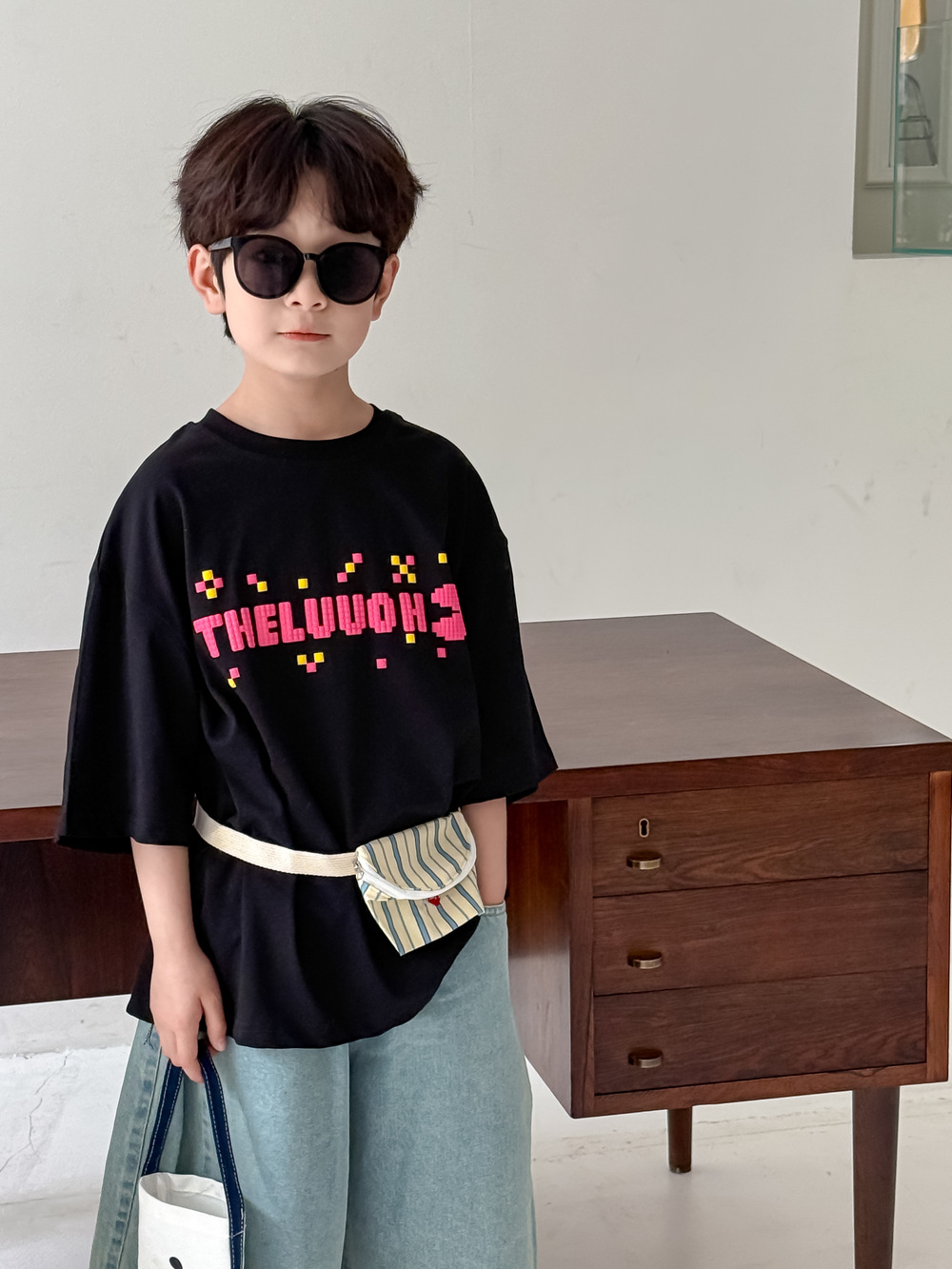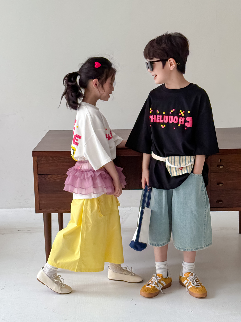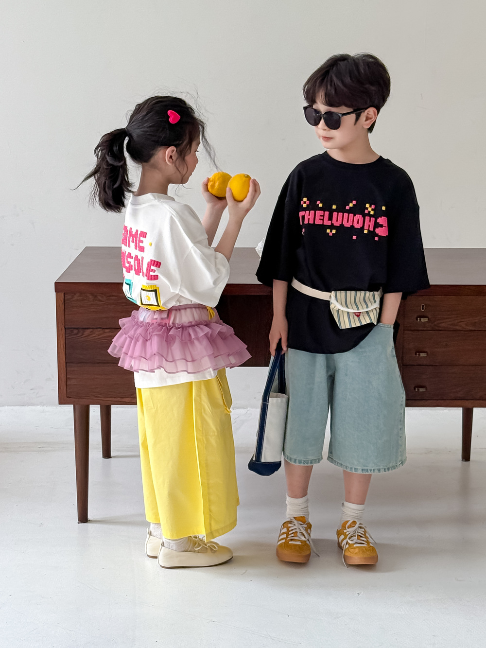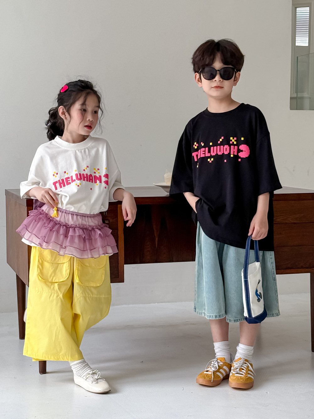 어린이 티셔츠 2025 여름 소년 소녀 한국식 편지 캐주얼 탑 어린이 라운드 넥 올 매치 탑스토어 가기