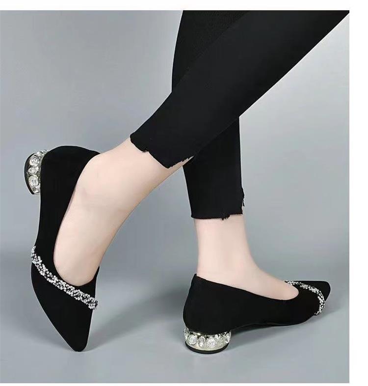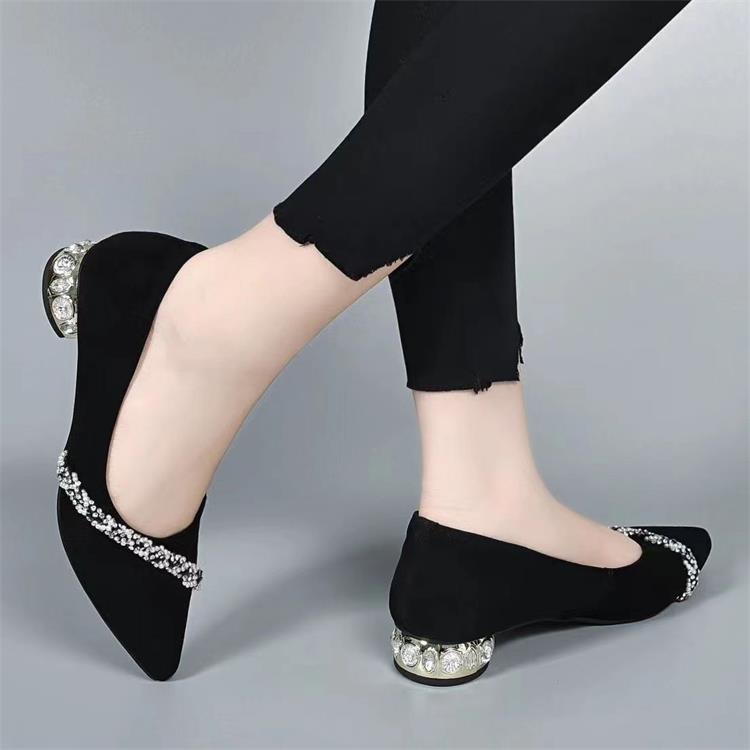 새로운 프로스트 하이힐 작업 신발 라인스톤 우아한 포인팅 여성 신발 여름 두꺼운 힐 유행 얕은 입 싱글 신발 올매치스토어 가기