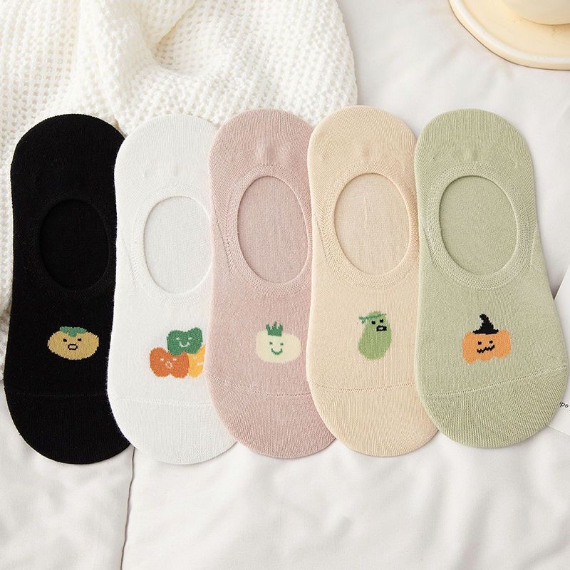 • 흰색 만화 얼음 실크 보이지 않는 양말