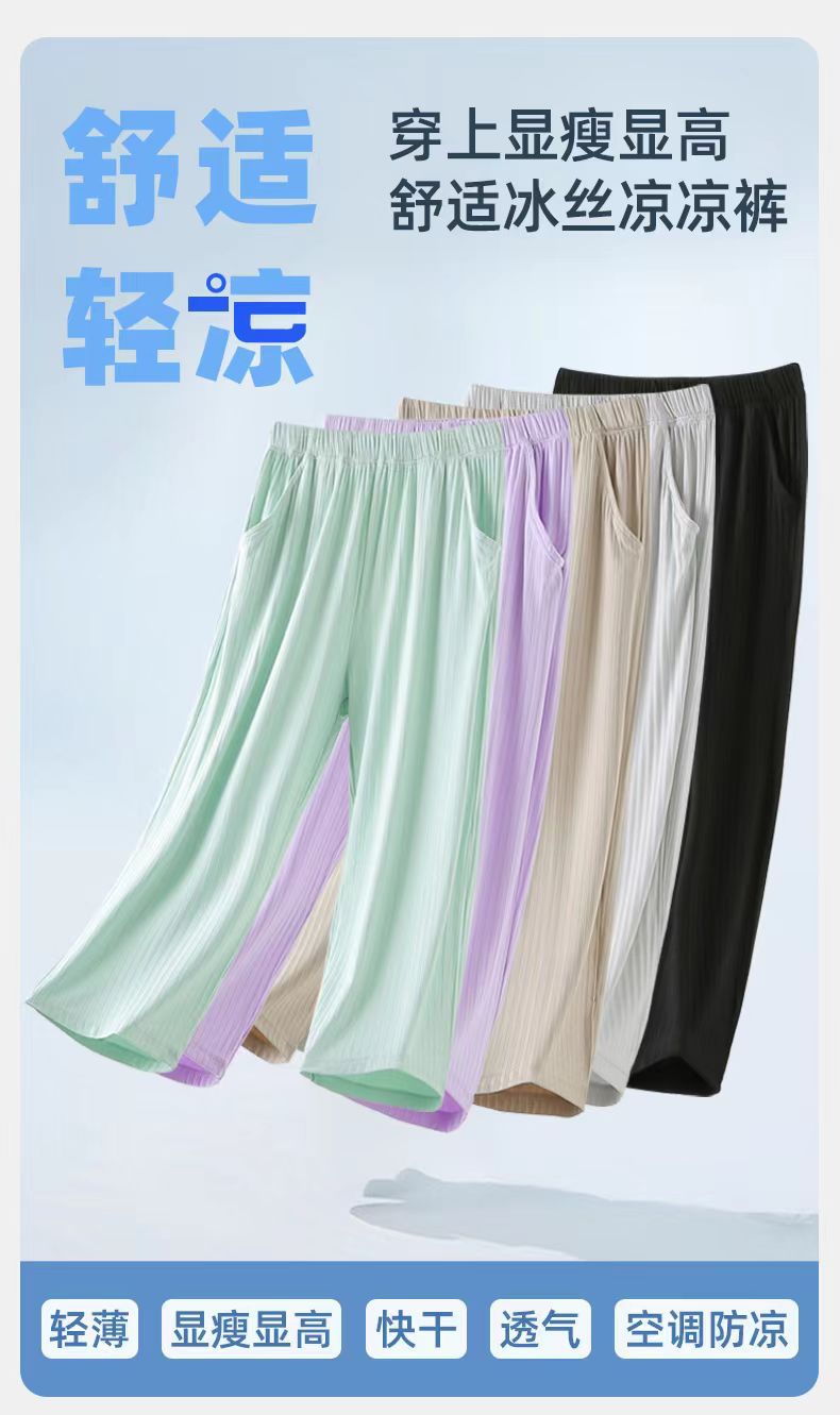 여름 소녀 스트레이트 와이드 레그 바지 어린이 바지 아이스 실크 2025 새로운 안티 모기 바지 여성의 여름 바지스토어 가기