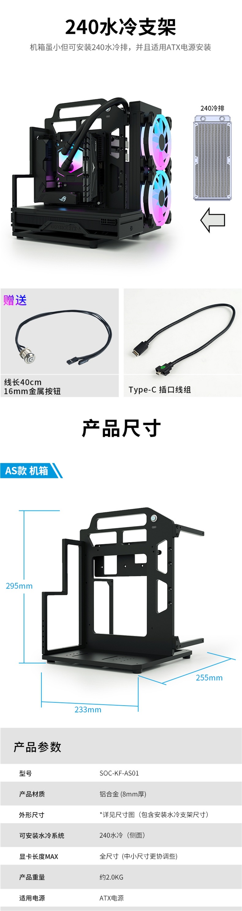 빠른 설정 AS ITX 마더보드 간단한 알루미늄 합금 랙 휴대용 지원 수냉식 설치 개방형 섀시스토어 가기