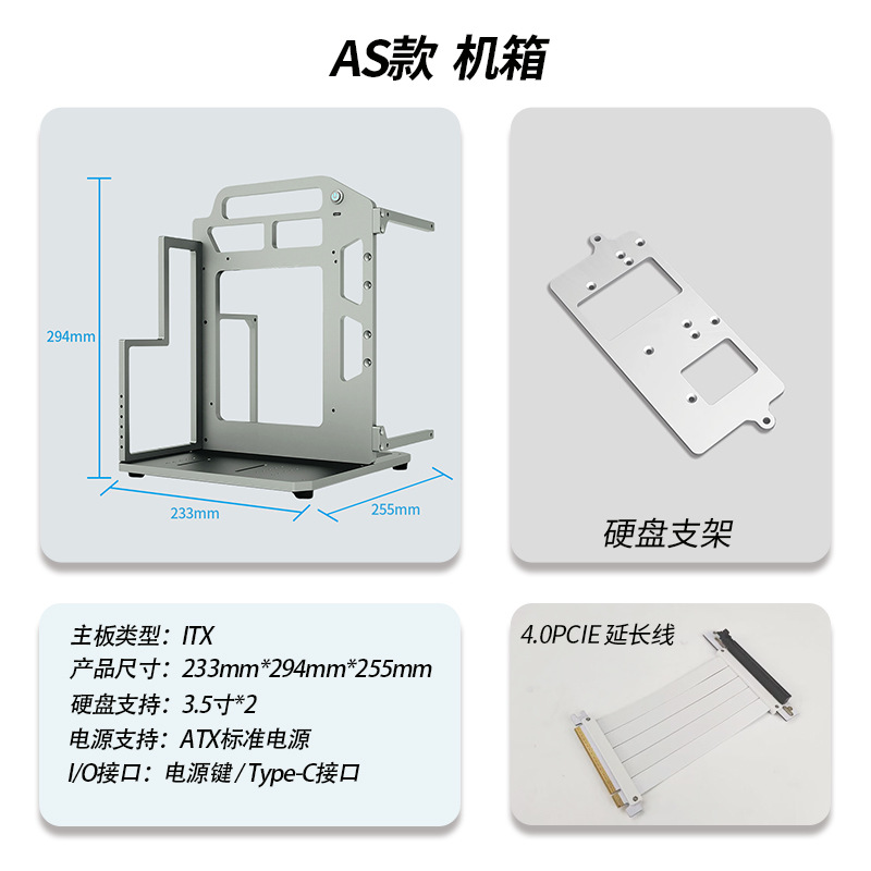 • 실버 섀시 + 브래킷 + 4.0 그래픽 카드 연장 케이블(사전 판매)
