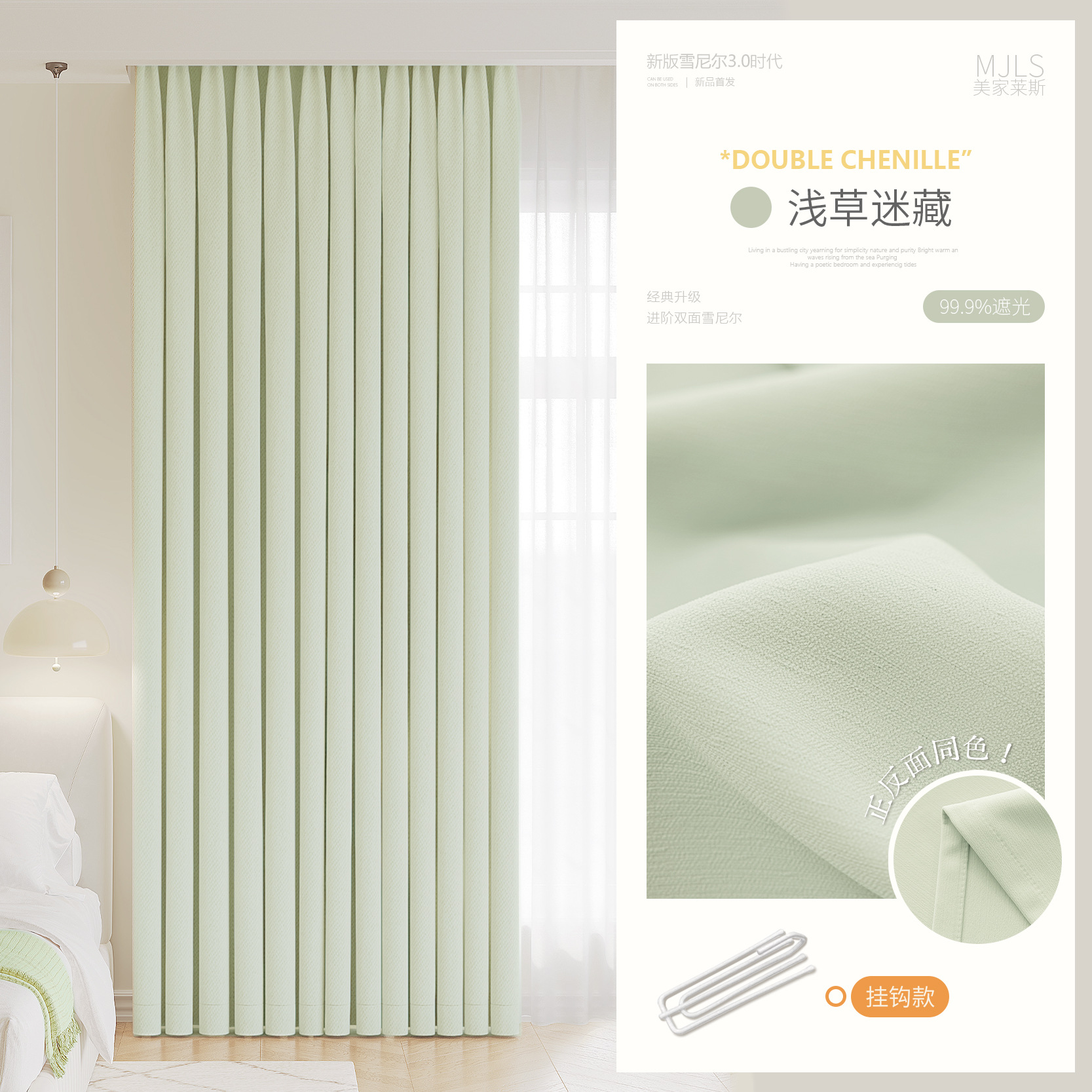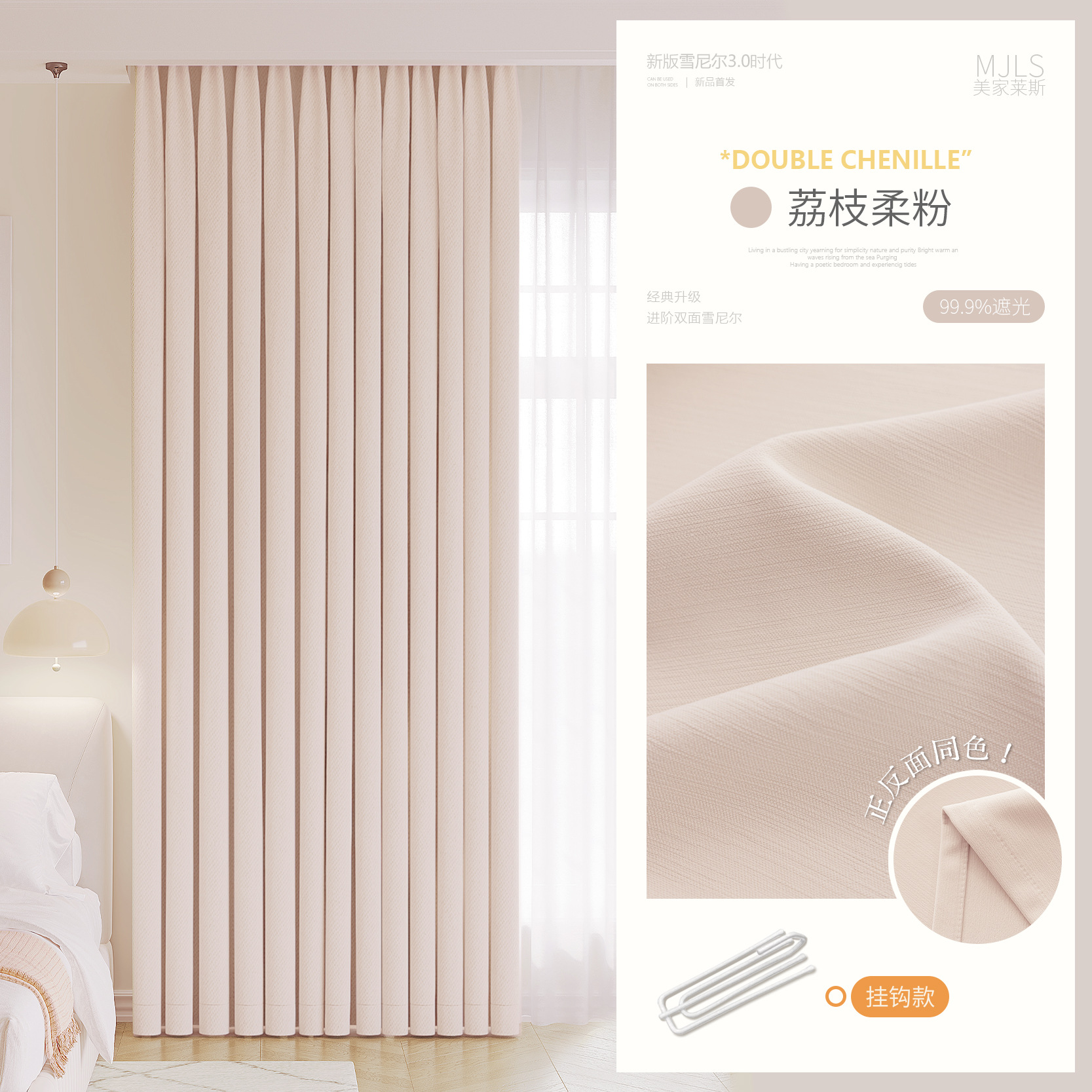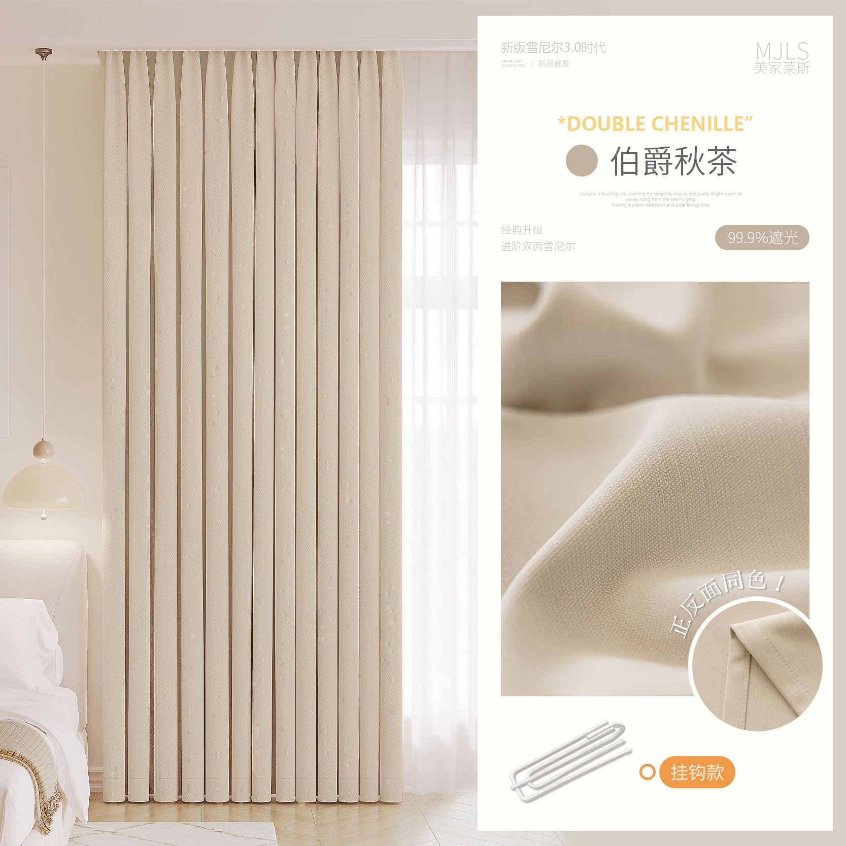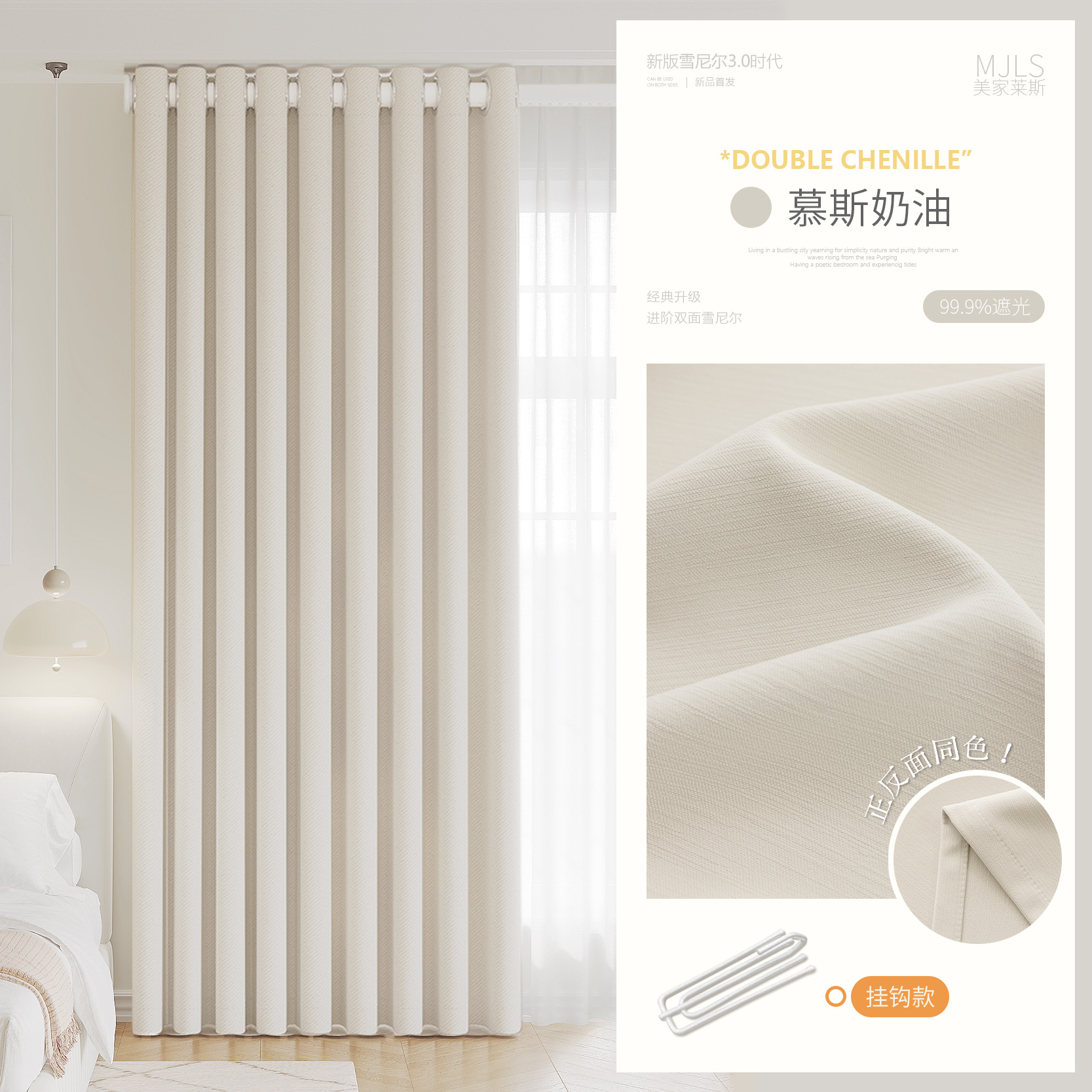 양면 셔닐 같은 색상의 완전 암막 커튼 프렌치 라이트 럭셔리 크림 스타일 거실 침실 커튼 완제품 맞춤 제작스토어 가기