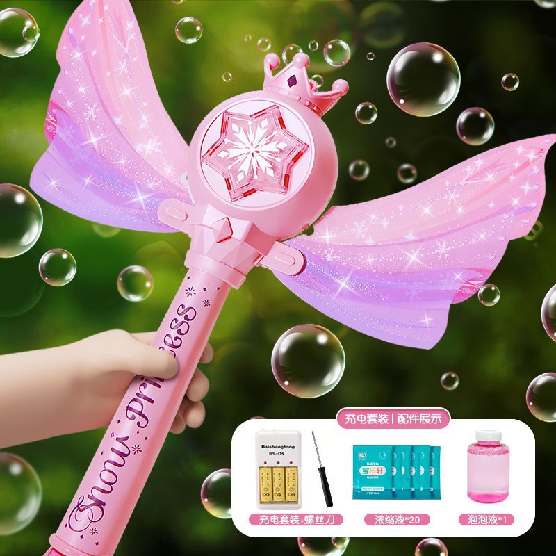 2025 새로운 공주 매직 완드 버블 머신 어린이 핸드 헬드 자동 요정 스틱 버블 스틱 6 일 선물