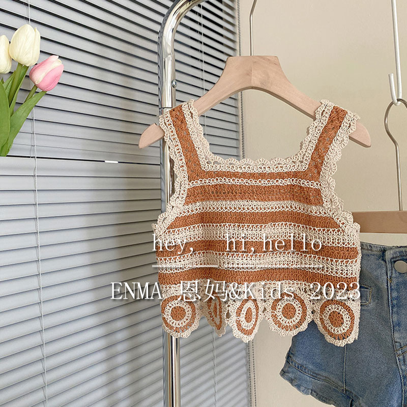 한국 아동복 여아 상의 여름 신작 여아 패션 스트라이프 아동 니트 조끼 트렌드
