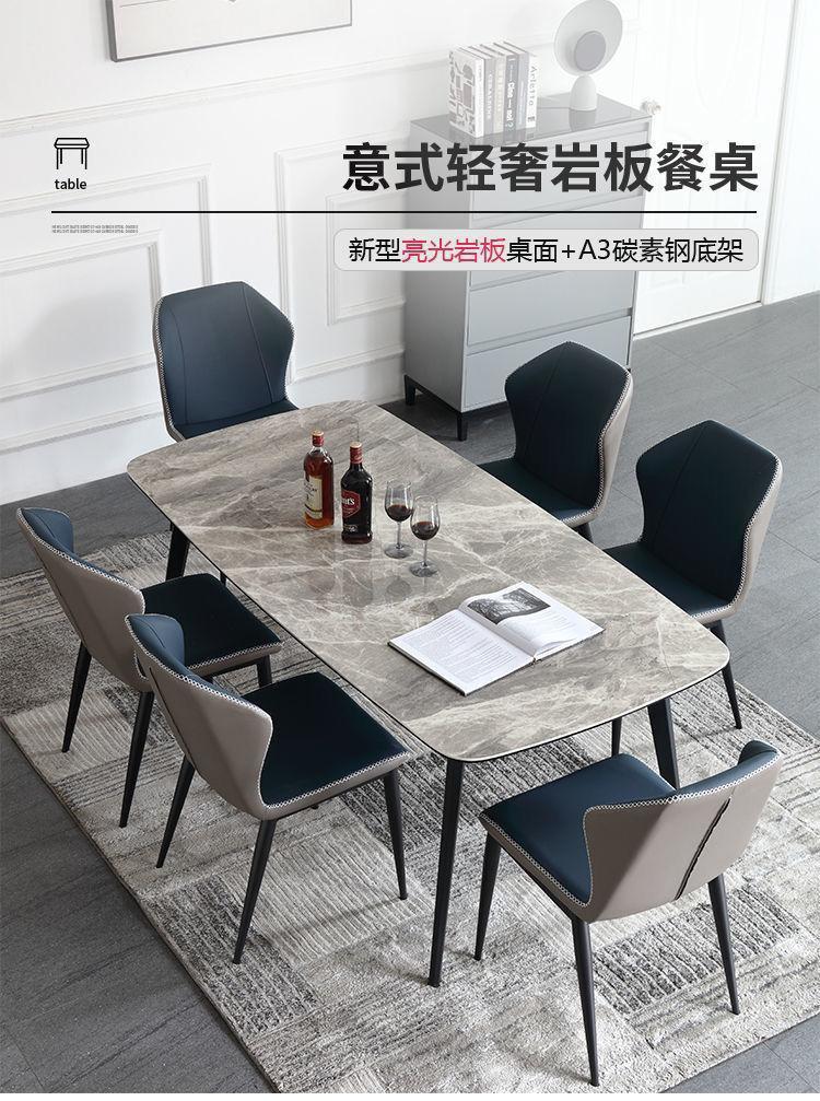 슬레이트 식탁 현대적인 단순하고 가벼운 럭셔리 가정용 작은 식탁 직사각형 광택 매트 식탁 조합