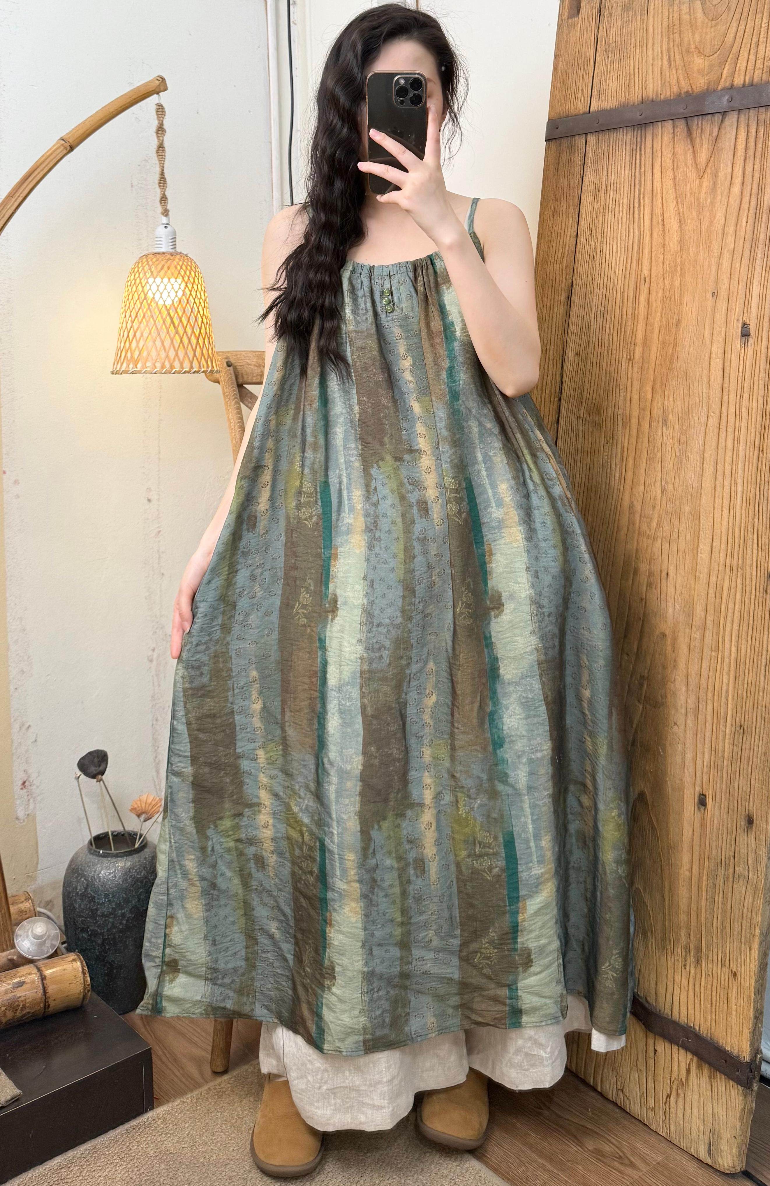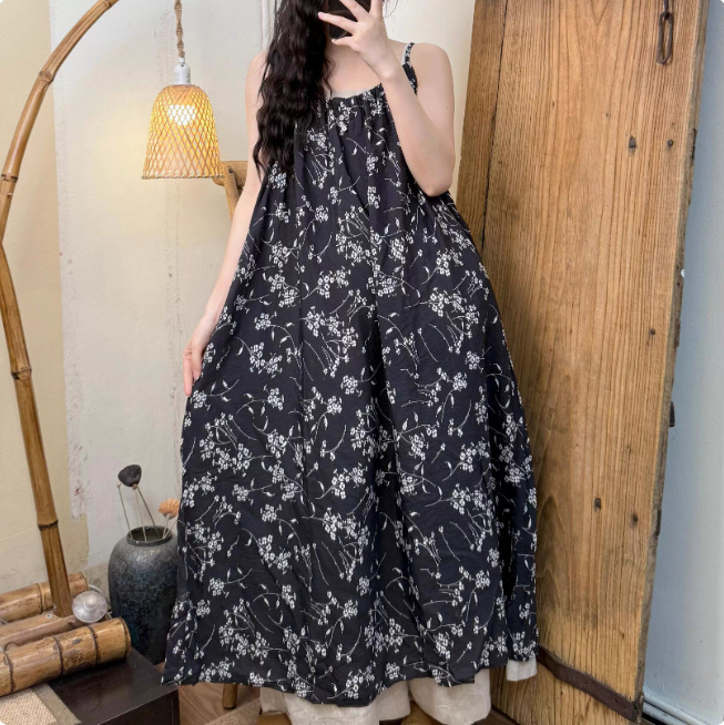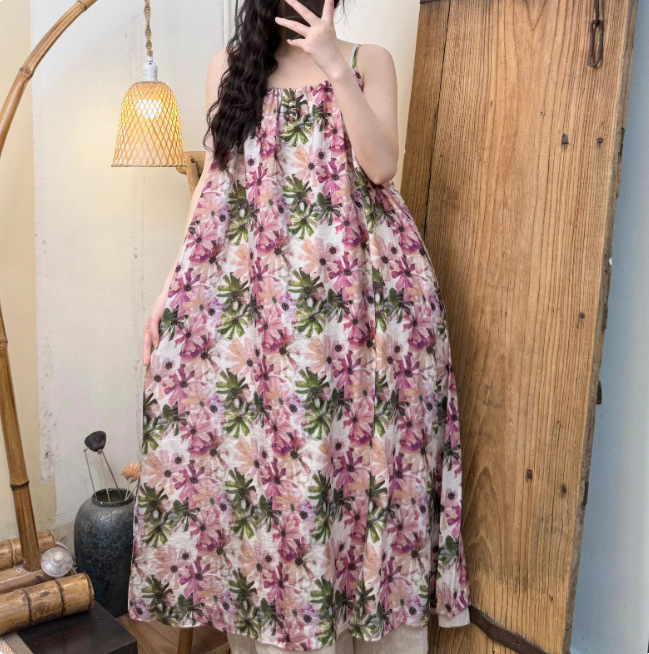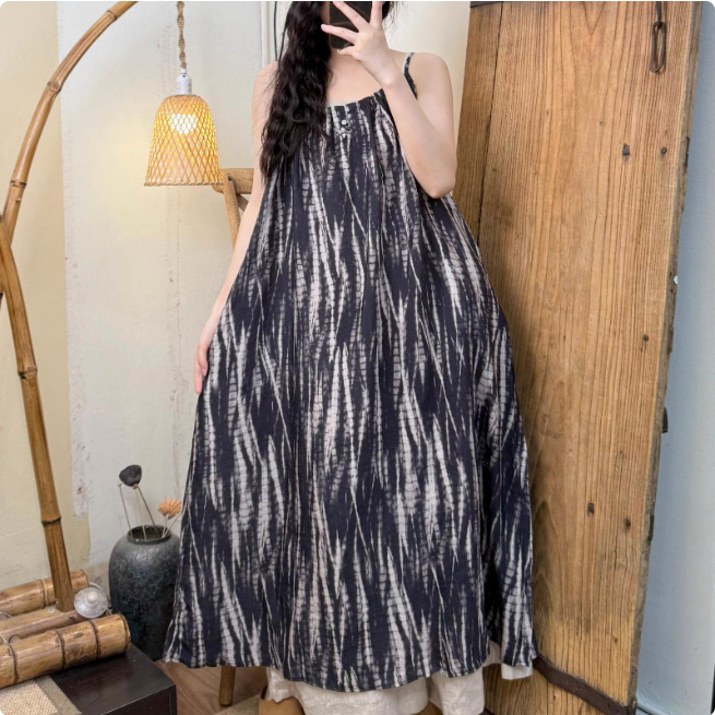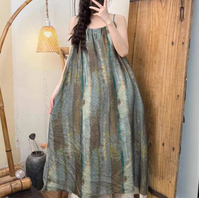 2025 여름 새로운 캐주얼 올 매치 심플 스타일 디지털 인쇄 텐셀 조정 가능한 슬립 원피스