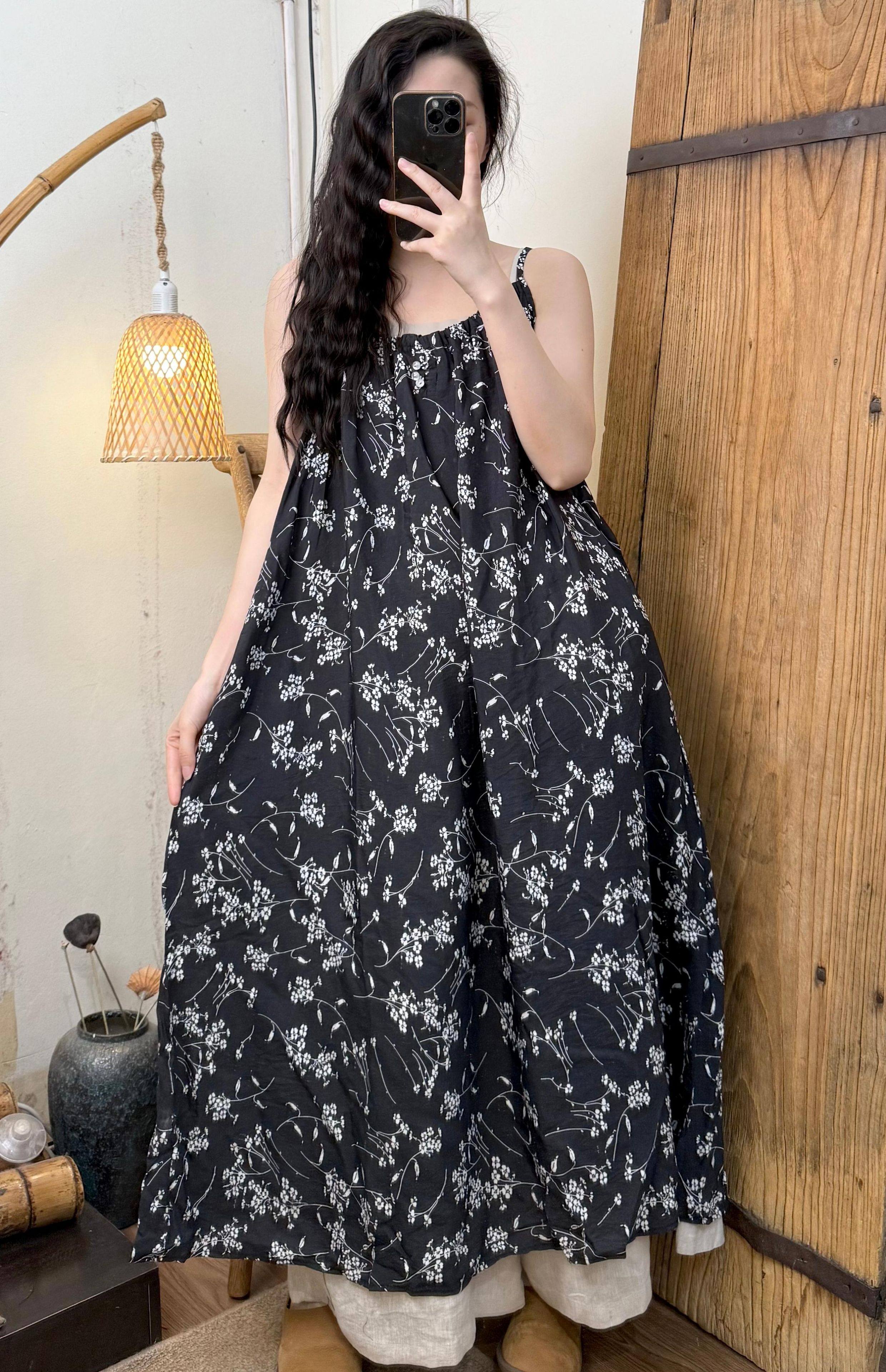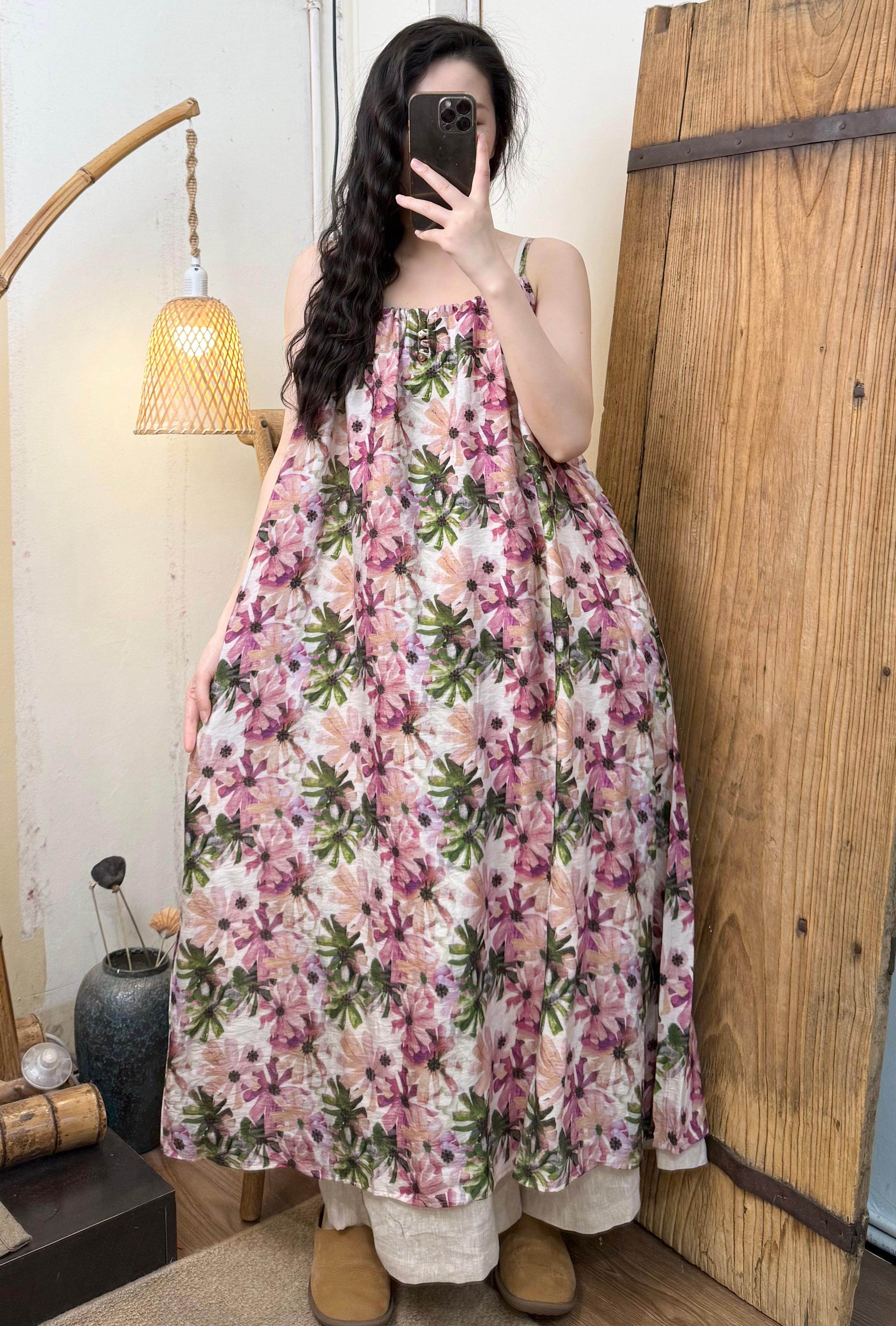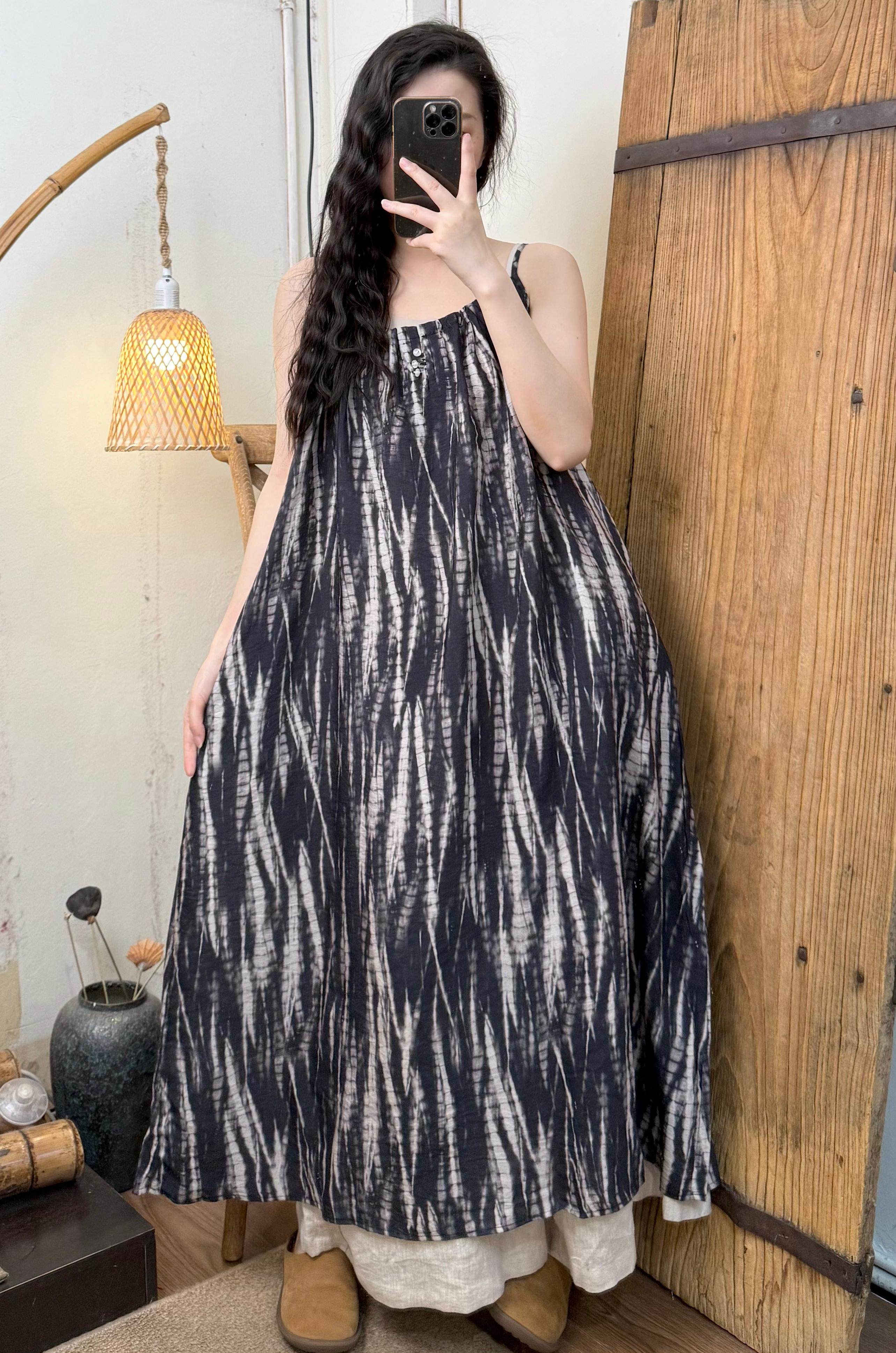 2025 여름 새로운 캐주얼 올 매치 심플 스타일 디지털 인쇄 텐셀 조정 가능한 슬립 원피스