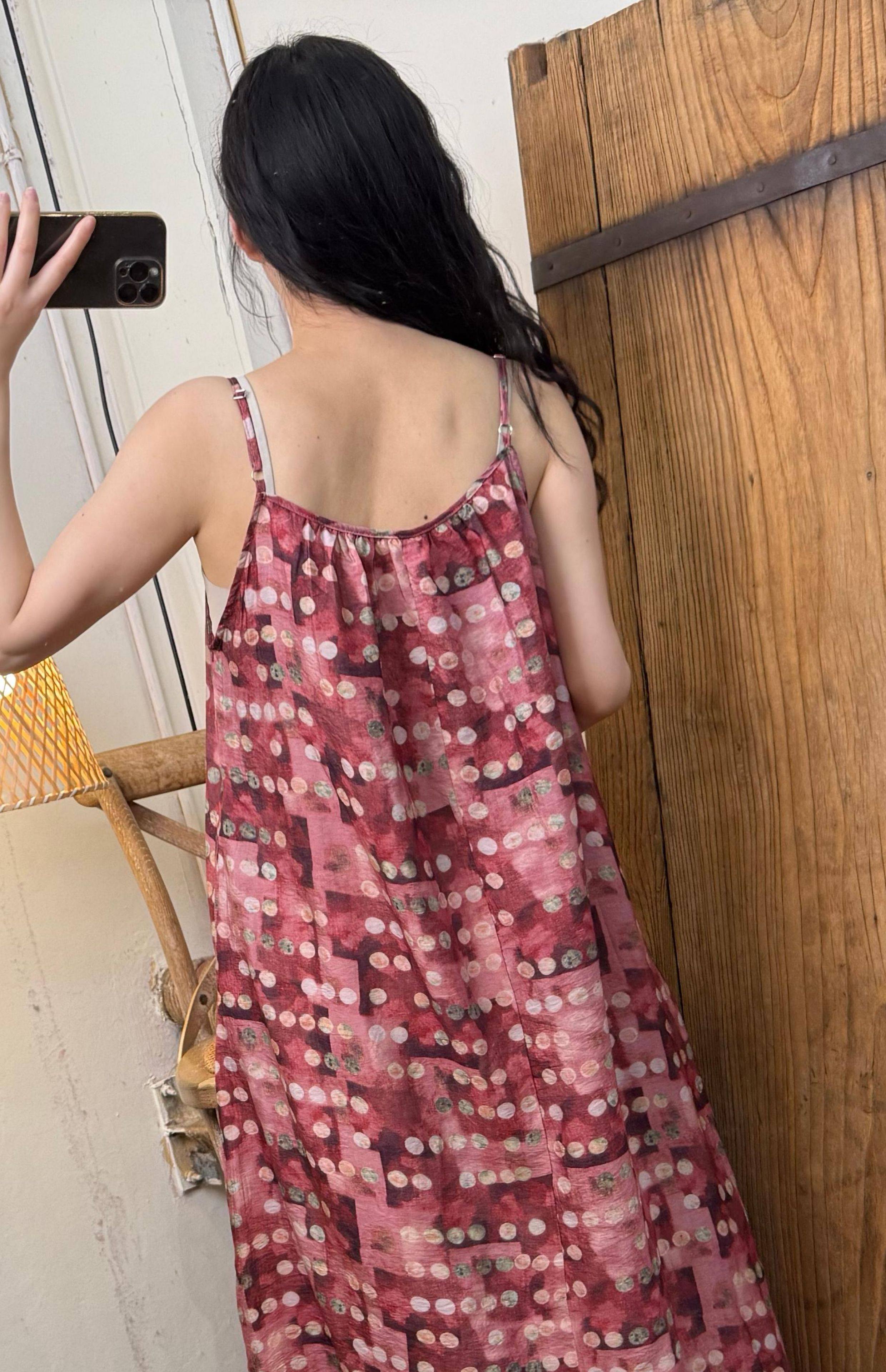 2025 여름 새로운 캐주얼 올 매치 심플 스타일 디지털 인쇄 텐셀 조정 가능한 슬립 원피스스토어 가기