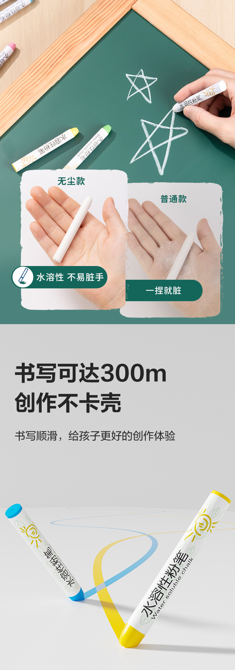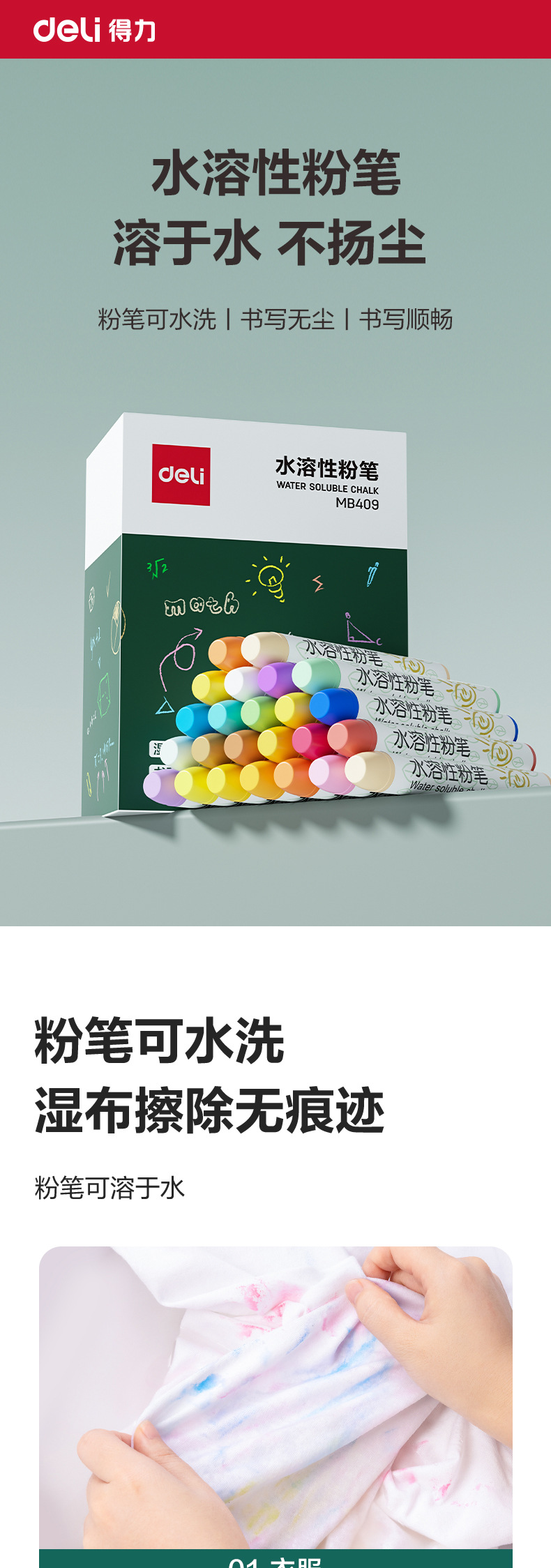 델리 MB409 먼지 없는 컬러 분필 수용성 지울 수 있고 빨 수 있는 고체 분필 어린이 학생 학교 핑크