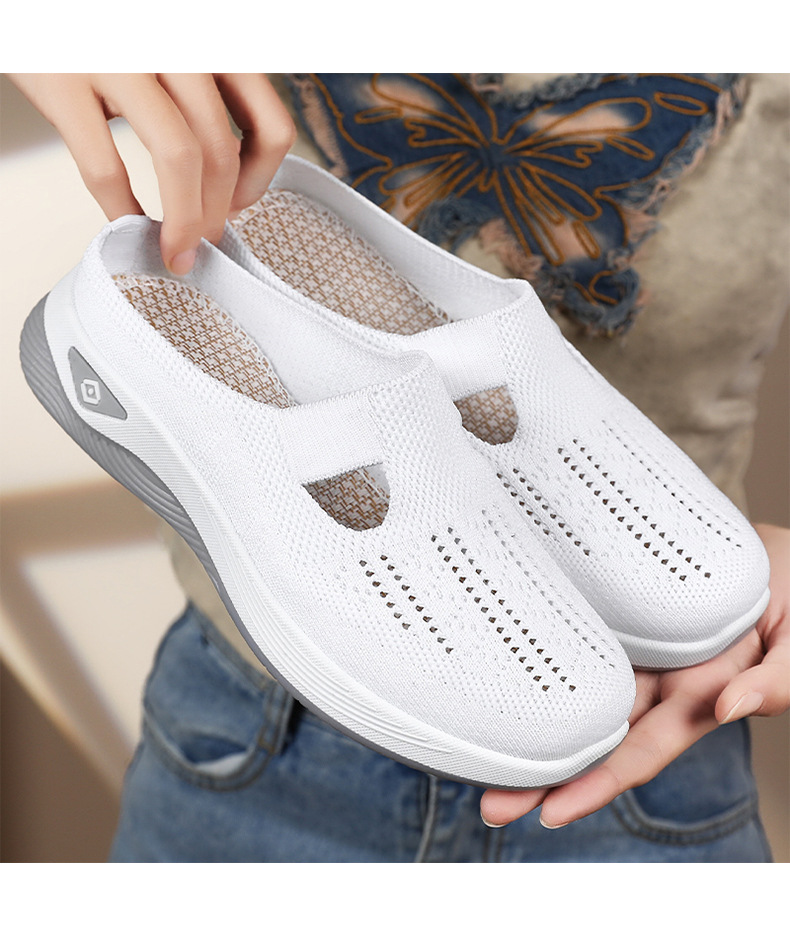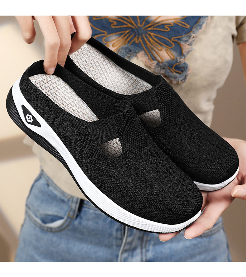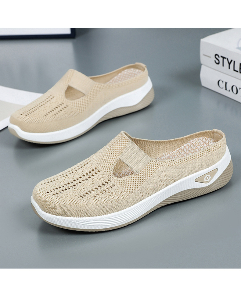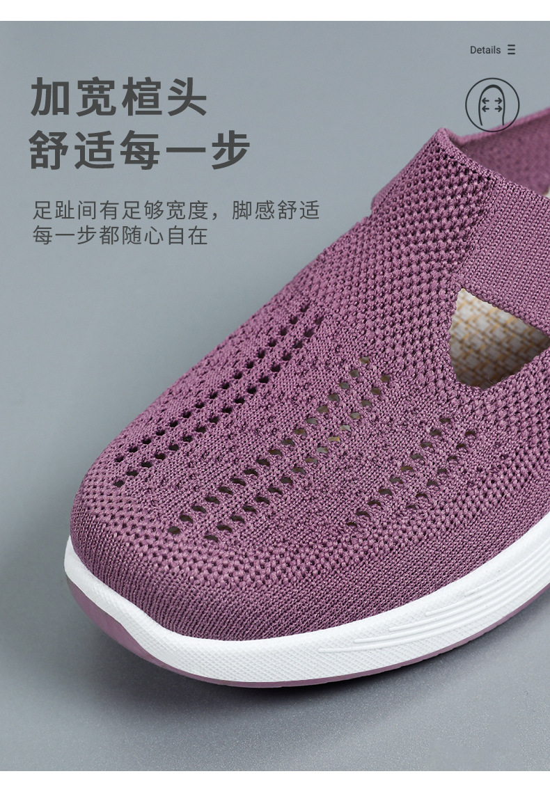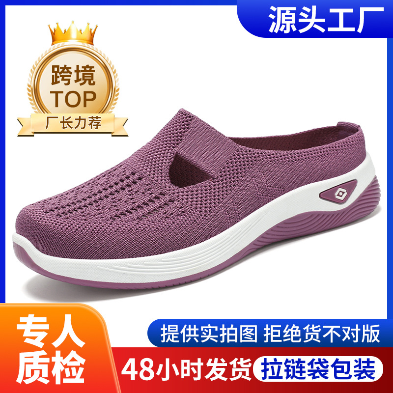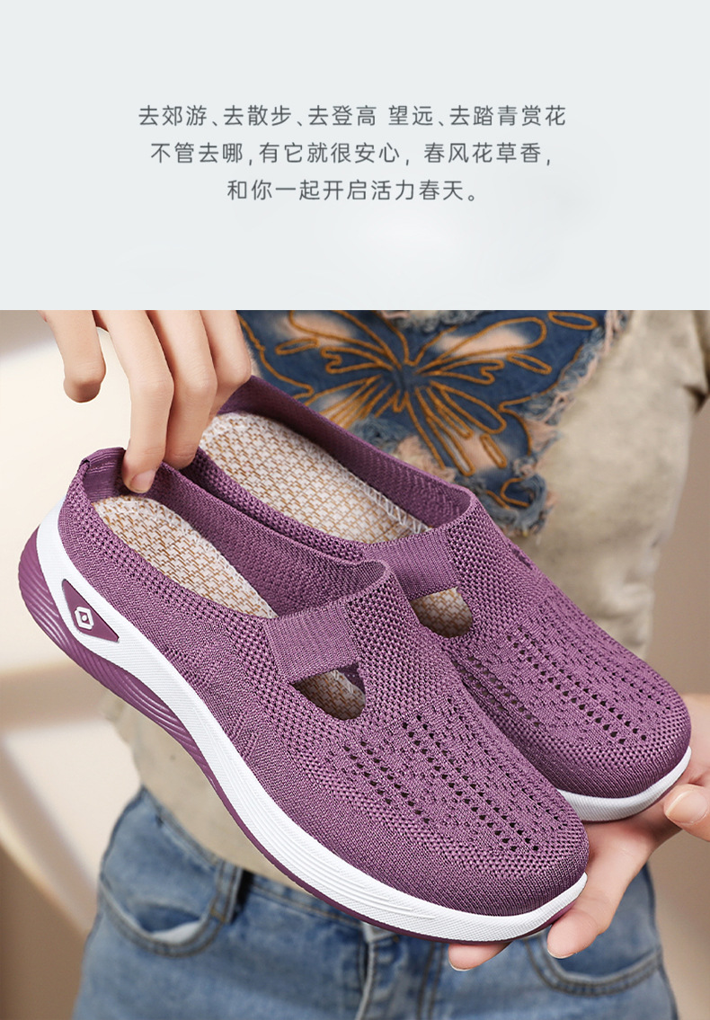 신발, 여성화, 다용도 캐주얼 신발, 통기성 발가락 덮개, 반슬리퍼, 슬립온 슬립온, 메쉬 플라이 니트 슈즈, 부드러운 밑창 슈즈