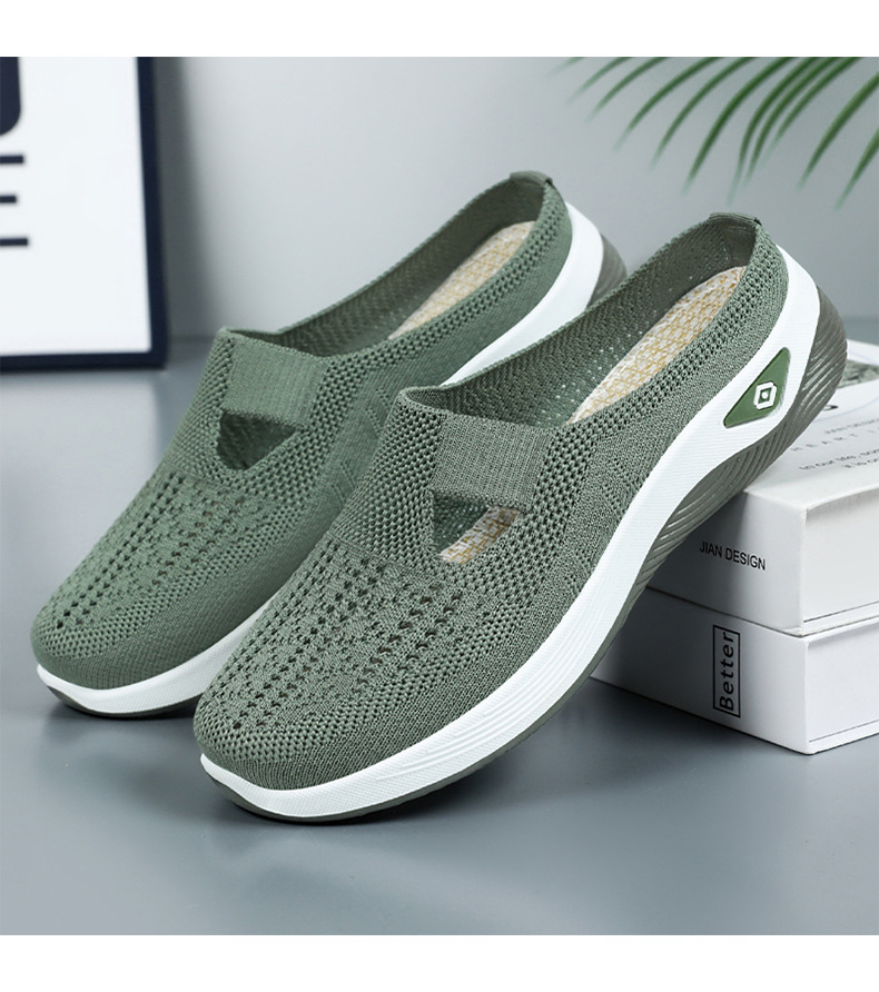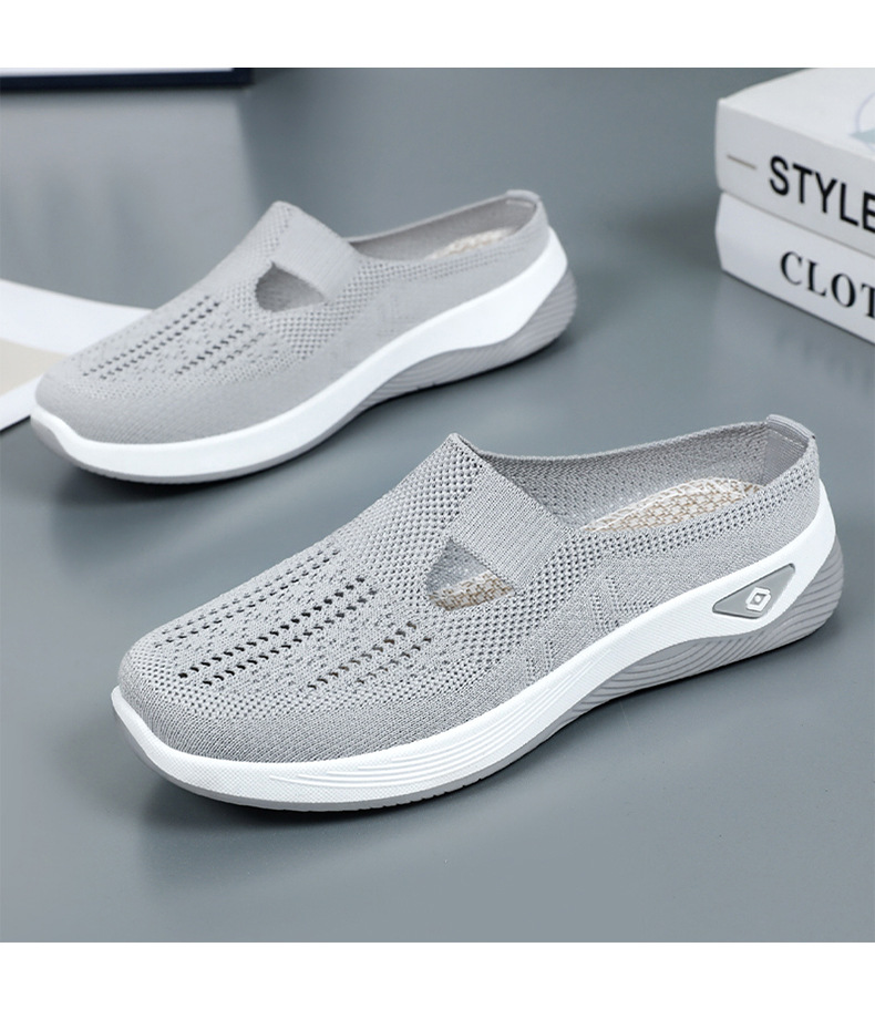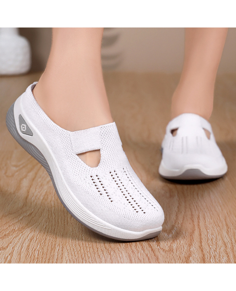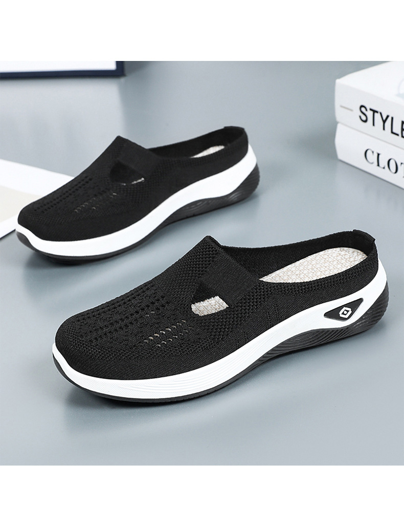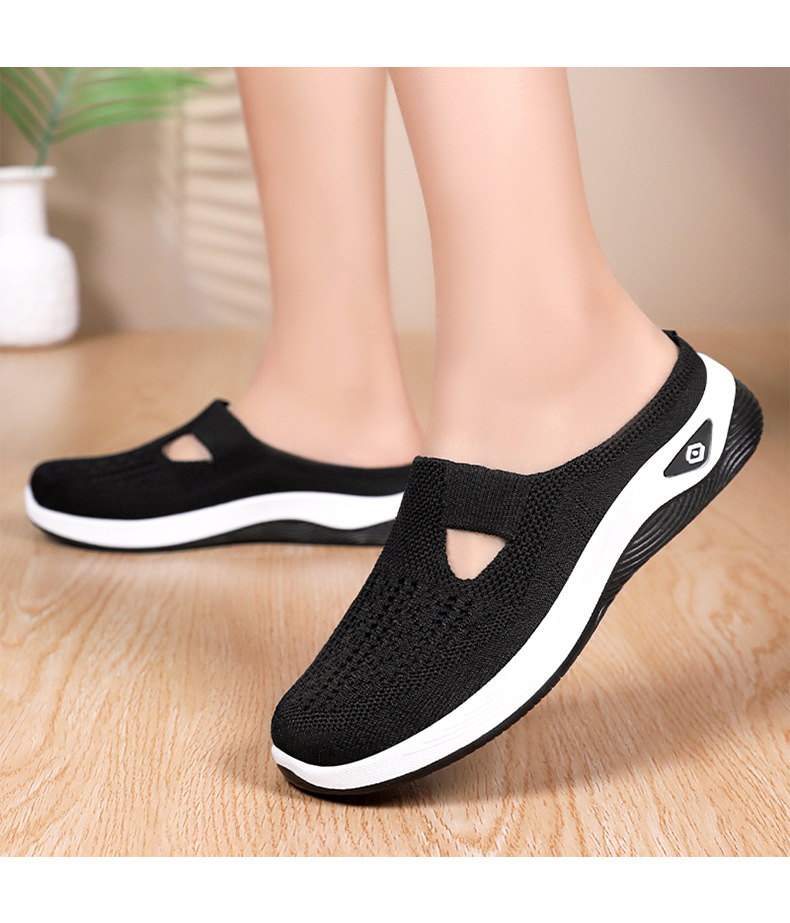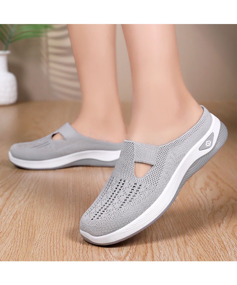 신발, 여성화, 다용도 캐주얼 신발, 통기성 발가락 덮개, 반슬리퍼, 슬립온 슬립온, 메쉬 플라이 니트 슈즈, 부드러운 밑창 슈즈