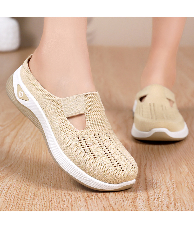 신발, 여성화, 다용도 캐주얼 신발, 통기성 발가락 덮개, 반슬리퍼, 슬립온 슬립온, 메쉬 플라이 니트 슈즈, 부드러운 밑창 슈즈스토어 가기