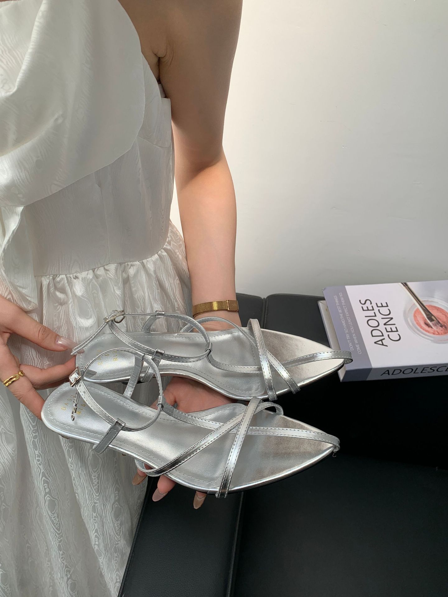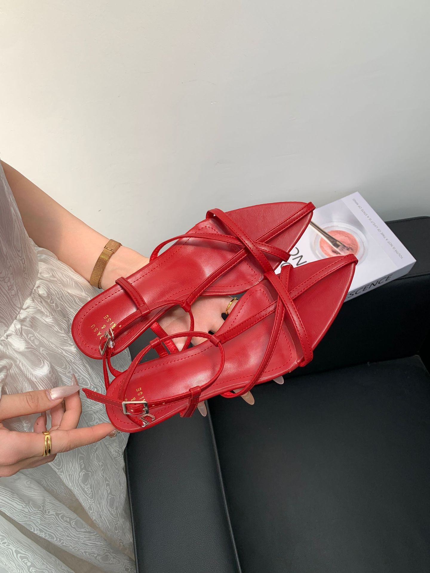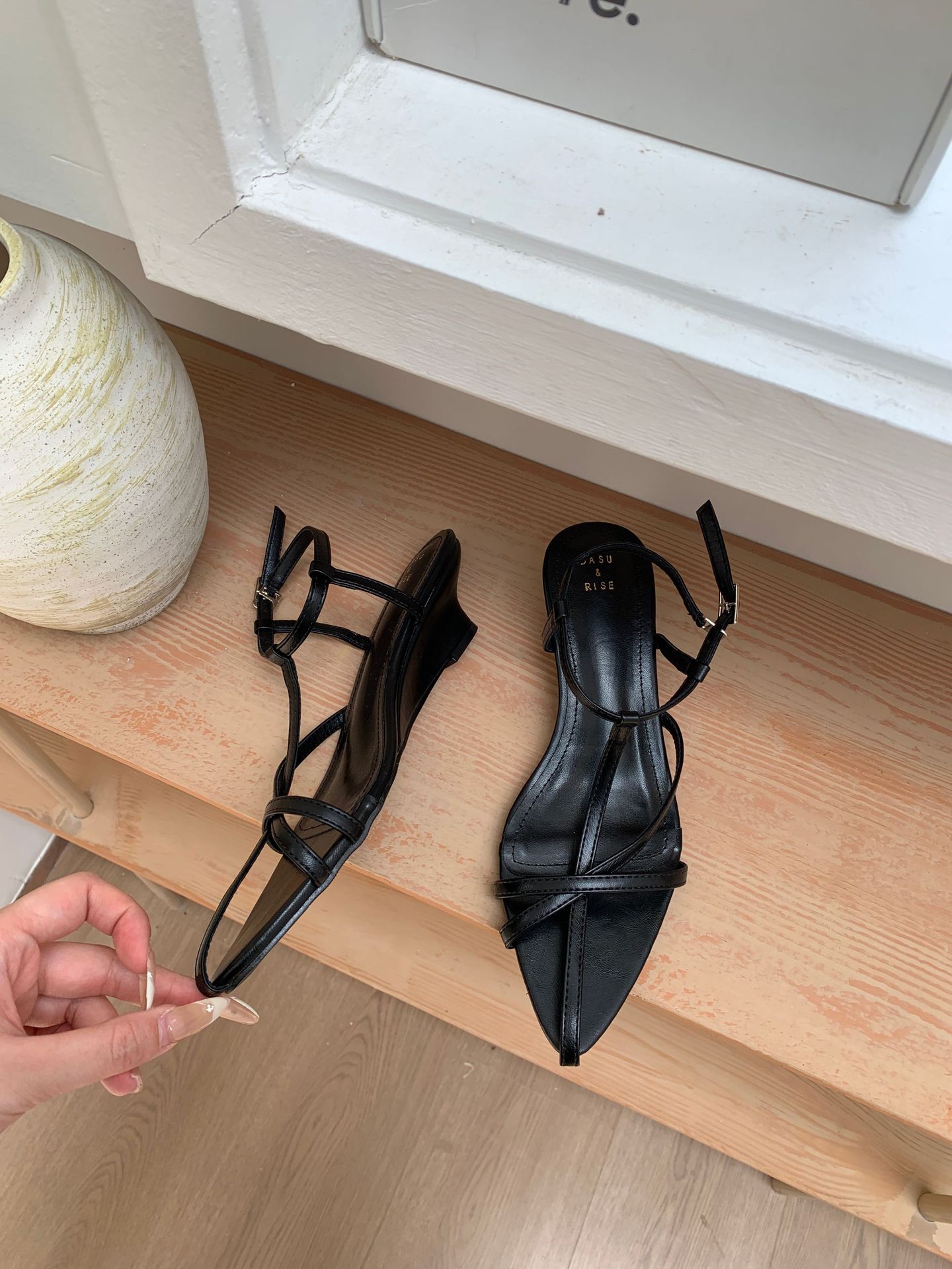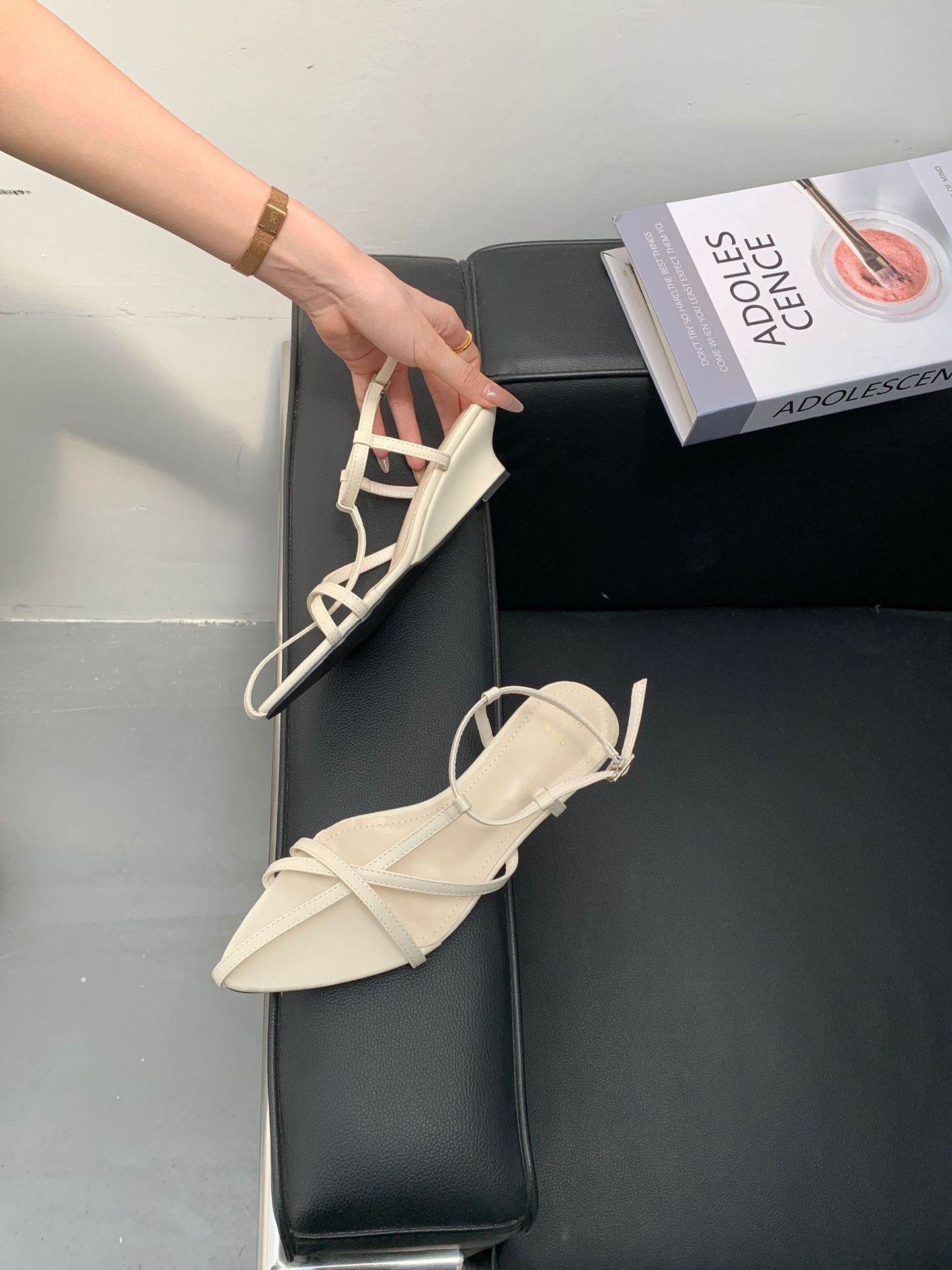 2025년 여름 신상 포인티드 토 중공 원 스트랩 로우 웨지 패션 OL 여성 샌들