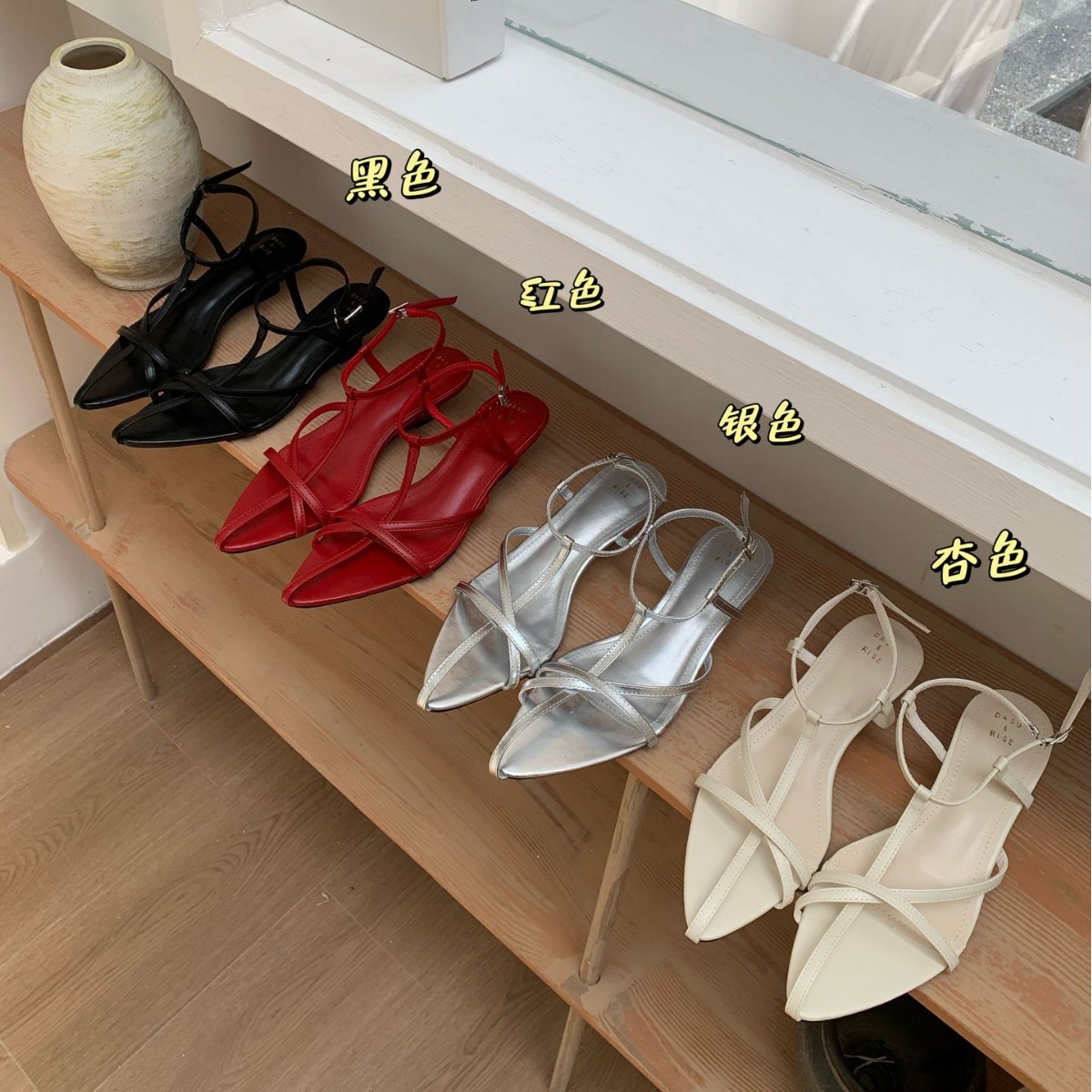 2025년 여름 신상 포인티드 토 중공 원 스트랩 로우 웨지 패션 OL 여성 샌들스토어 가기