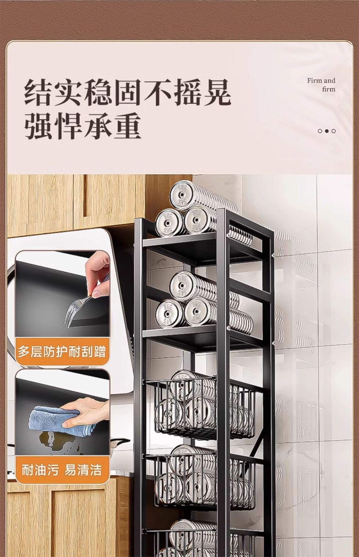 주방 야채 바구니 보관 랙 바닥에서 천장까지 다층 좁은 틈새 야채 랙 보관 랙 풀아웃 스낵 보관 랙 용품