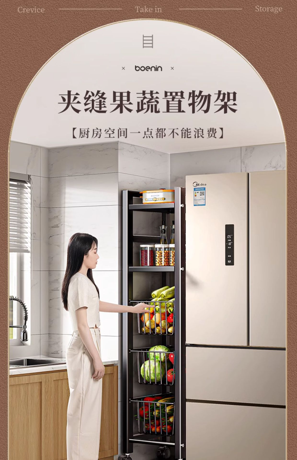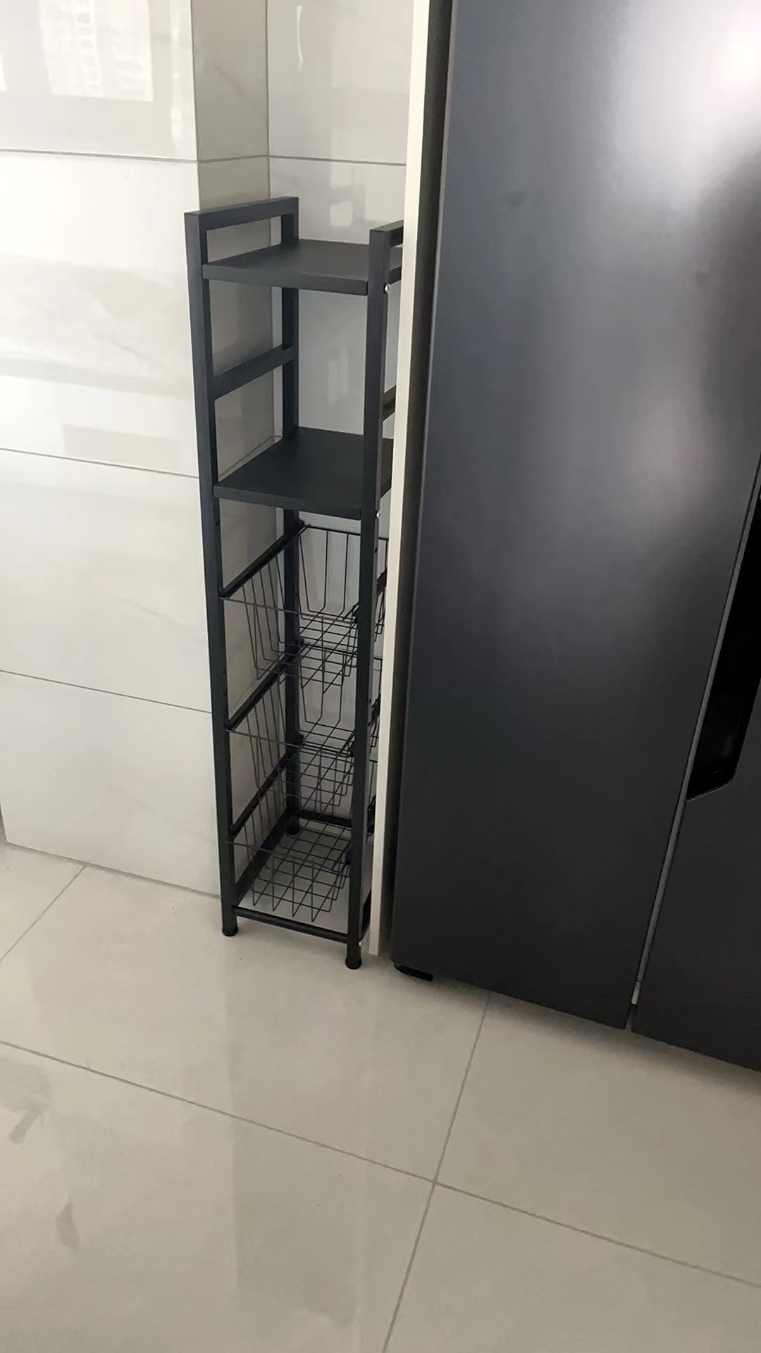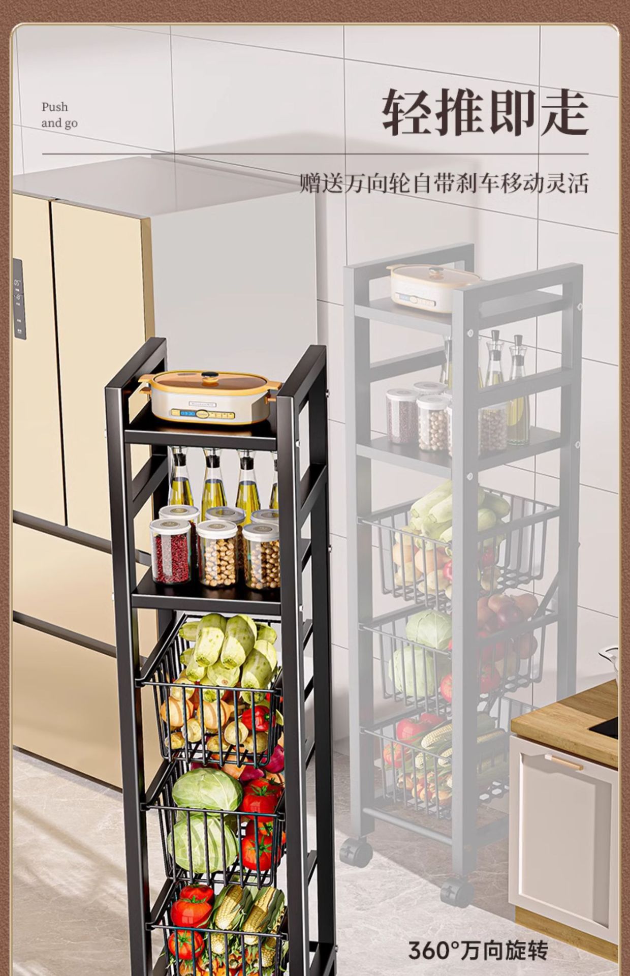 주방 야채 바구니 보관 랙 바닥에서 천장까지 다층 좁은 틈새 야채 랙 보관 랙 풀아웃 스낵 보관 랙 용품스토어 가기