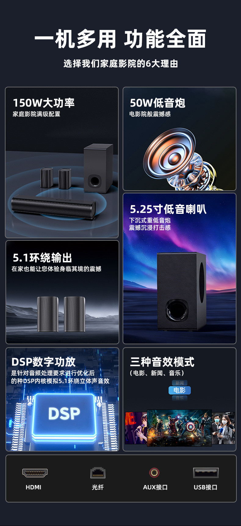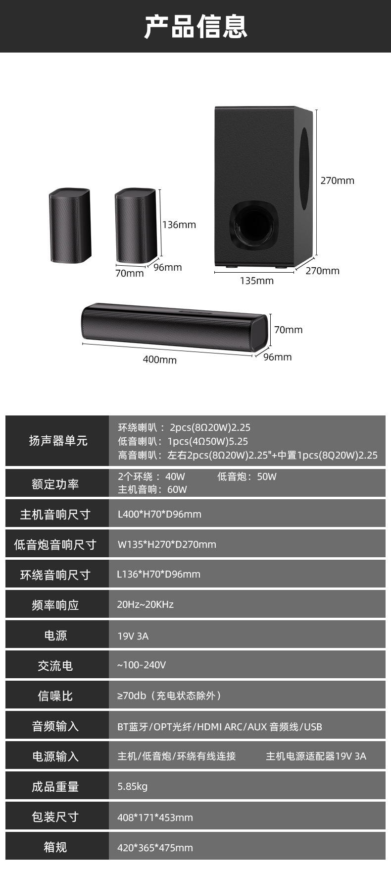 4、环绕喇叭 :2pcs(8Ω20W)2.25