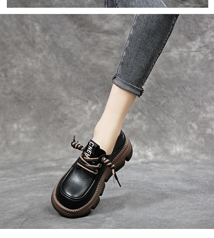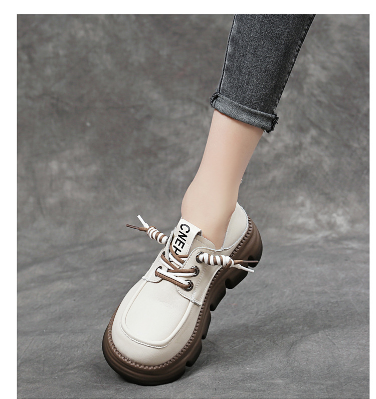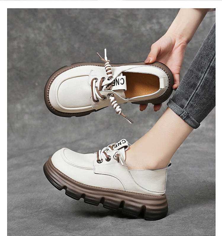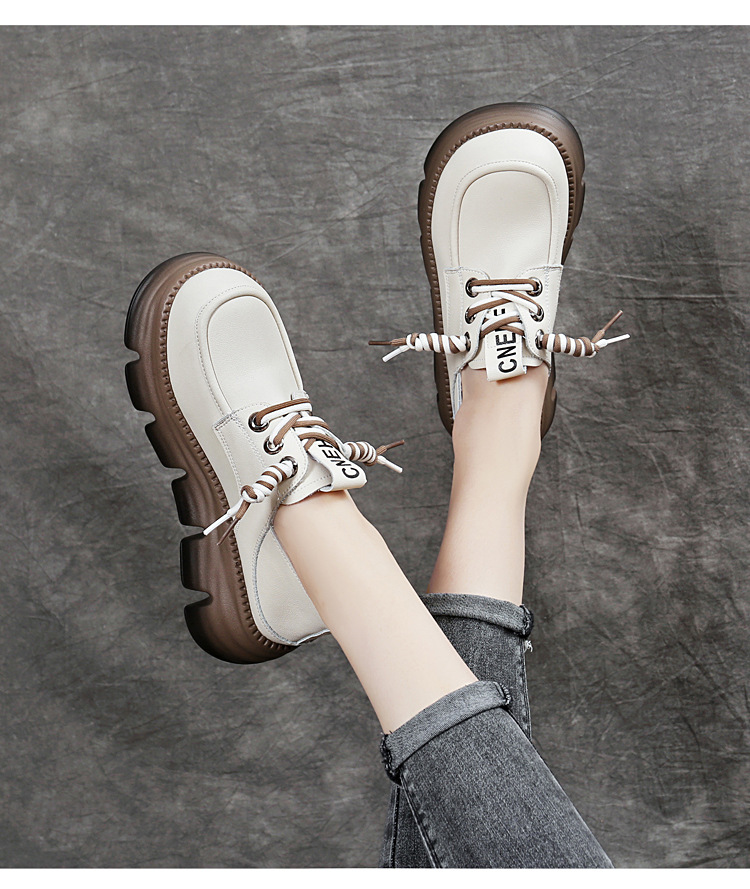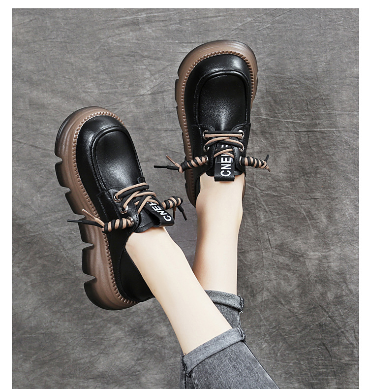 영국식 두꺼운 밑창 레이스업 작은 가죽신, 부드러운 가죽, 다용도 통근 로퍼, 2025 여름 신작 여성화스토어 가기