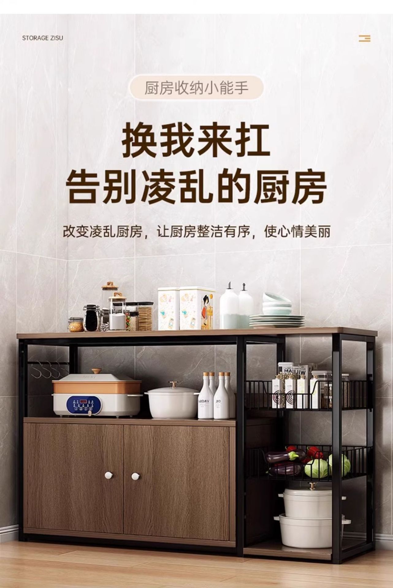 주방 다기능 수납 선반, 바닥에서 천장까지 다층 홈 다이닝 사이드 캐비닛, 수납 캐비닛, 벽걸이형 통합 수납 캐비닛