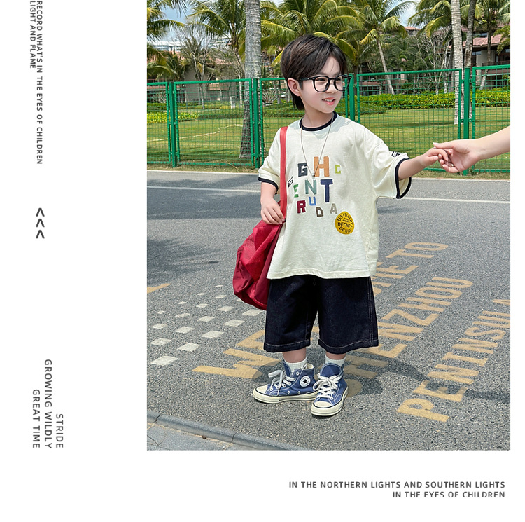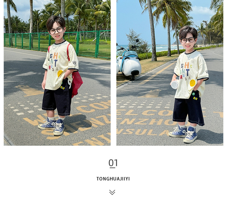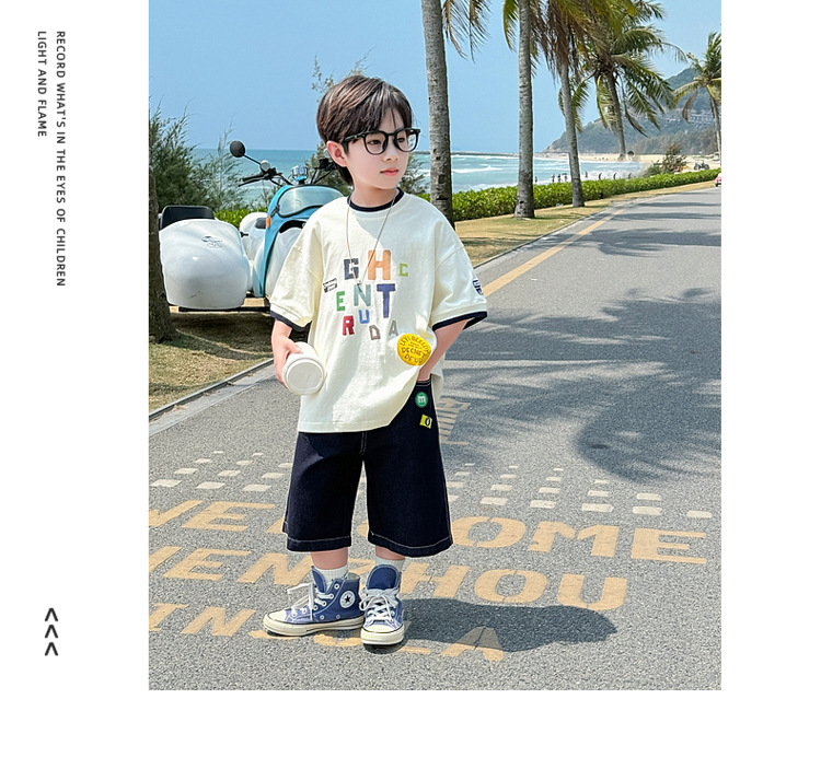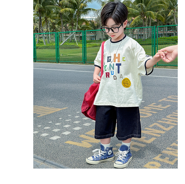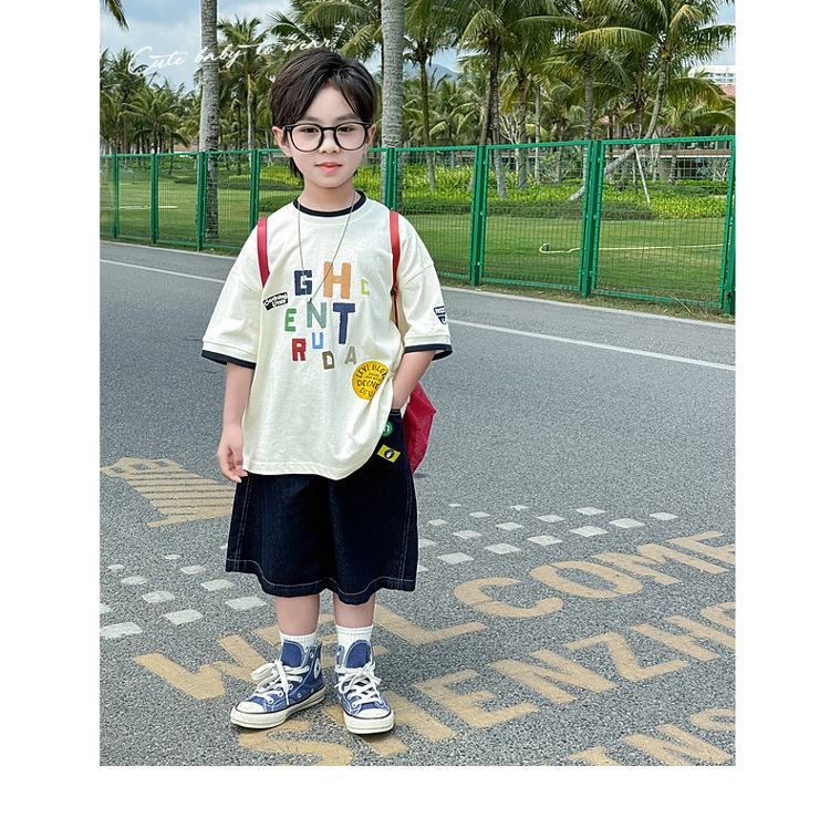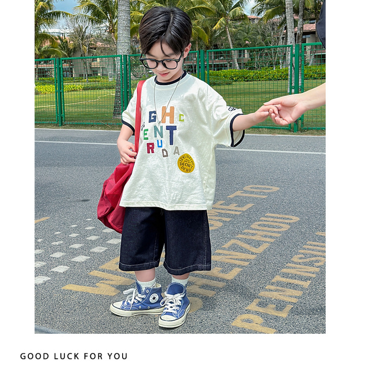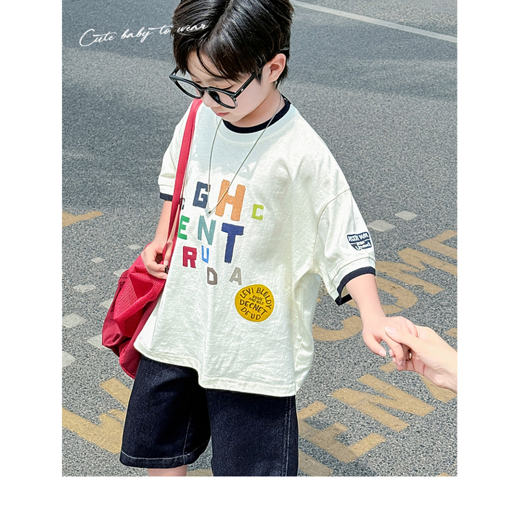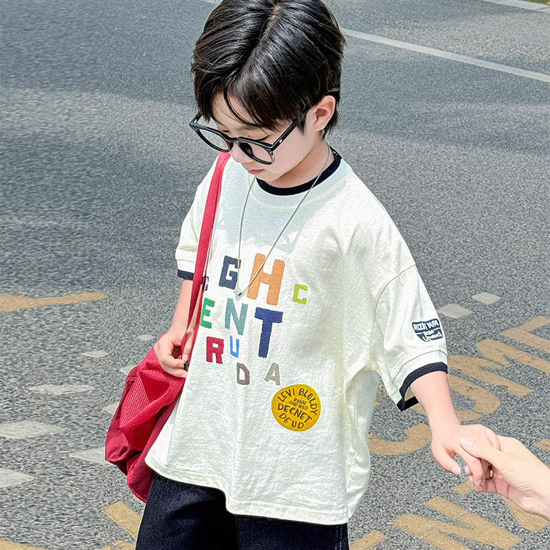 동화 메모리 소년 반팔 티셔츠 여름 2025 새로운 어린이 여름 면화 최고 소년 캐주얼 트렌디