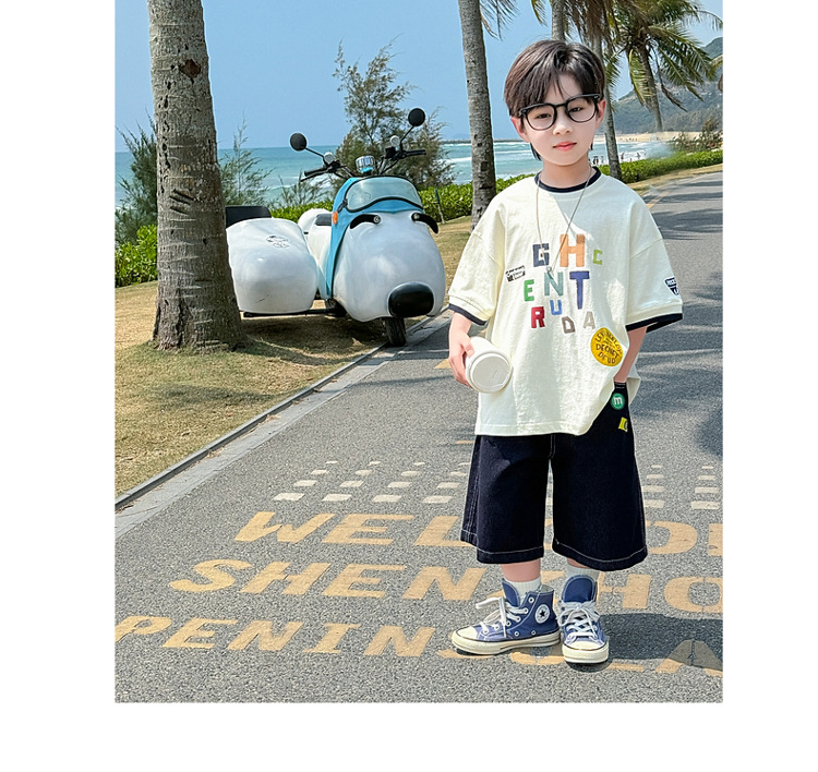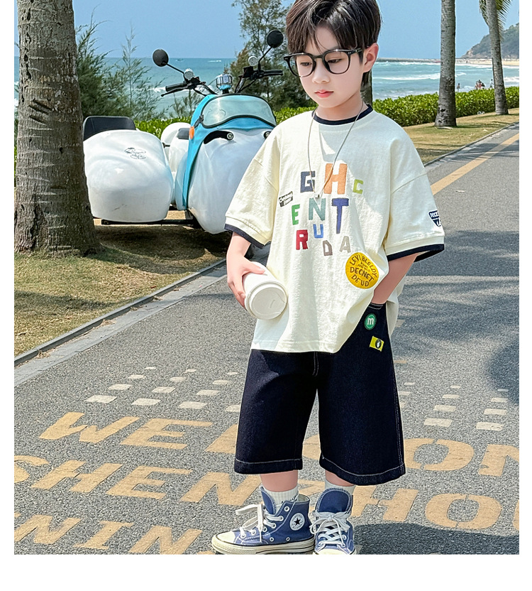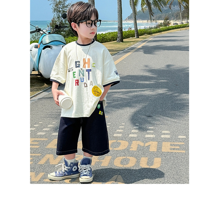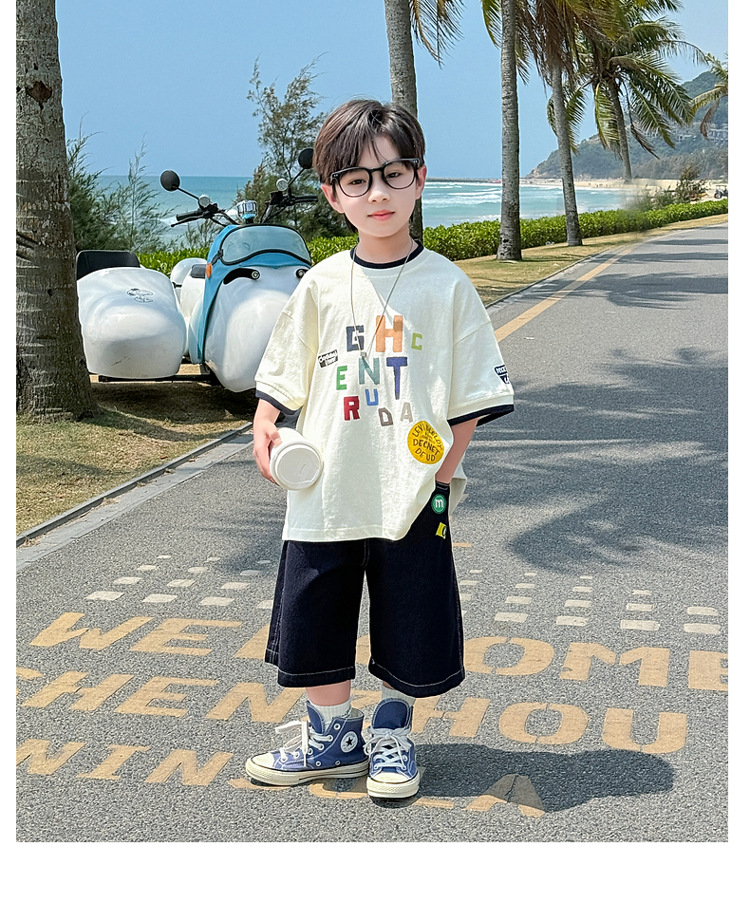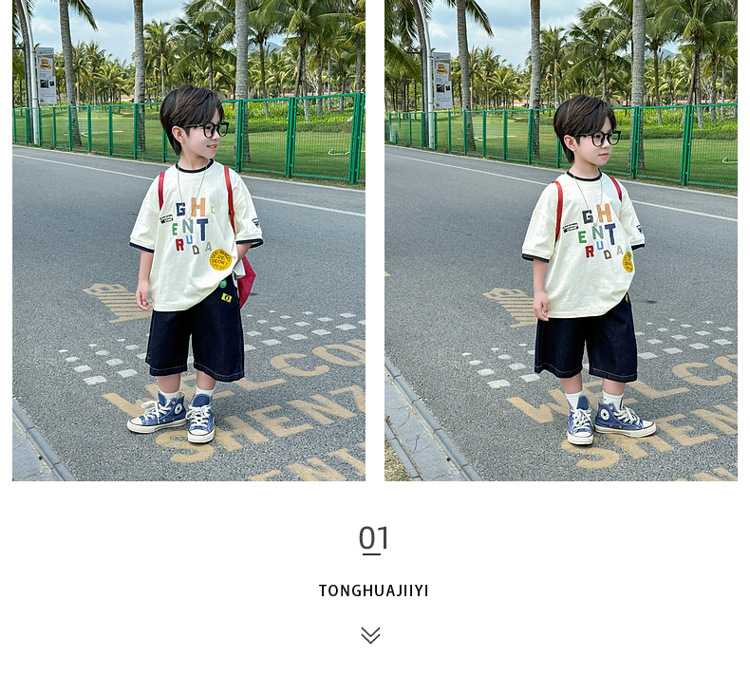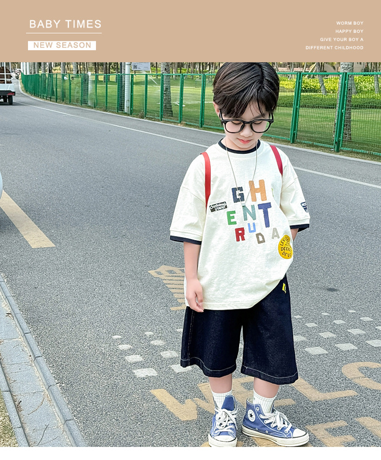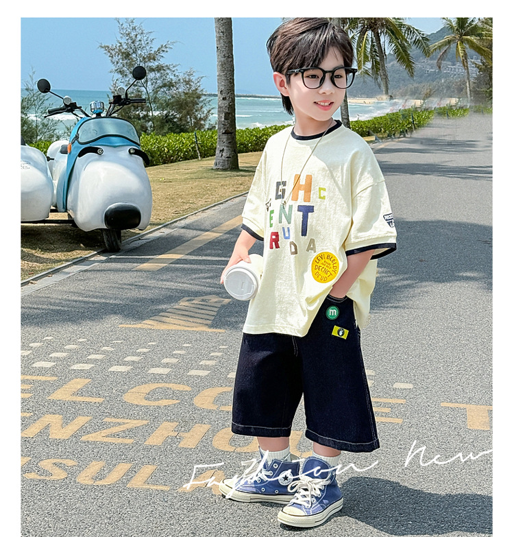 동화 메모리 소년 반팔 티셔츠 여름 2025 새로운 어린이 여름 면화 최고 소년 캐주얼 트렌디