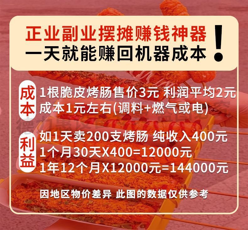 인터넷 연예인 황금 바삭한 소시지 기계 상업용 소시지 기계 전분 소시지 노점 스토브 구운 햄 소시지 기계
