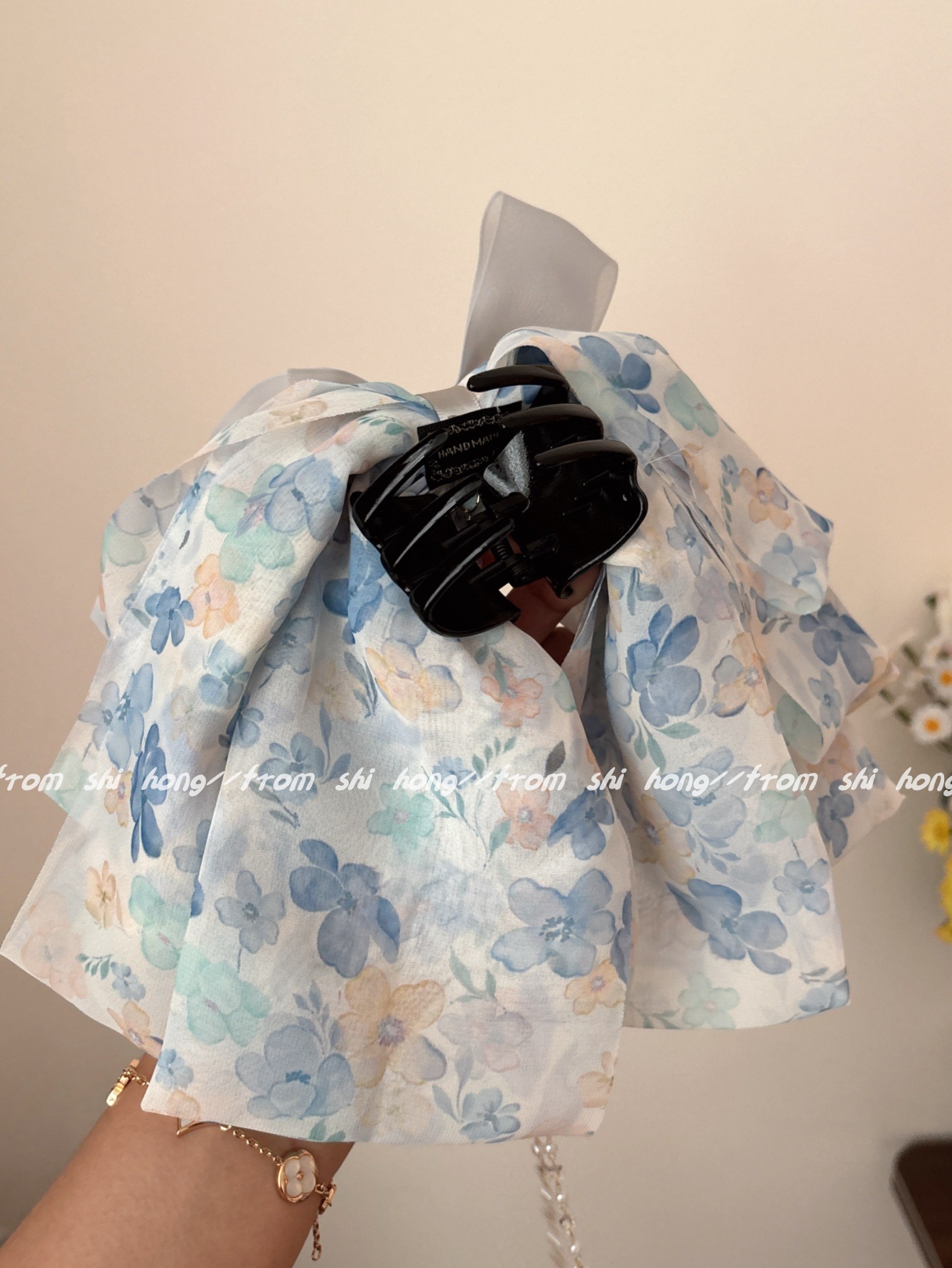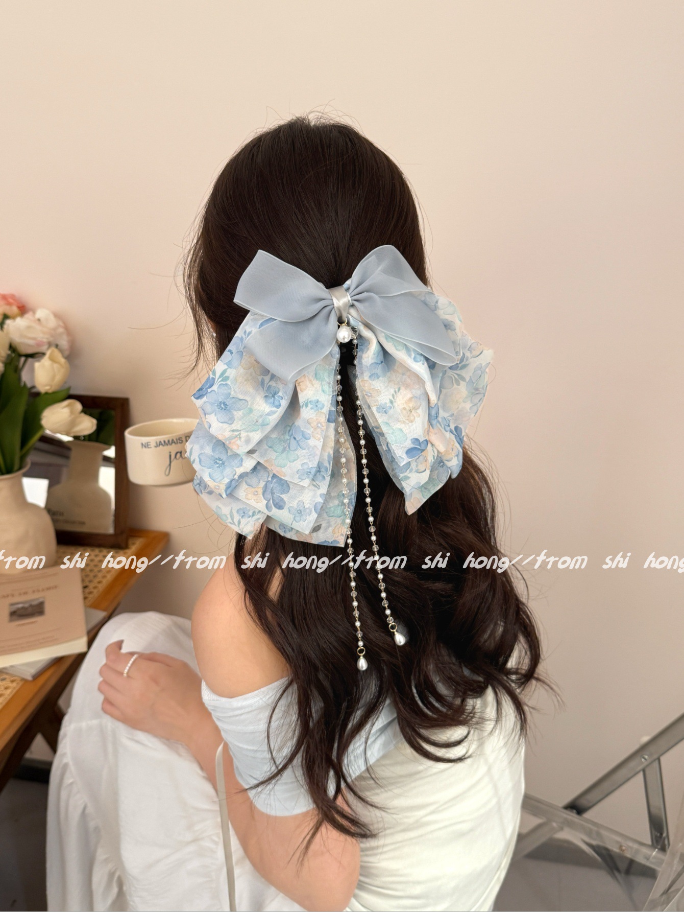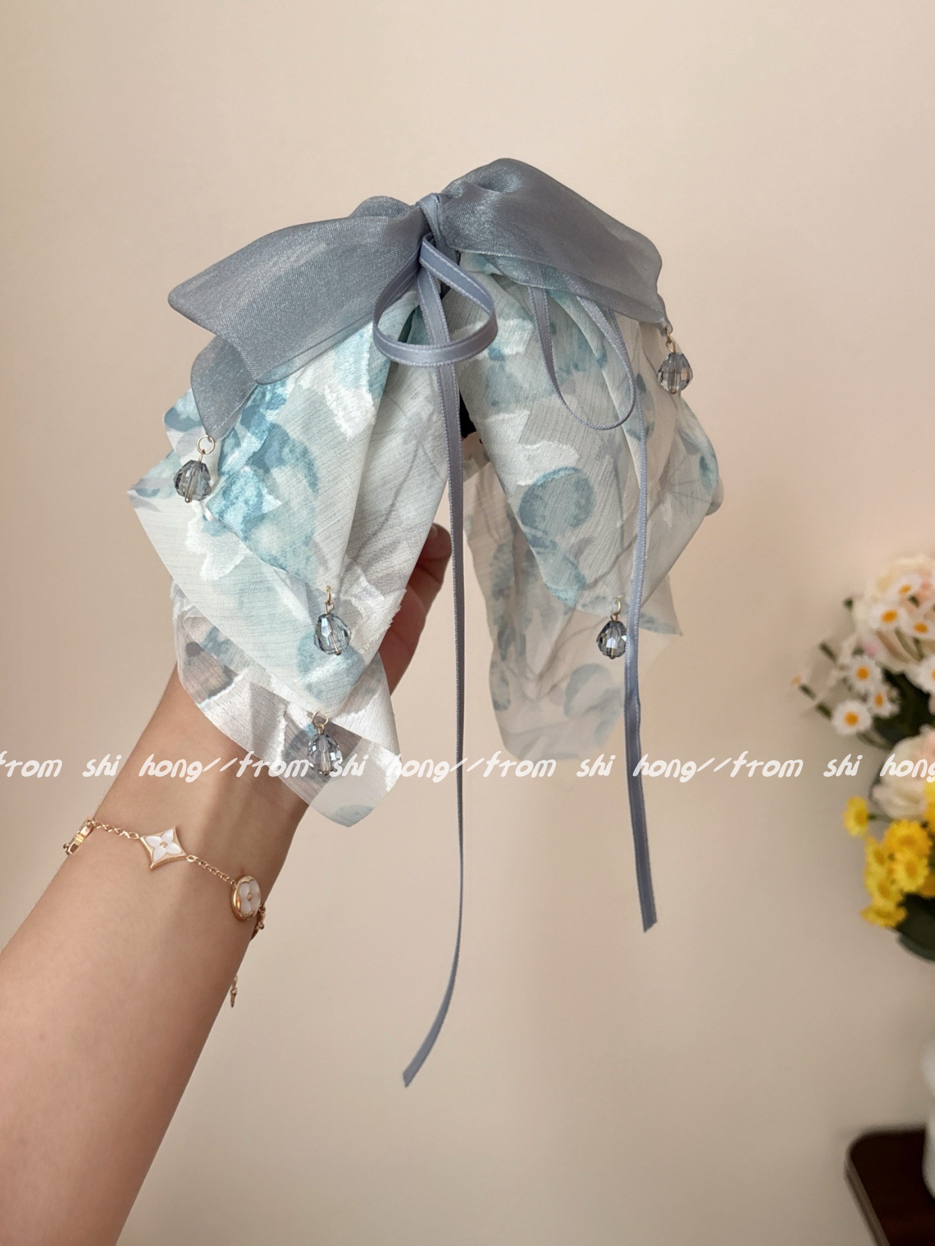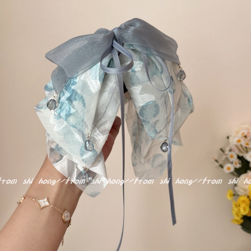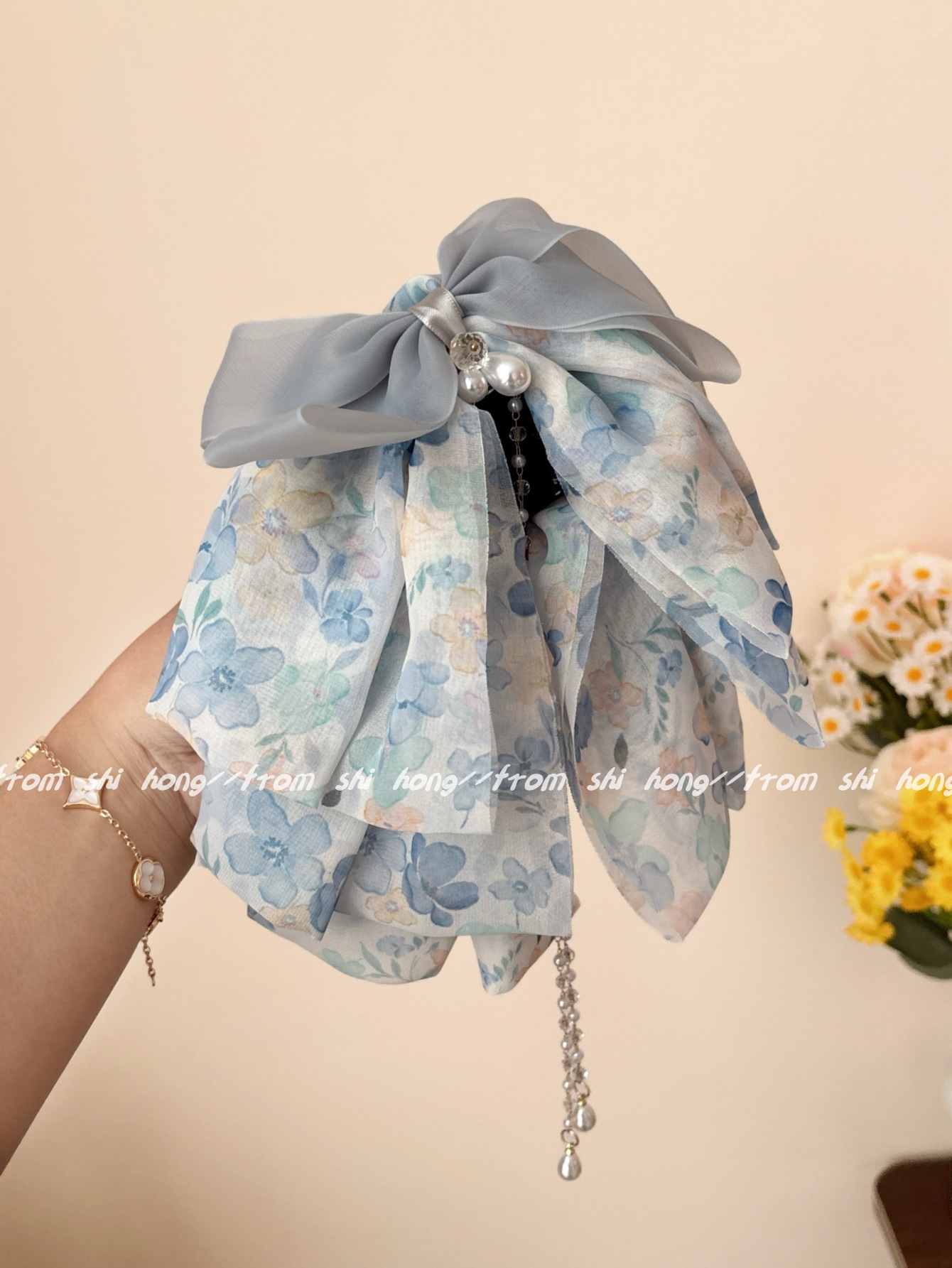 바다 소금 블루 리본 활 포니 테일 그립 클립 여성의 새로운 크리스탈 장식 높은 두개골 탑 패션 헤어 그립 상어 클립스토어 가기