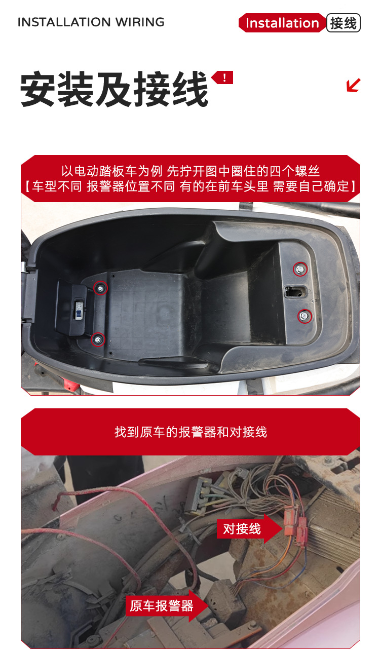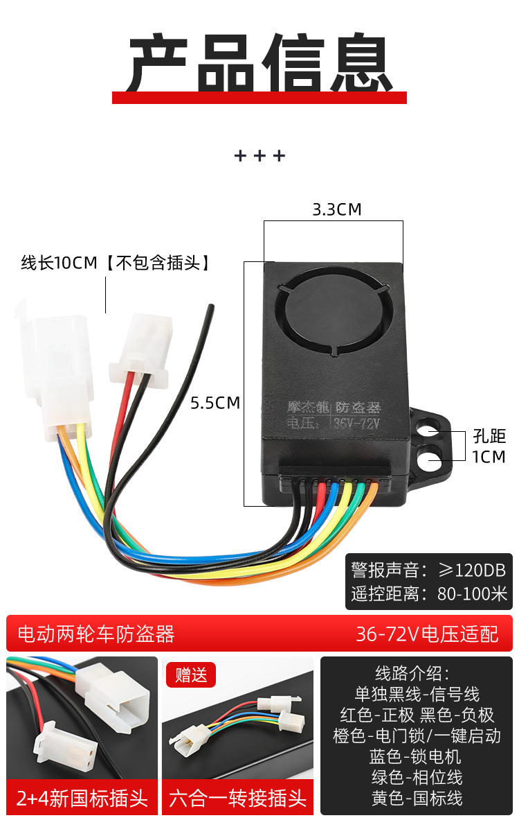 전기 자동차 도난 방지 장치 세발 자전거 경보 이중 원격 제어 원 버튼 시작 잠금 모터 적응 엠마 나이프 테이블 벨