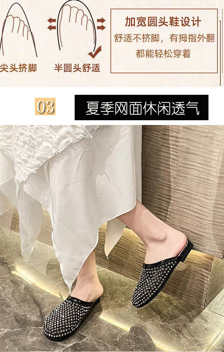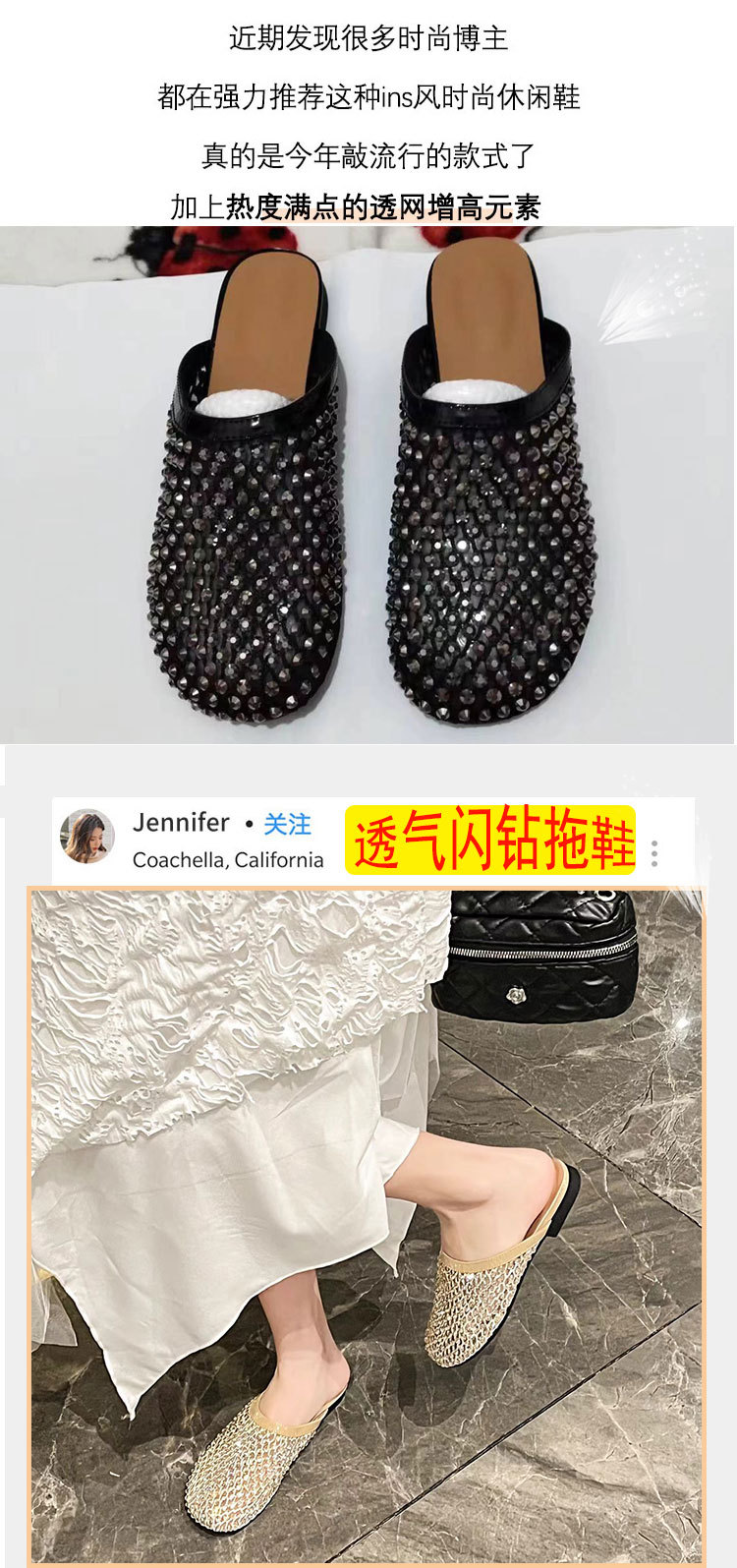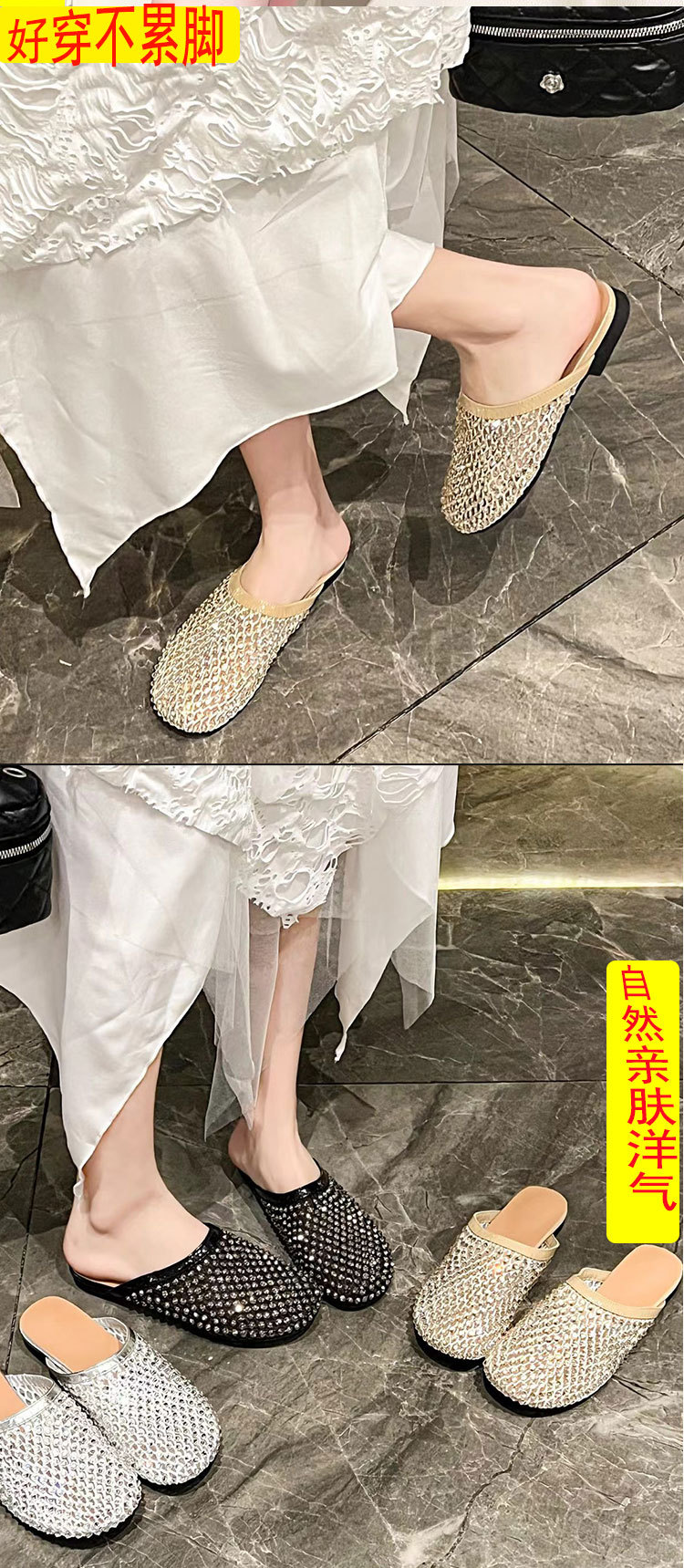 2025 여름 라인스톤 풀 다이아몬드 통기성 망사 중공 아우터 발가락 반슬리퍼 샌들 버켄스탁 플랫 여성 슬리퍼스토어 가기