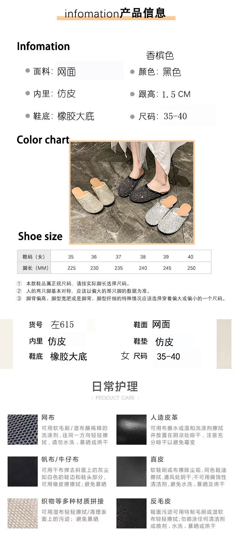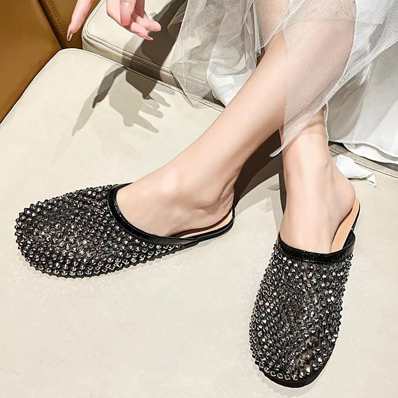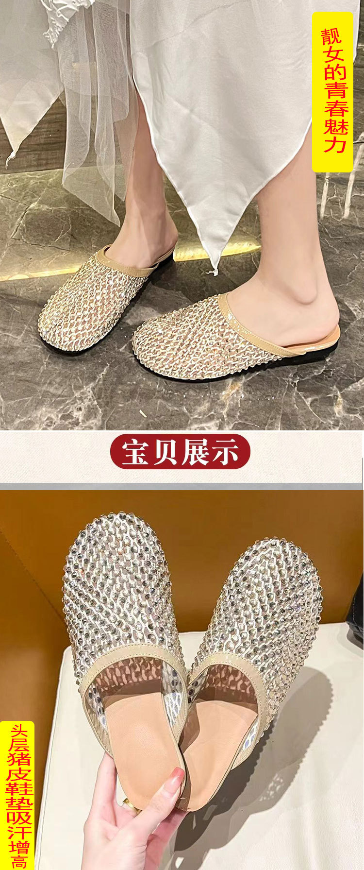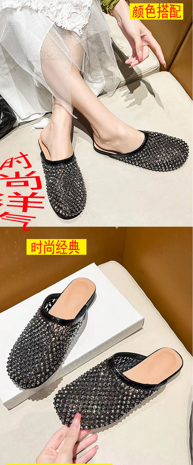 2025 여름 라인스톤 풀 다이아몬드 통기성 망사 중공 아우터 발가락 반슬리퍼 샌들 버켄스탁 플랫 여성 슬리퍼스토어 가기