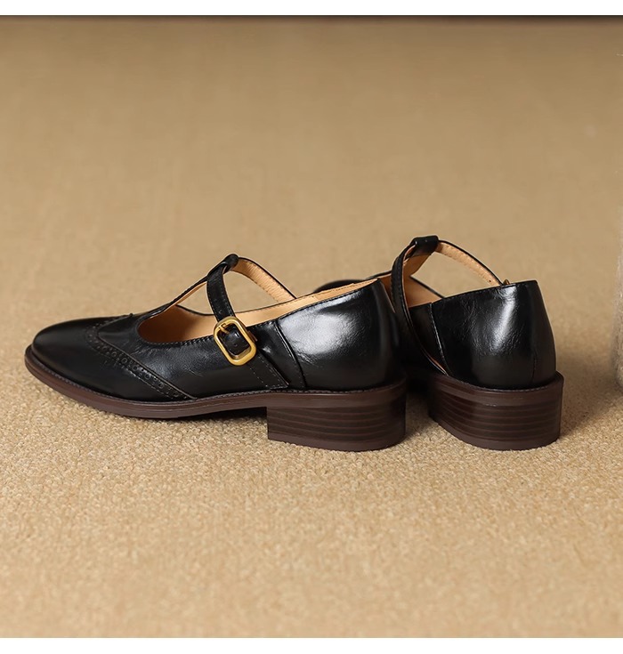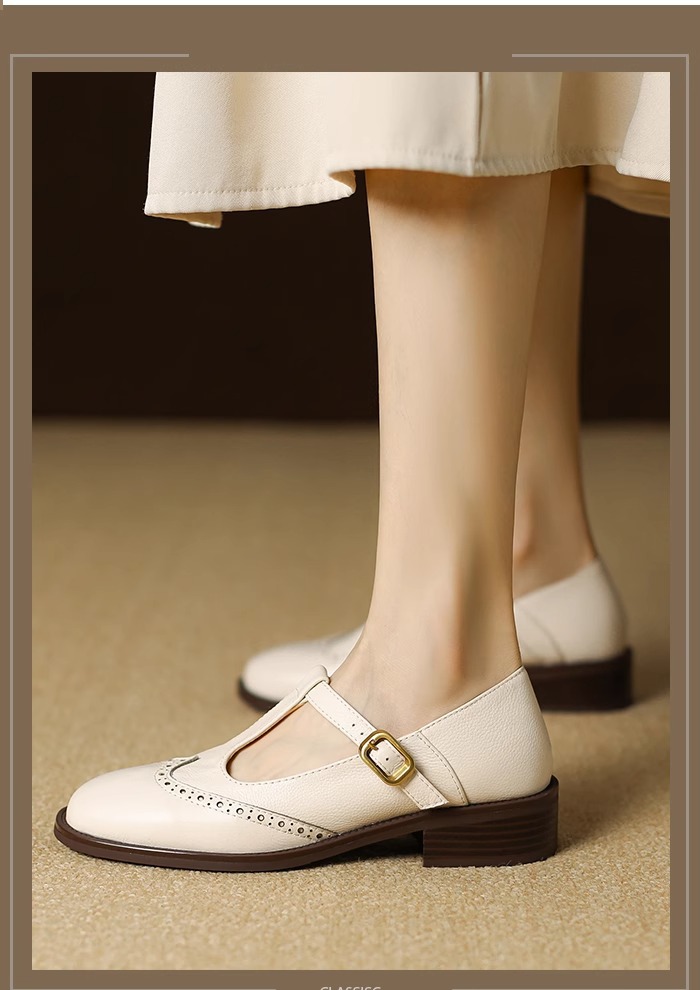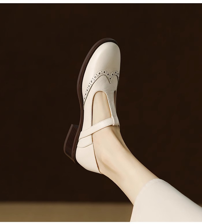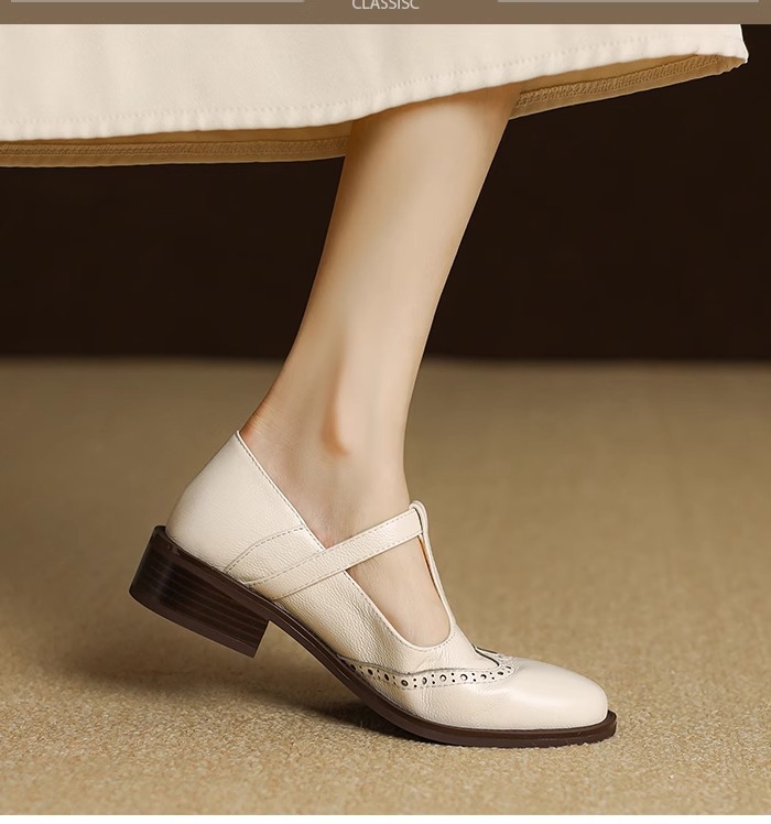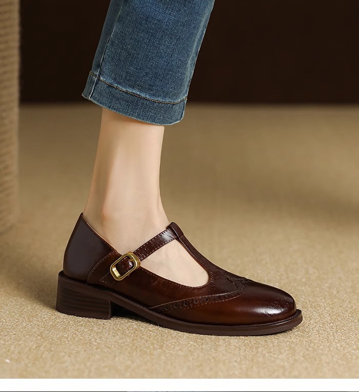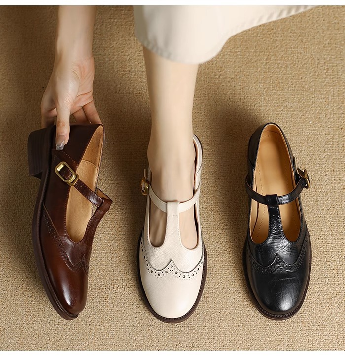 메리 제인 여성용 작은 가죽 신발 2025 새로운 부드러운 가죽 복고풍 브로그 여성 신발 영국 스타일 로퍼 두꺼운 굽 싱글 신발
