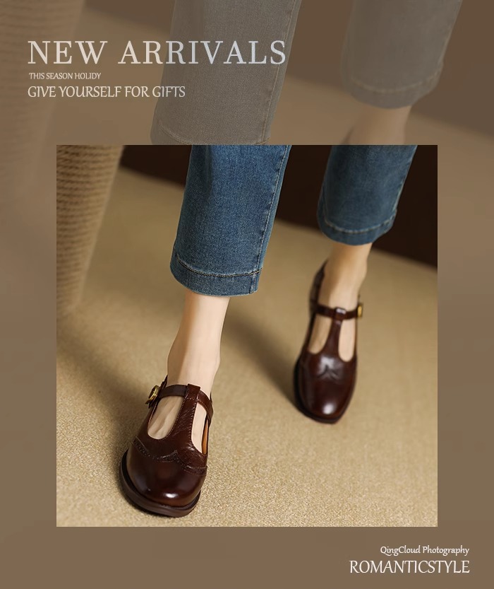 메리 제인 여성용 작은 가죽 신발 2025 새로운 부드러운 가죽 복고풍 브로그 여성 신발 영국 스타일 로퍼 두꺼운 굽 싱글 신발스토어 가기
