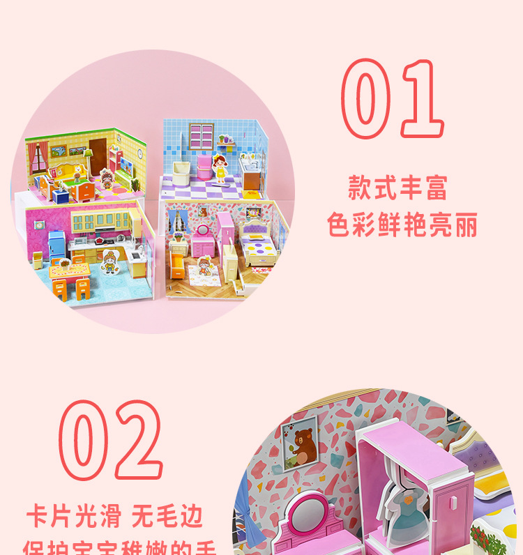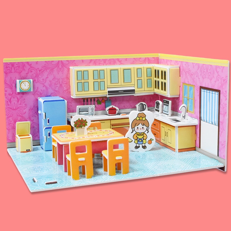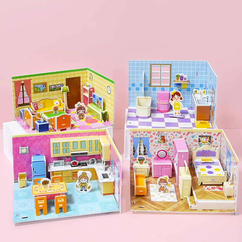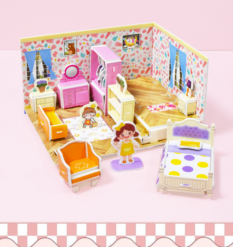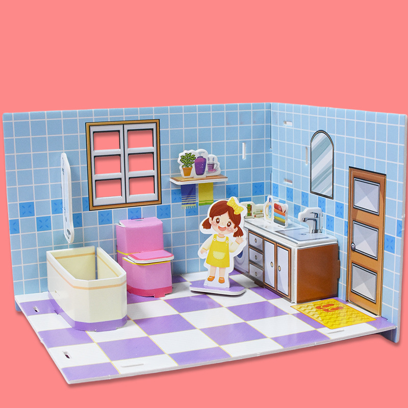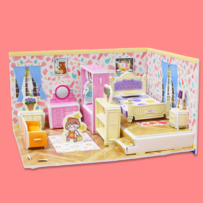 3D 어린이 입체 퍼즐 실내 방 장난감 만화 크리 에이 티브 캐빈 손으로 조립 어린이 교육 선물