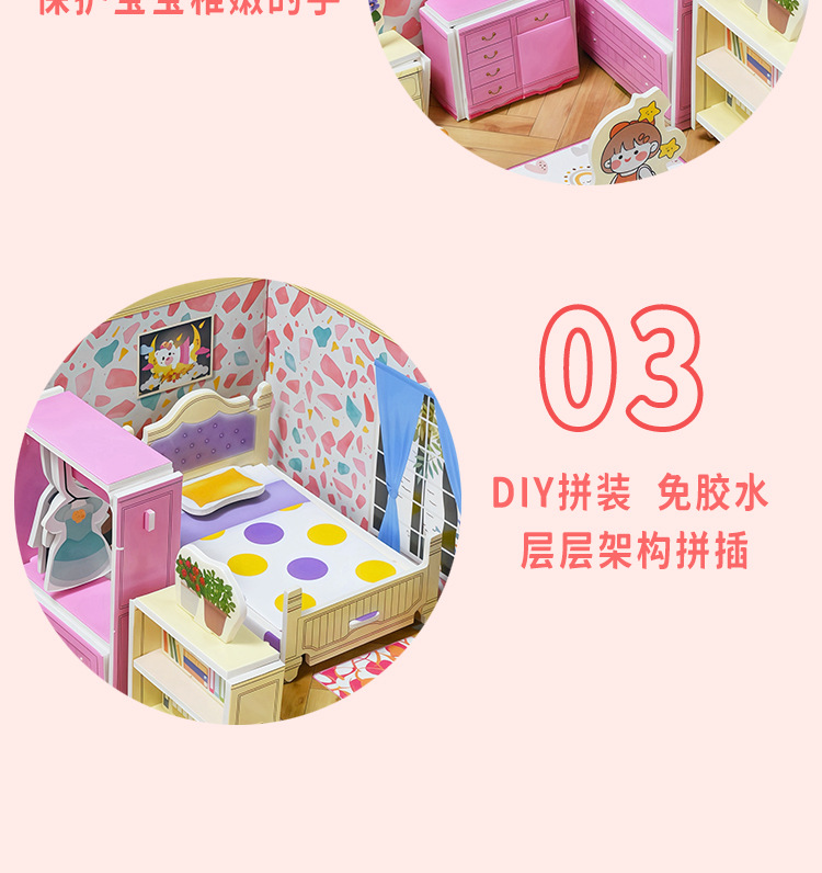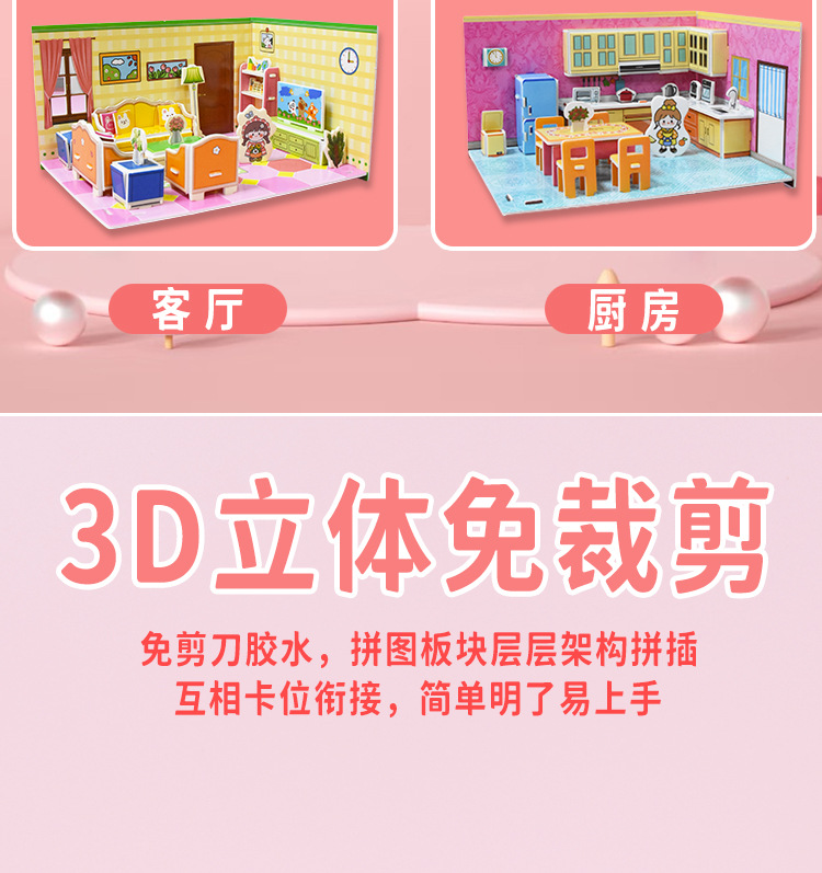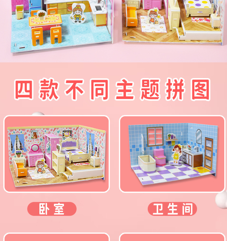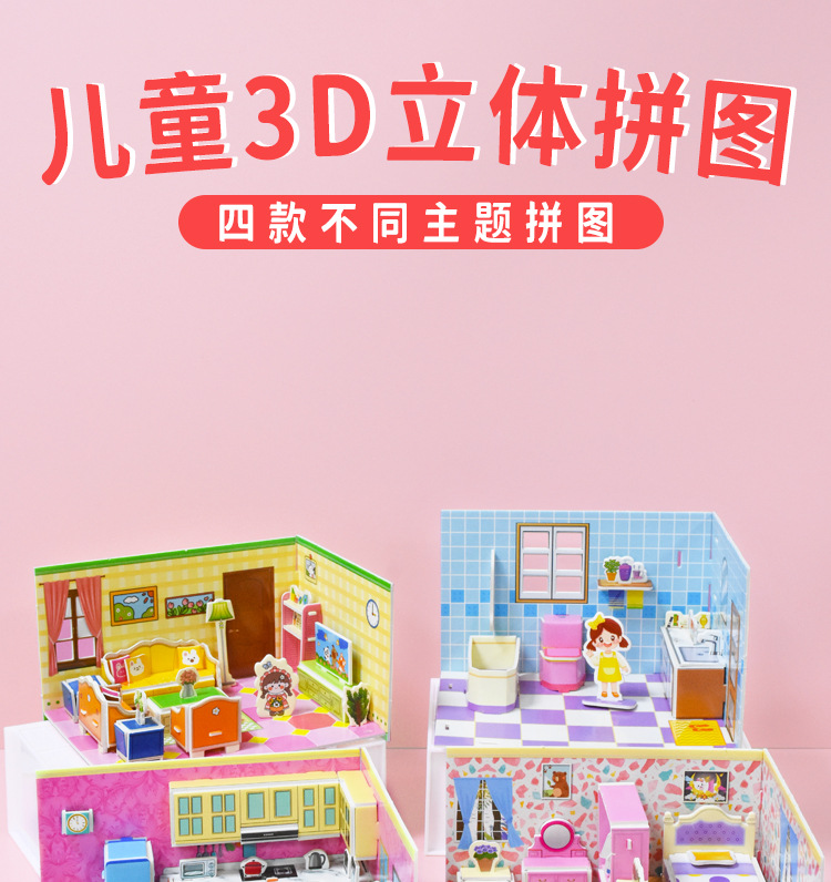 3D 어린이 입체 퍼즐 실내 방 장난감 만화 크리 에이 티브 캐빈 손으로 조립 어린이 교육 선물스토어 가기