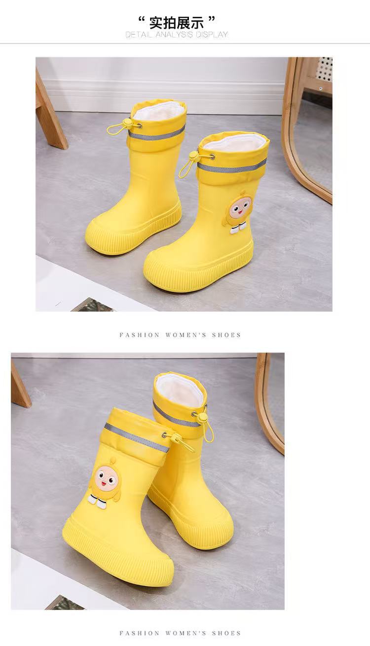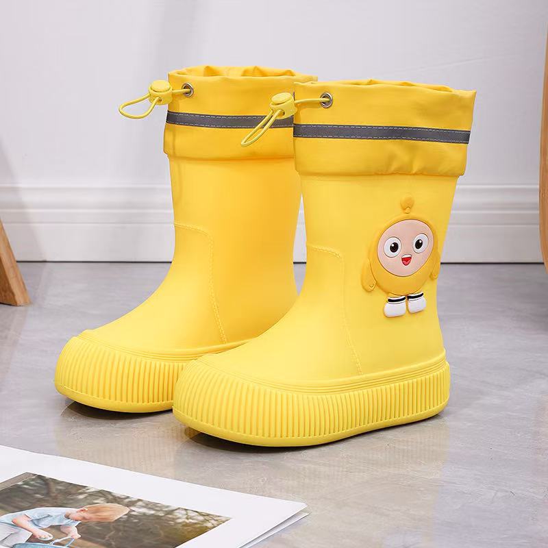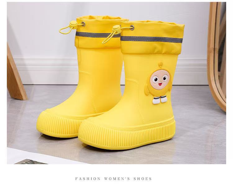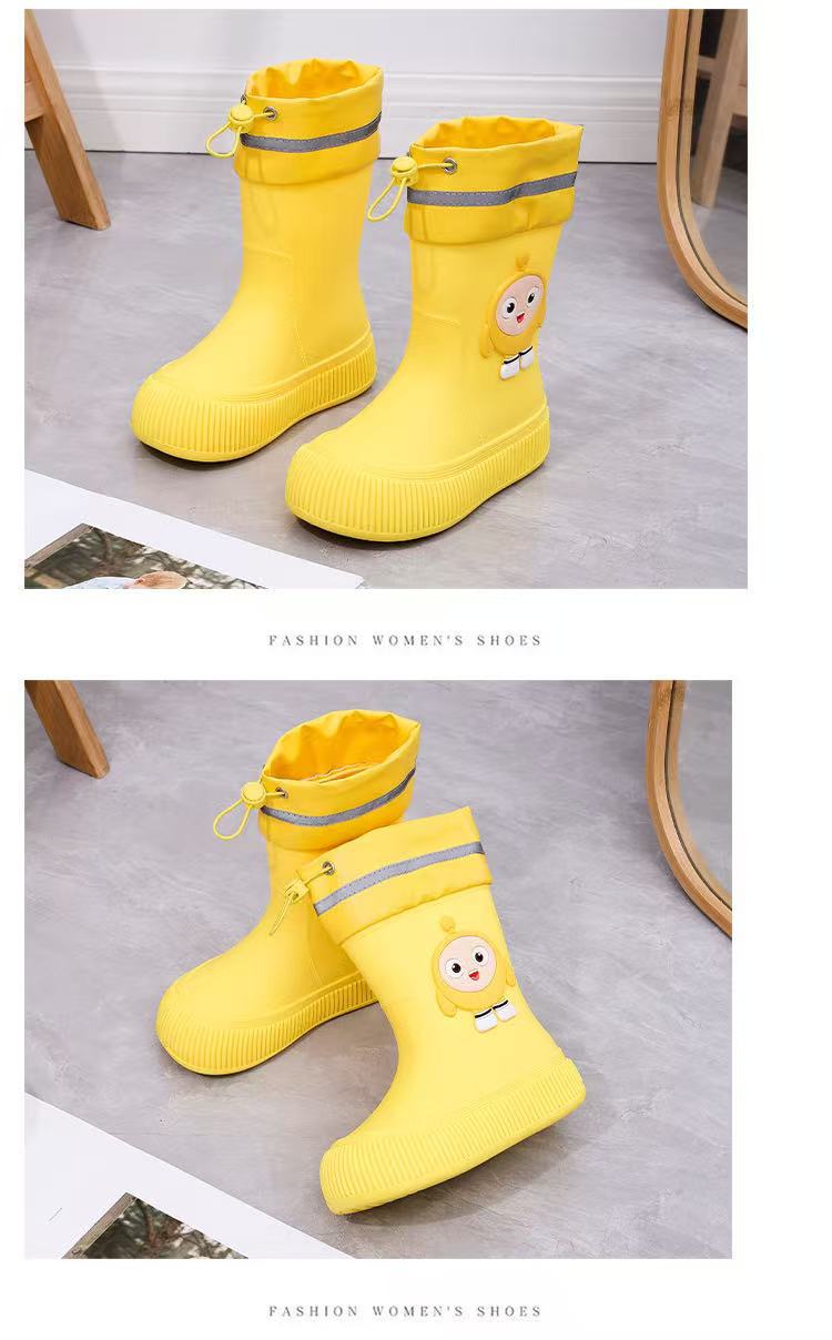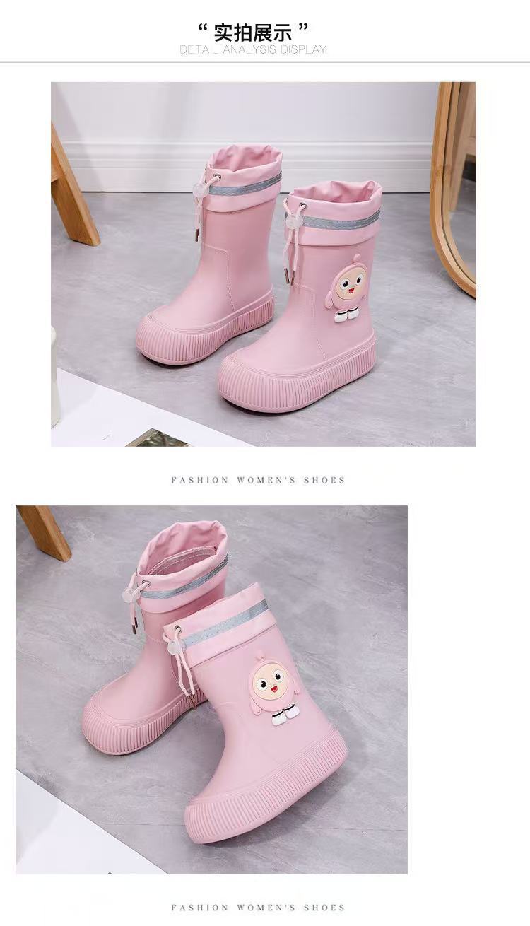 Danzi 만화 어린이 장화 소년과 소녀는 중간 튜브 장화 유행 졸라 매는 끈 고무 신발 야외 미끄럼 방지 물 신발을 착용합니다스토어 가기