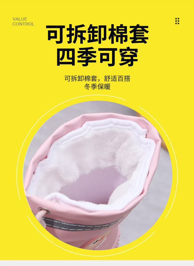 Danzi 만화 어린이 장화 소년과 소녀는 중간 튜브 장화 유행 졸라 매는 끈 고무 신발 야외 미끄럼 방지 물 신발을 착용합니다