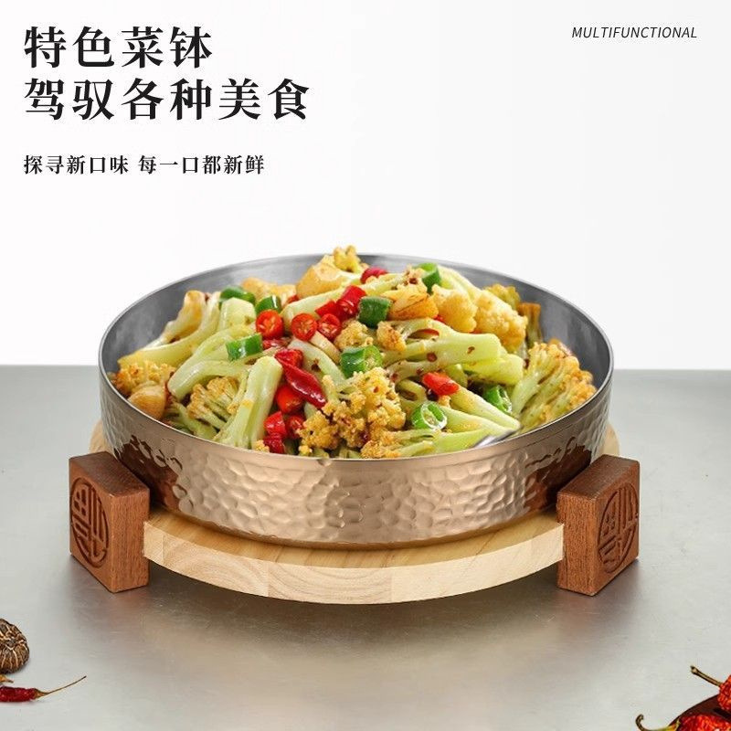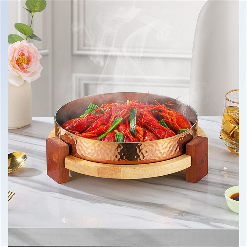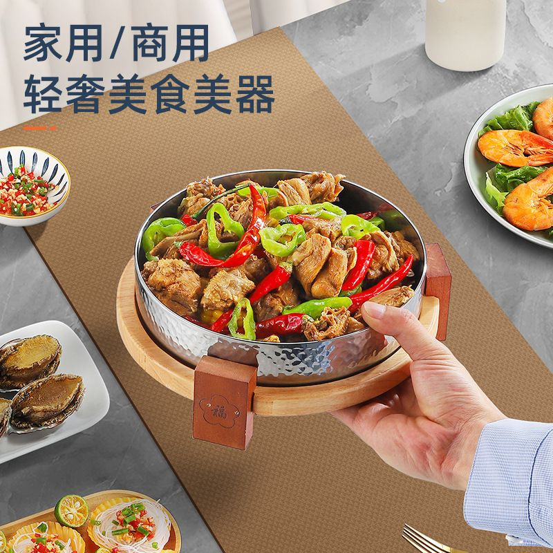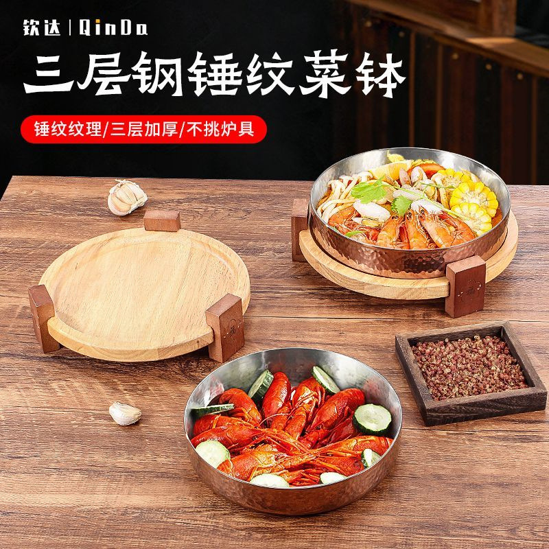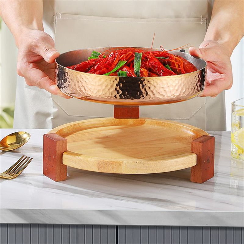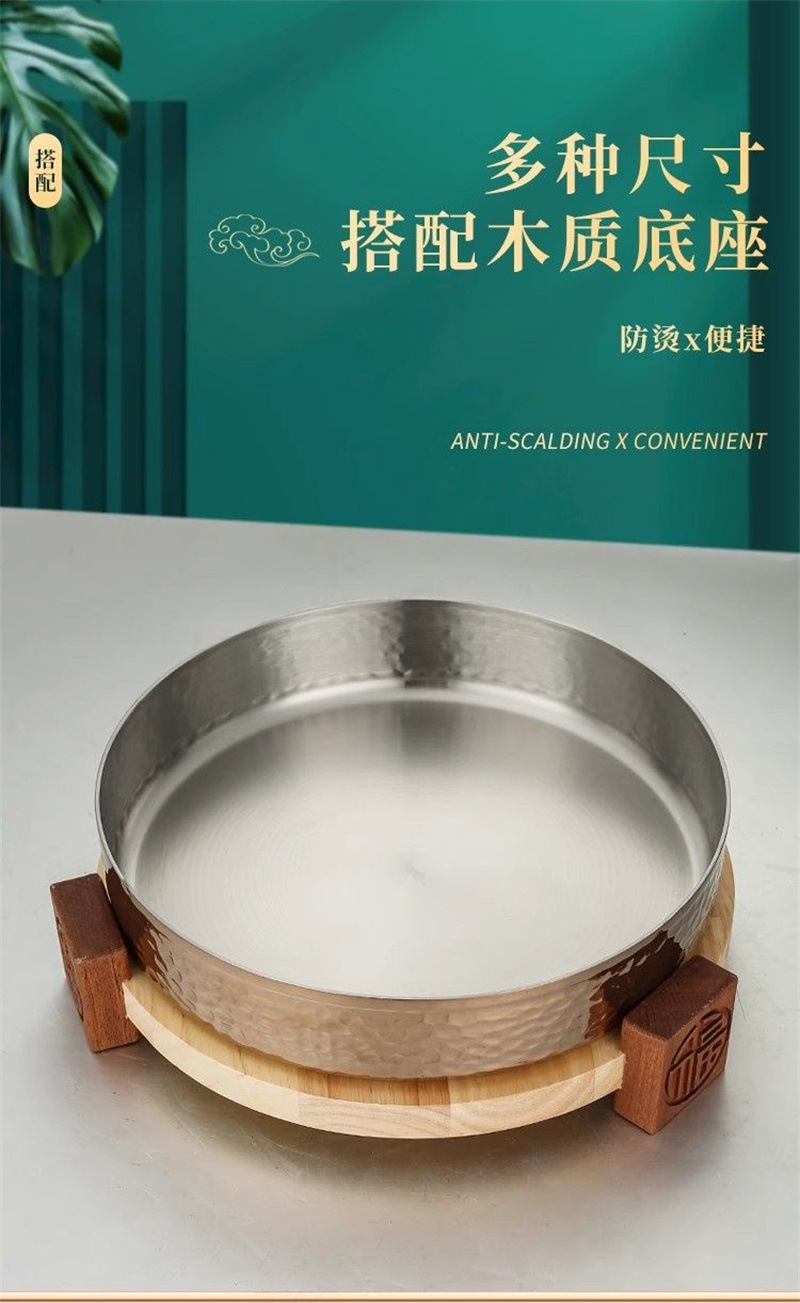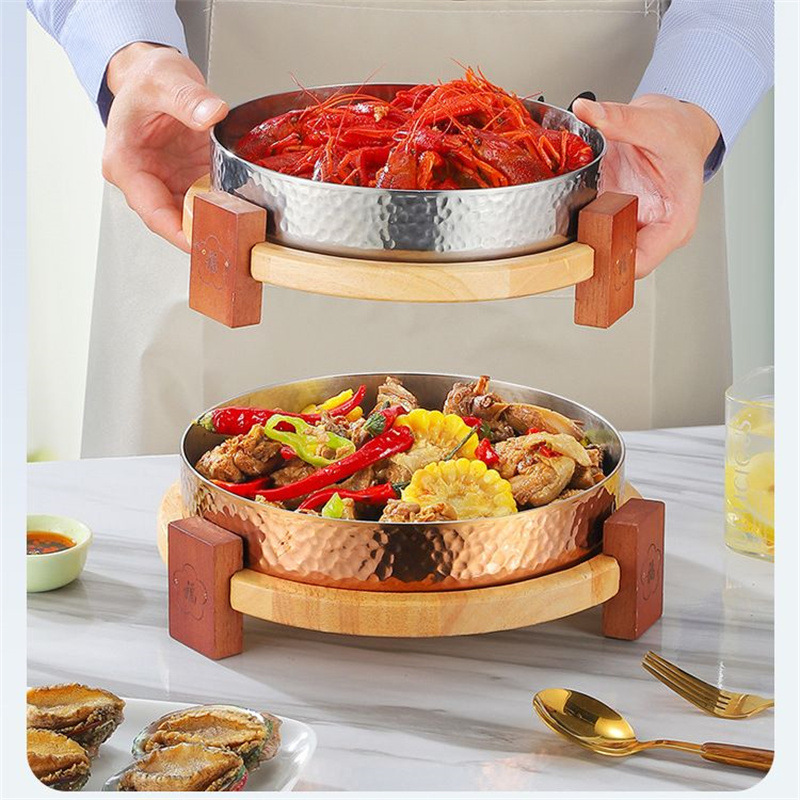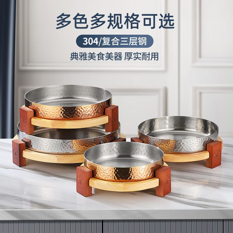 스테인레스 스틸 크리 에이 티브 핫 팟 숍 머니 멜레 루카 벨리 디스크 나무 좌석 접시 쇠고기 잔디 배꼽 요리 특별 한 라운드 볼