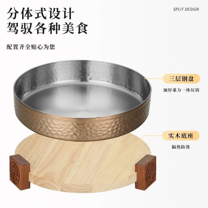 스테인레스 스틸 크리 에이 티브 핫 팟 숍 머니 멜레 루카 벨리 디스크 나무 좌석 접시 쇠고기 잔디 배꼽 요리 특별 한 라운드 볼스토어 가기