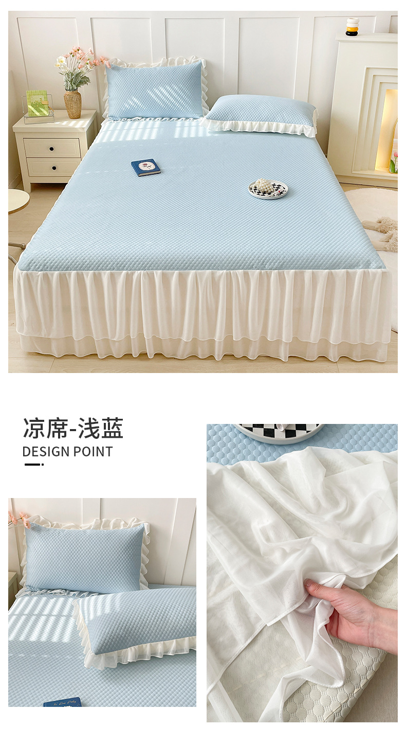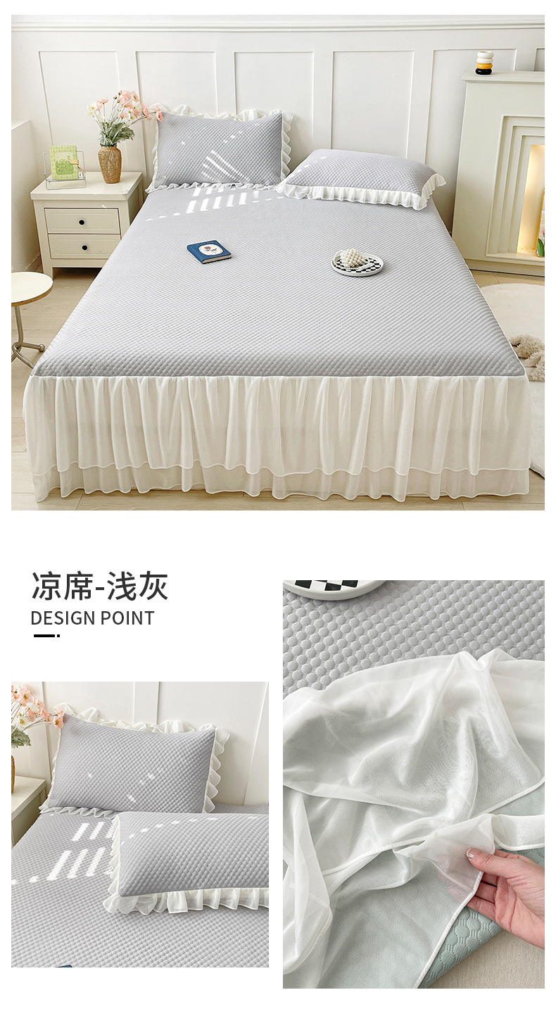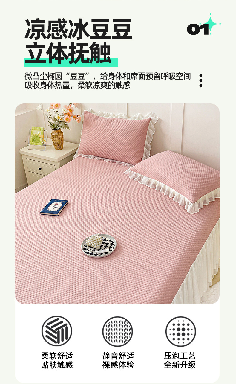 새로운 여름 시원한 얼음 콩 침대 스커트 3 피스 세트 세탁 가능 접이식 에어컨 부드러운 매트 침대 시트 도매스토어 가기