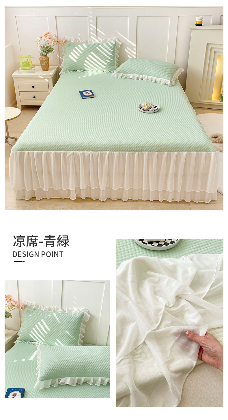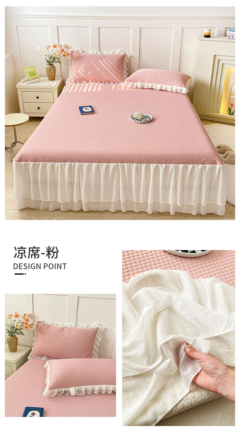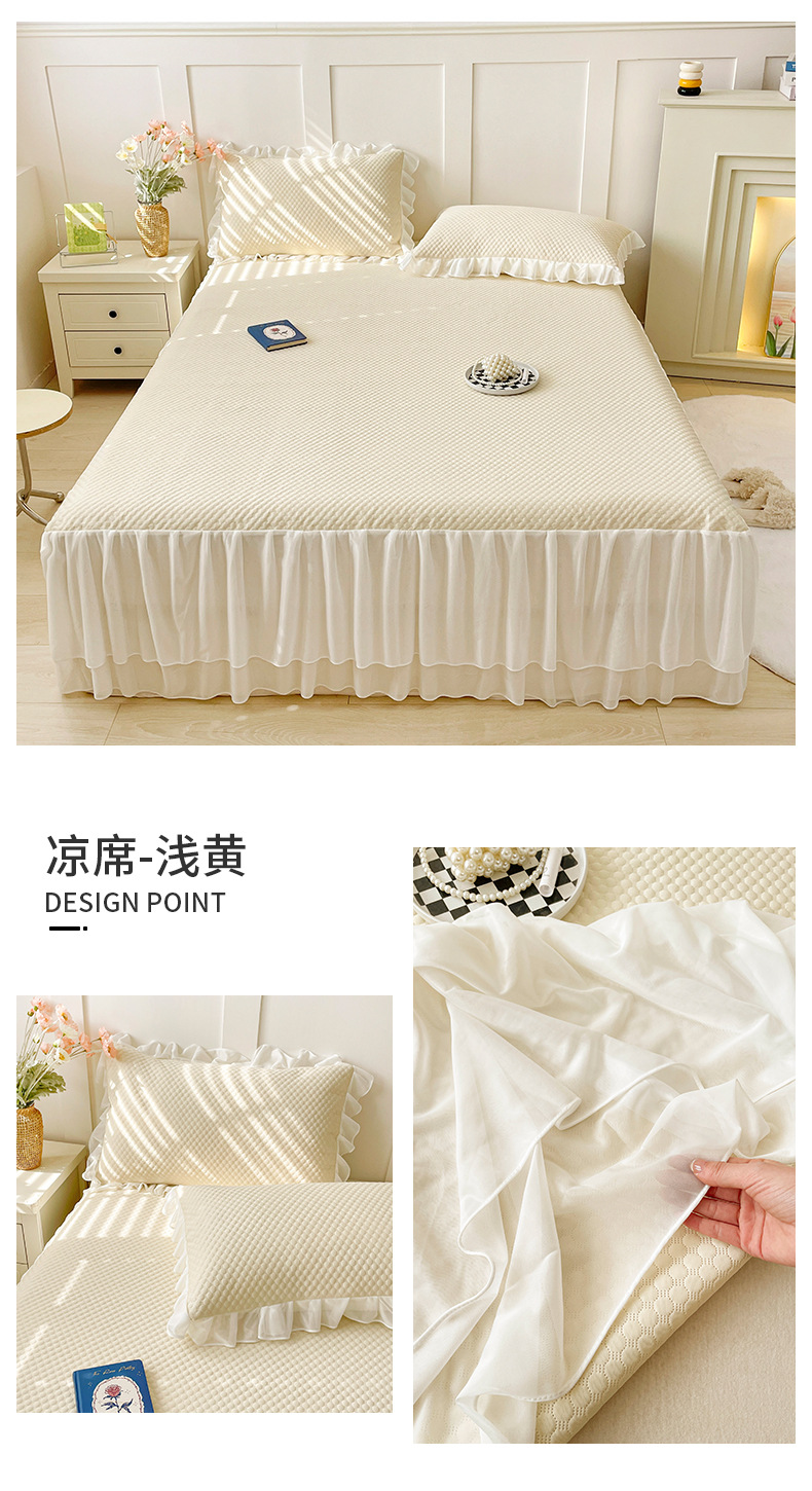 새로운 여름 시원한 얼음 콩 침대 스커트 3 피스 세트 세탁 가능 접이식 에어컨 부드러운 매트 침대 시트 도매스토어 가기