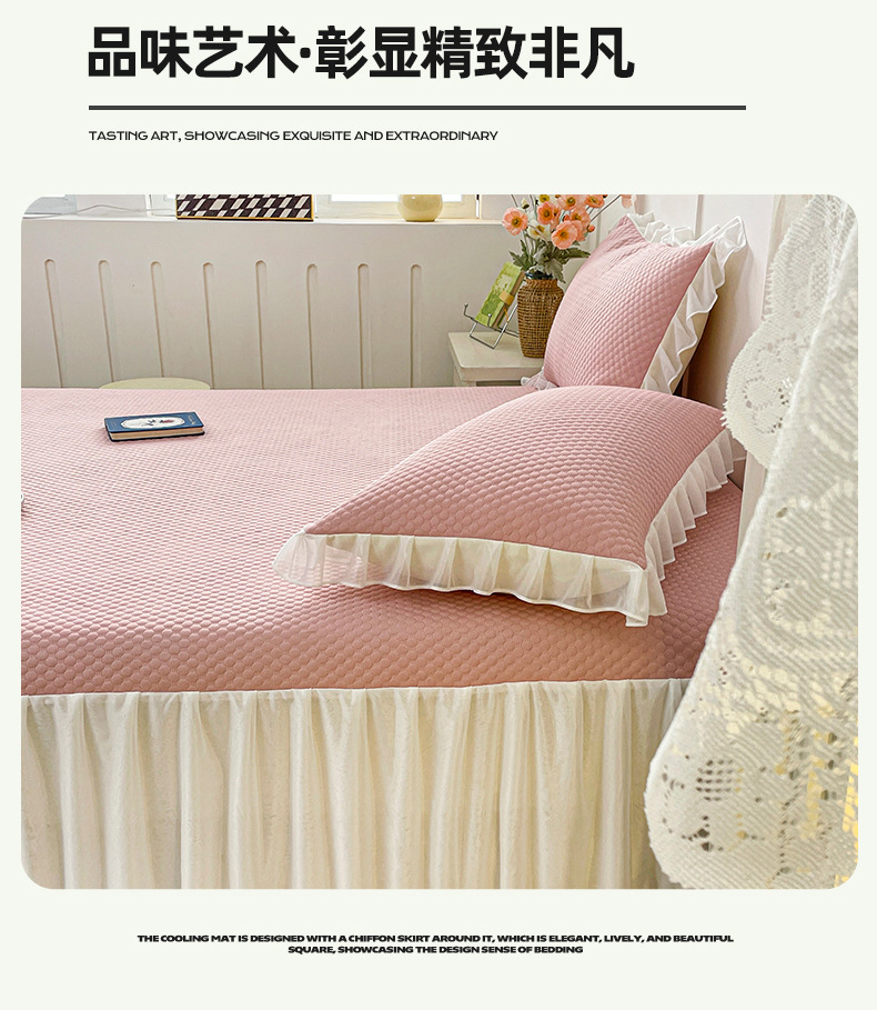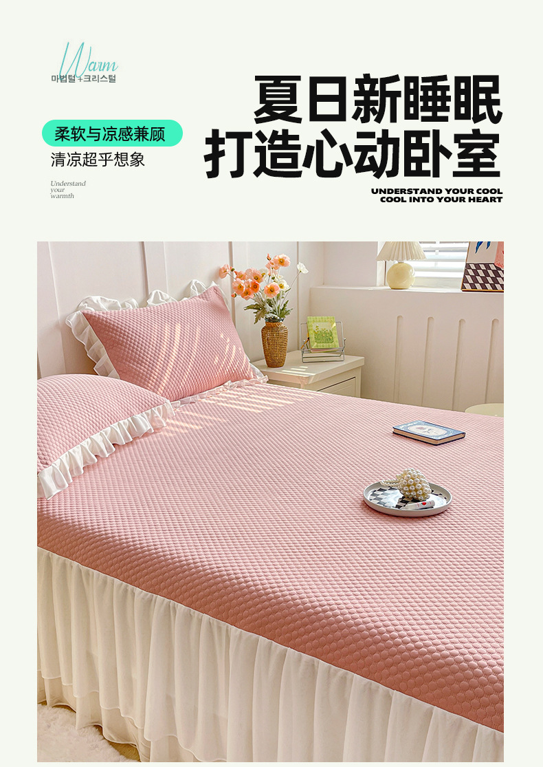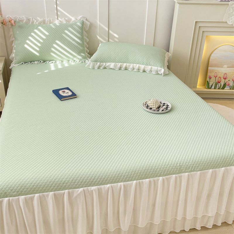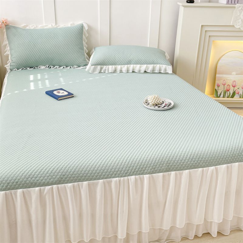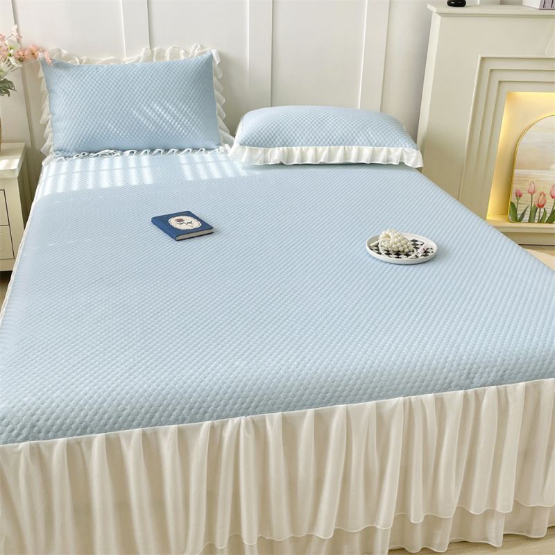 새로운 여름 시원한 얼음 콩 침대 스커트 3 피스 세트 세탁 가능 접이식 에어컨 부드러운 매트 침대 시트 도매