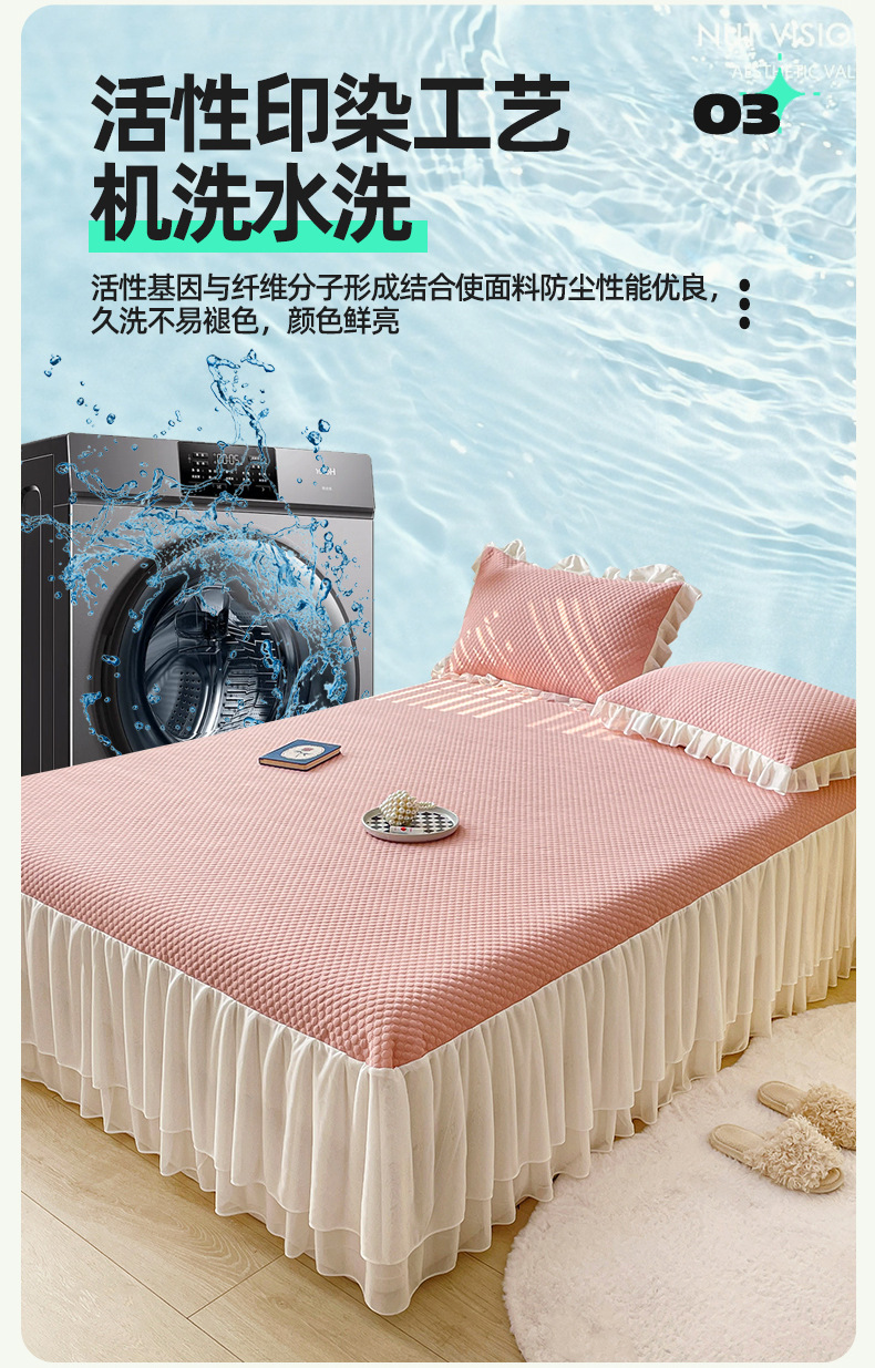 • 150*200cm 3피스 베드스커트 세트 [매트 + 베갯잇 2개]